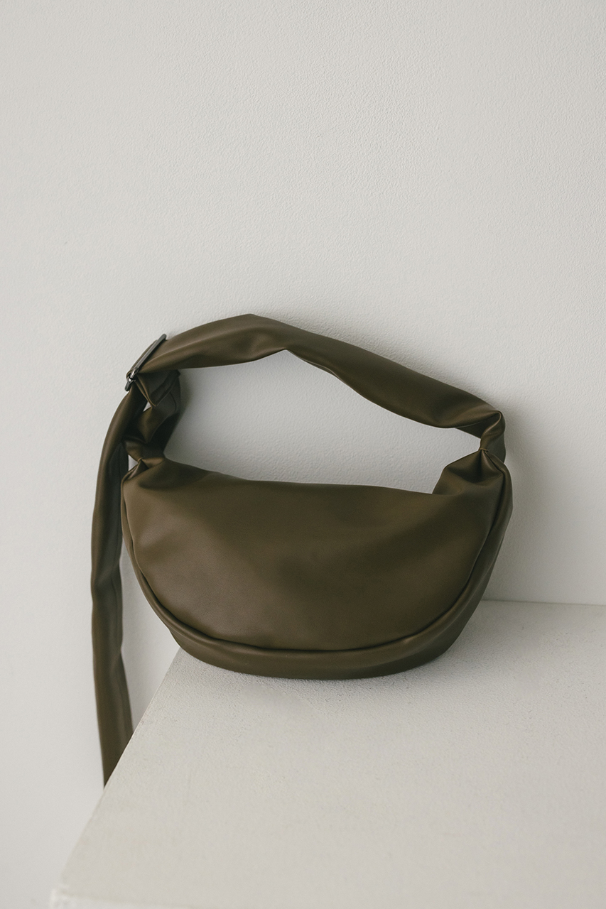 しなやかな上品艶のフェイクレザーに薄い板綿を入れたスタミキ大人気のマンドリンバッグ。ハンドル調整可能でショルダーにも斜め掛けにもできます。