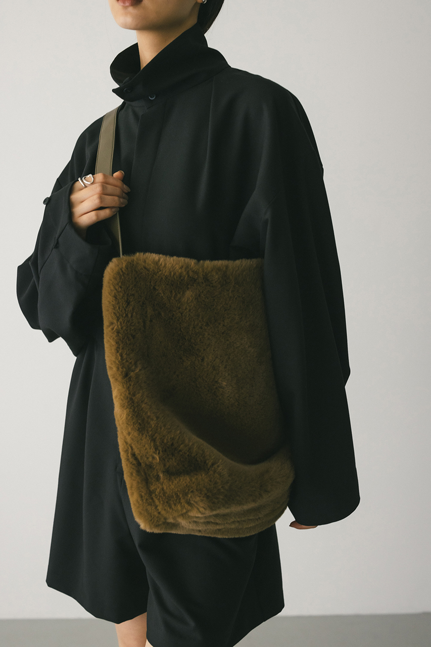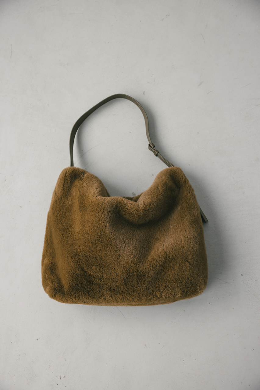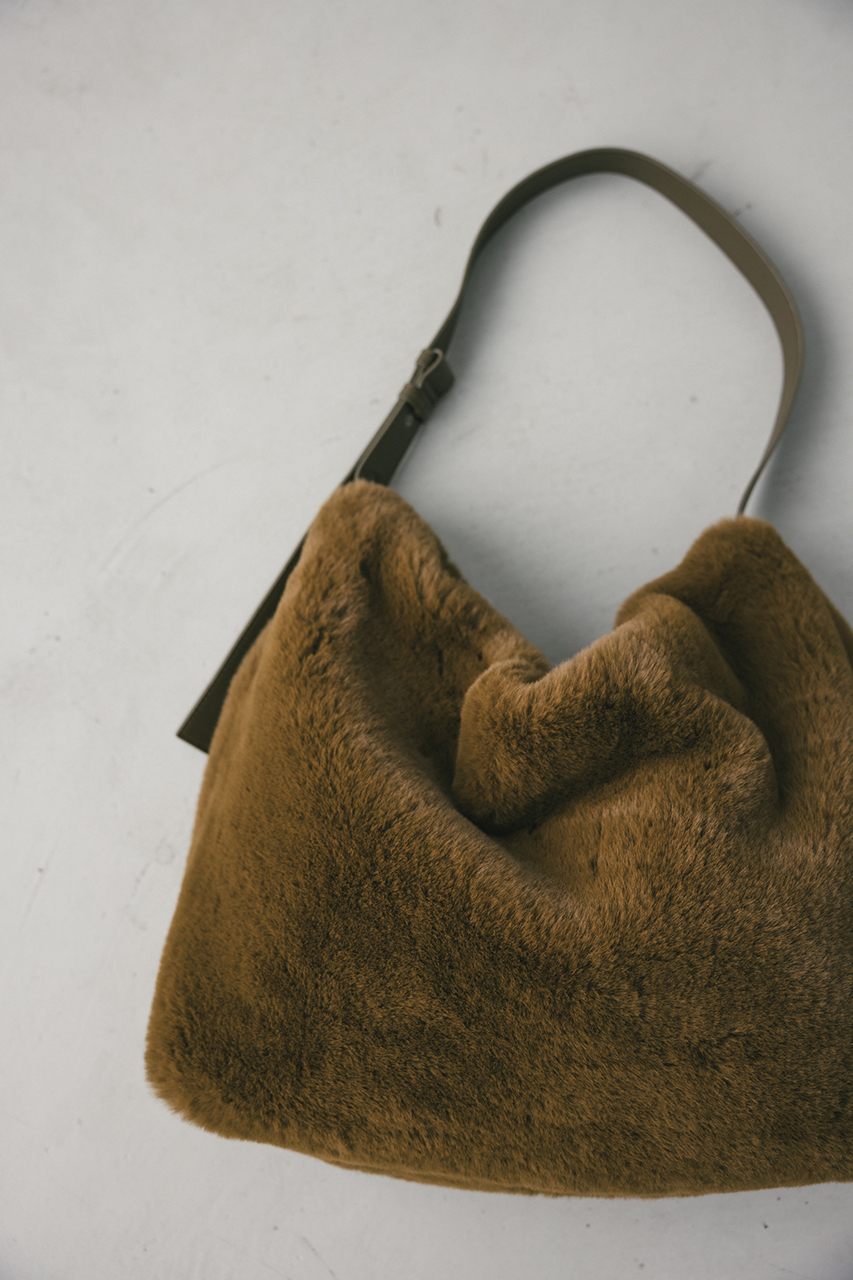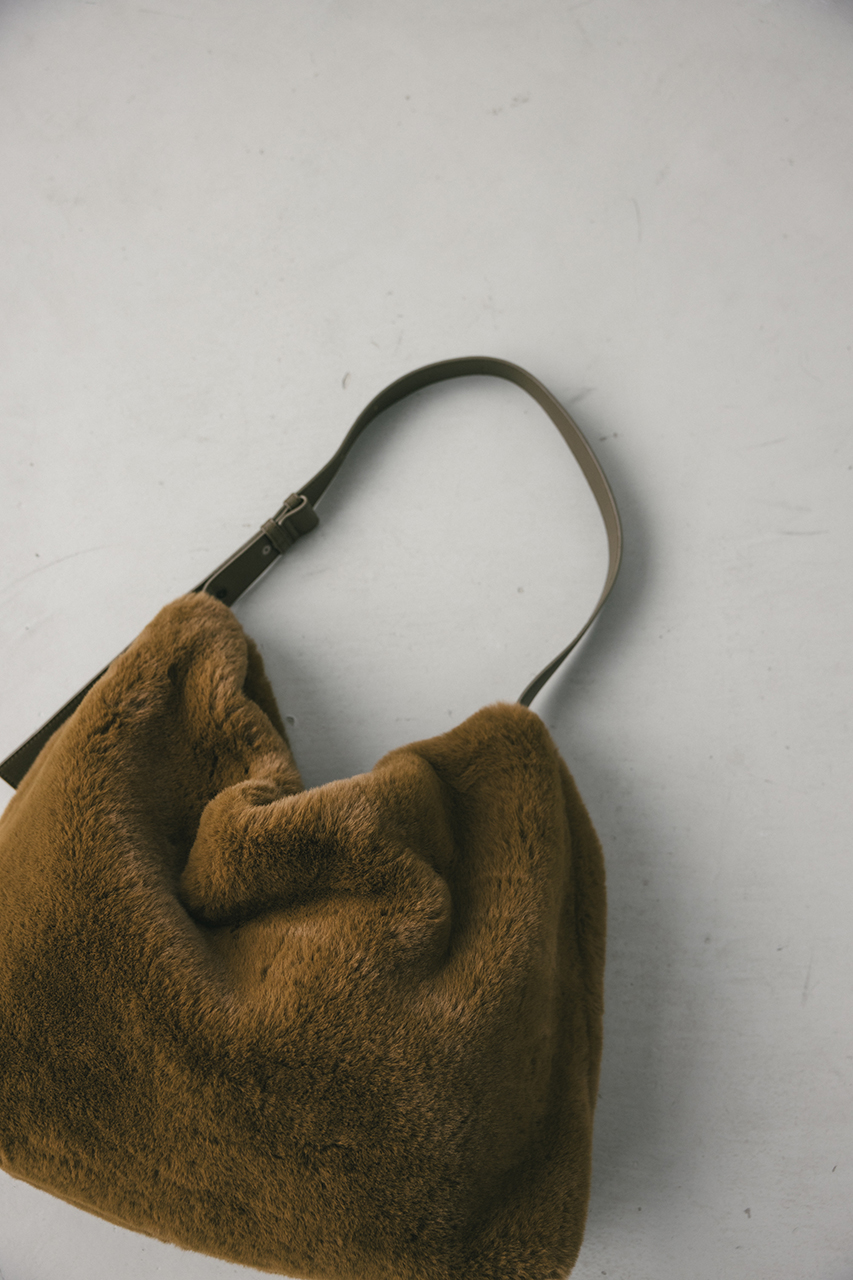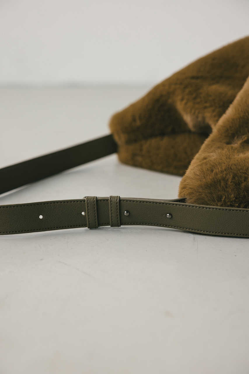大きくて可愛い使いやすいビッグショルダーバッグ。モードなフェイクレザーと上品なファーの2素材展開。ワンハンドルで持ちやすく、こなれ感のあるスタイリングを作ります。※ベルト穴の切れ込みに関しましてはお届け商品は切れ込みはありません。