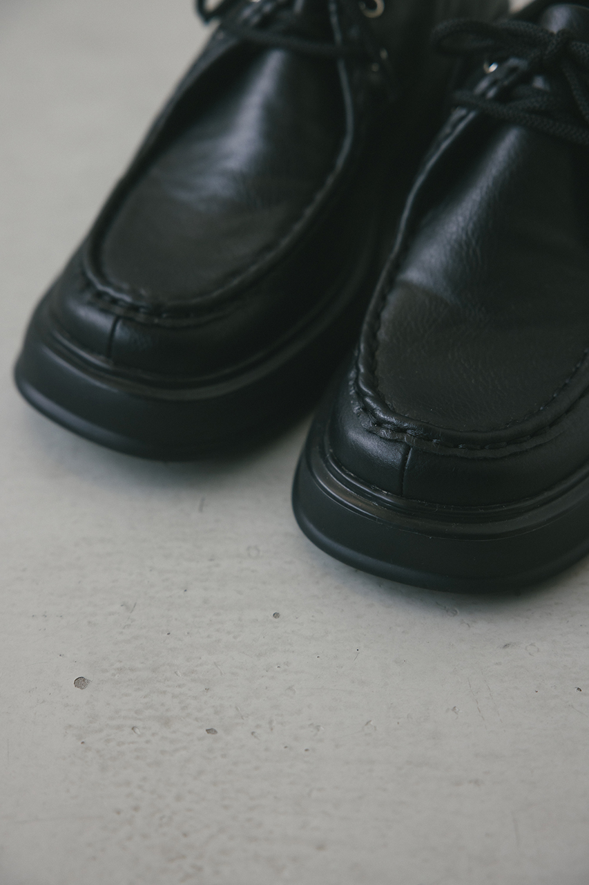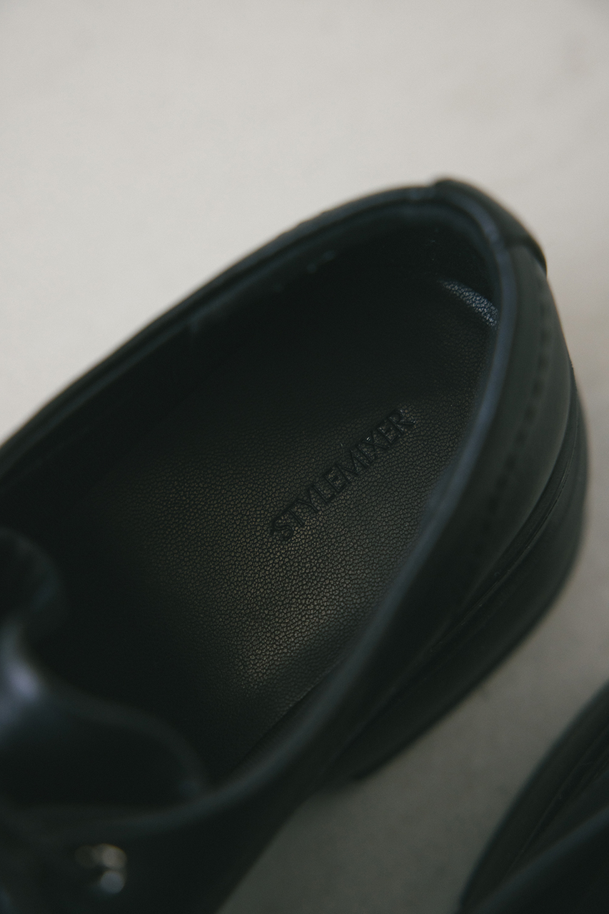 ボリュームのあるフレアソールと編み上げデザインが存在感のあるローファー。ソールは軽くて歩きやすく、安定感のある一足です。