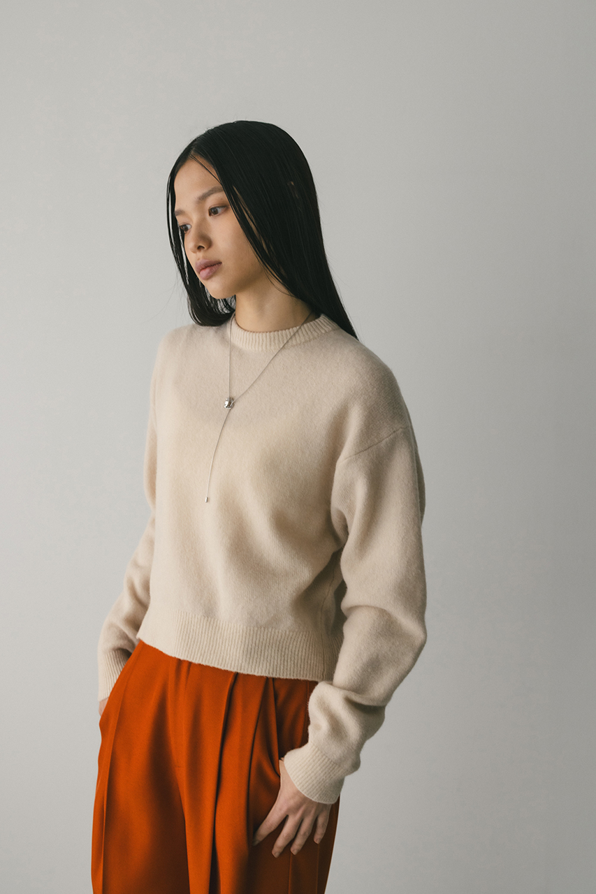 暖かさと着心地の良さをかなえたウールニットプルオーバー。抜け感のあるルーズなシルエットでボトムスを選ばずに着用いただきやす一枚です。同素材のワンピースやカーディガンとのスタイリングもおすすめです。透け感なし、ストレッチあり。
