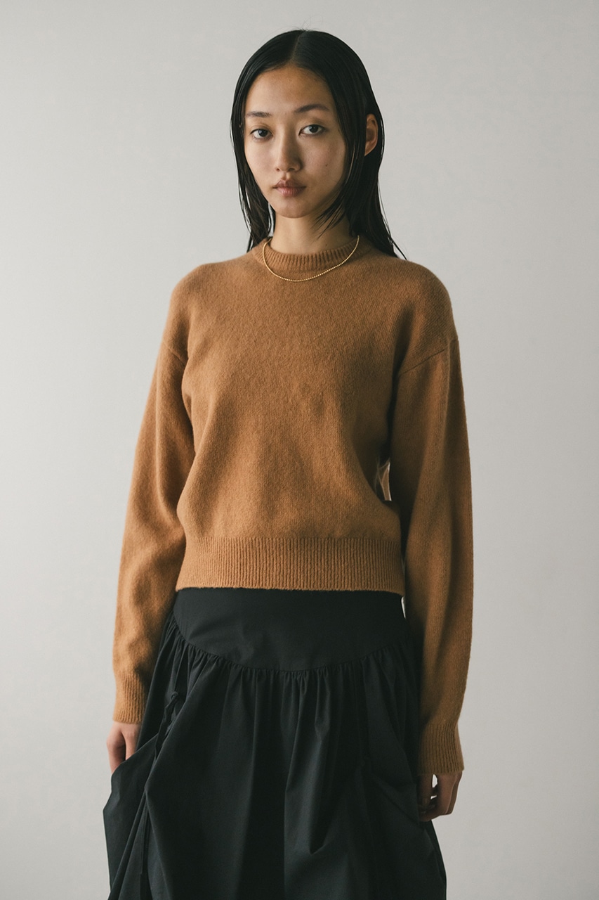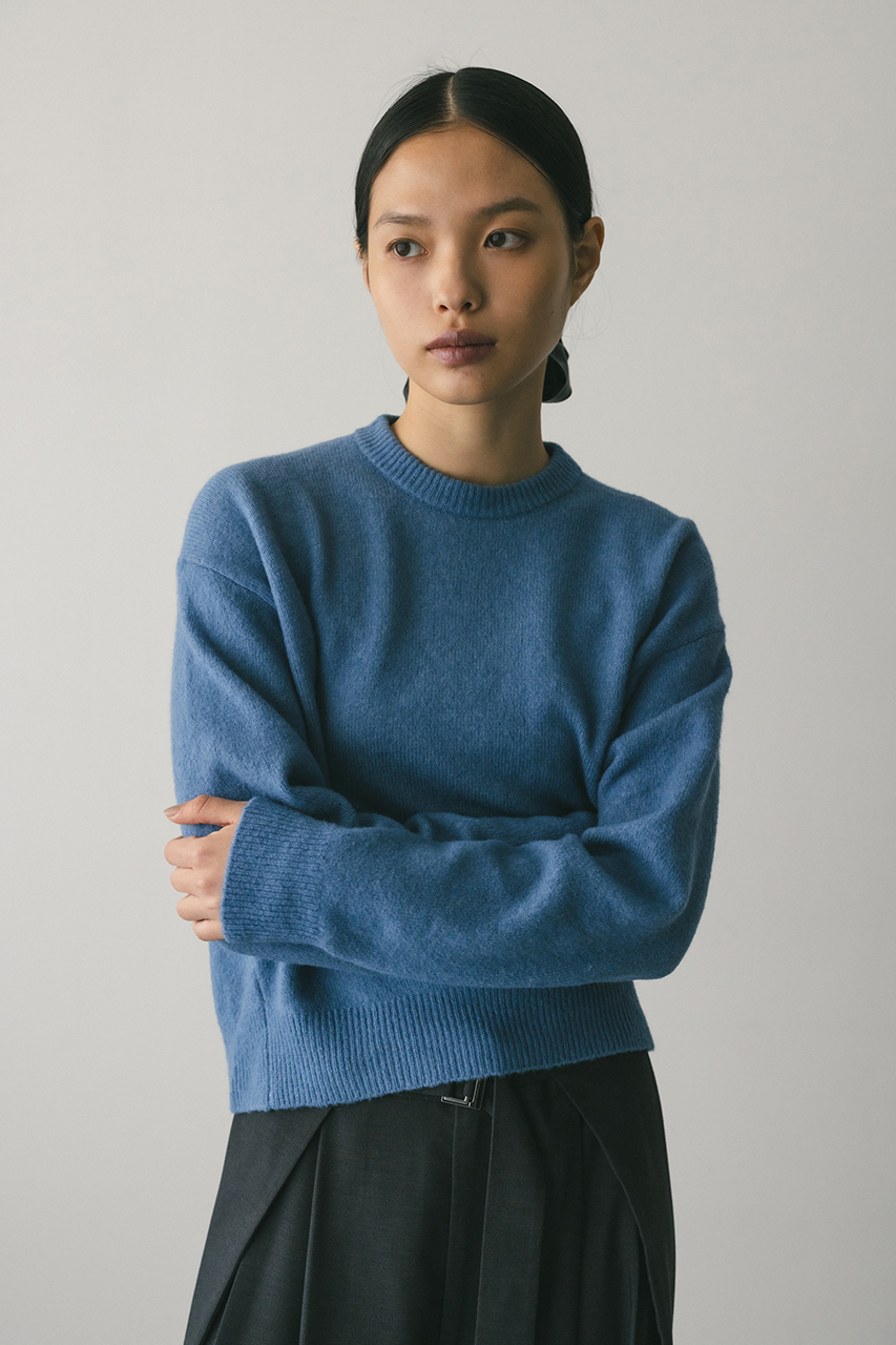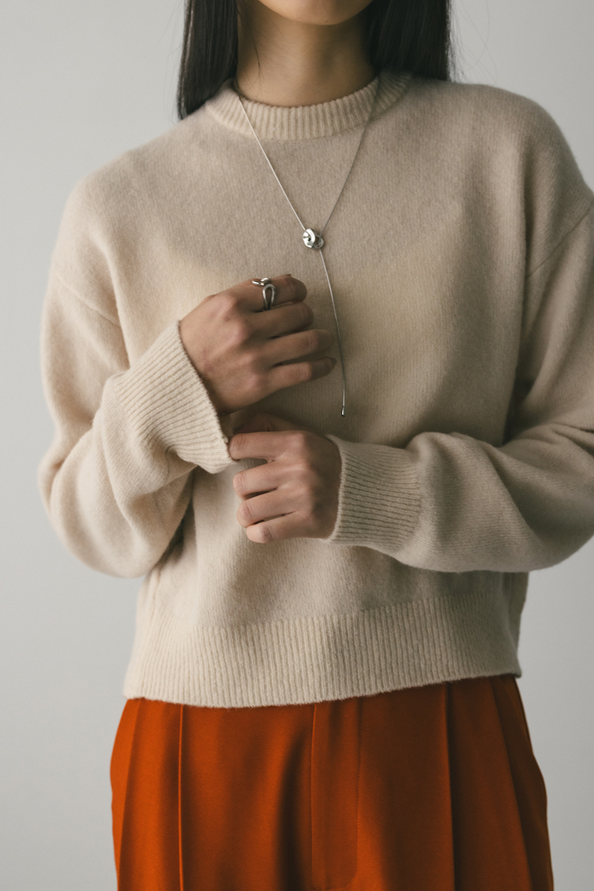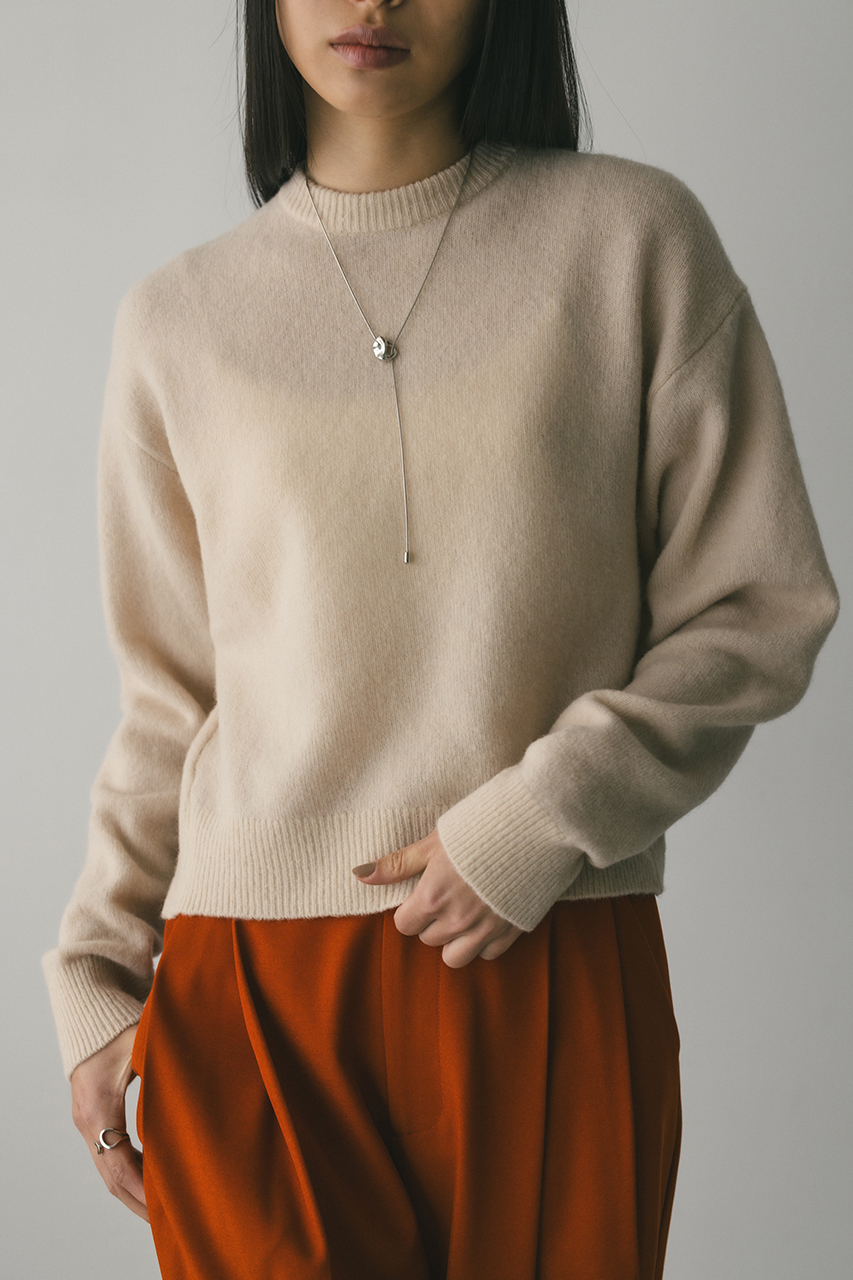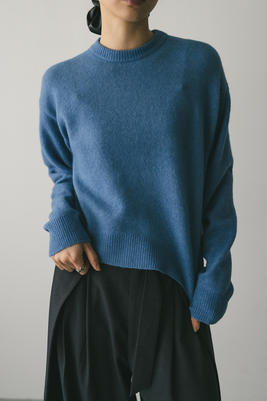暖かさと着心地の良さをかなえたウールニットプルオーバー。抜け感のあるルーズなシルエットでボトムスを選ばずに着用いただきやす一枚です。同素材のワンピースやカーディガンとのスタイリングもおすすめです。透け感なし、ストレッチあり。