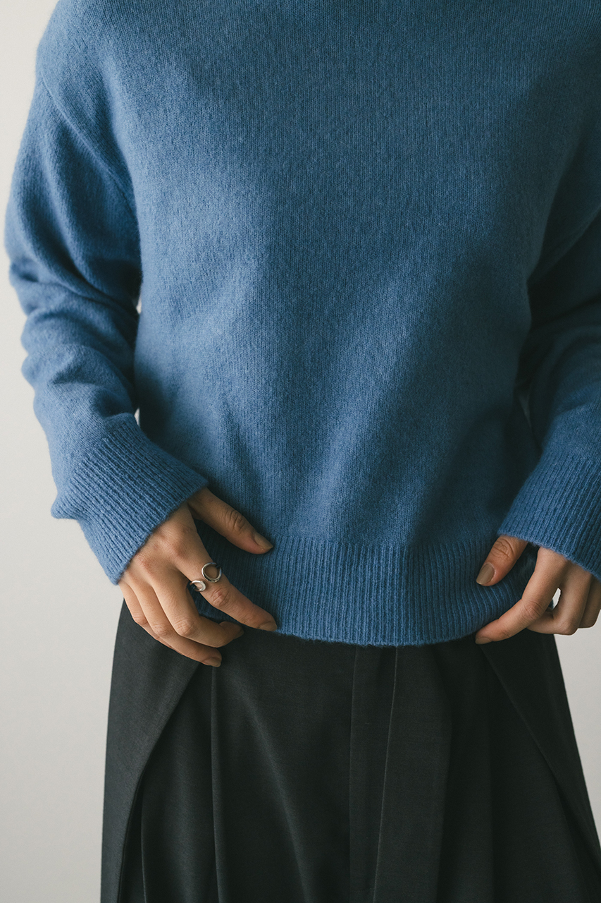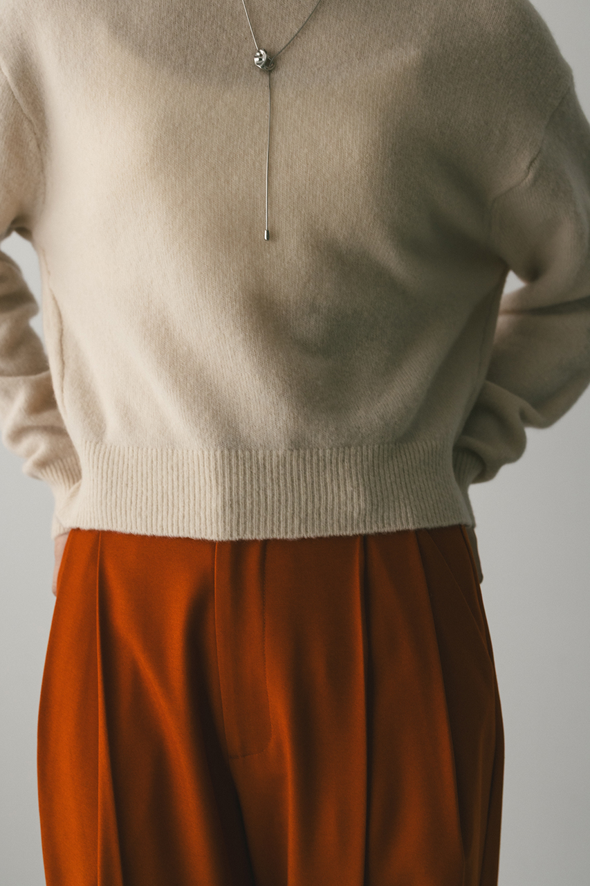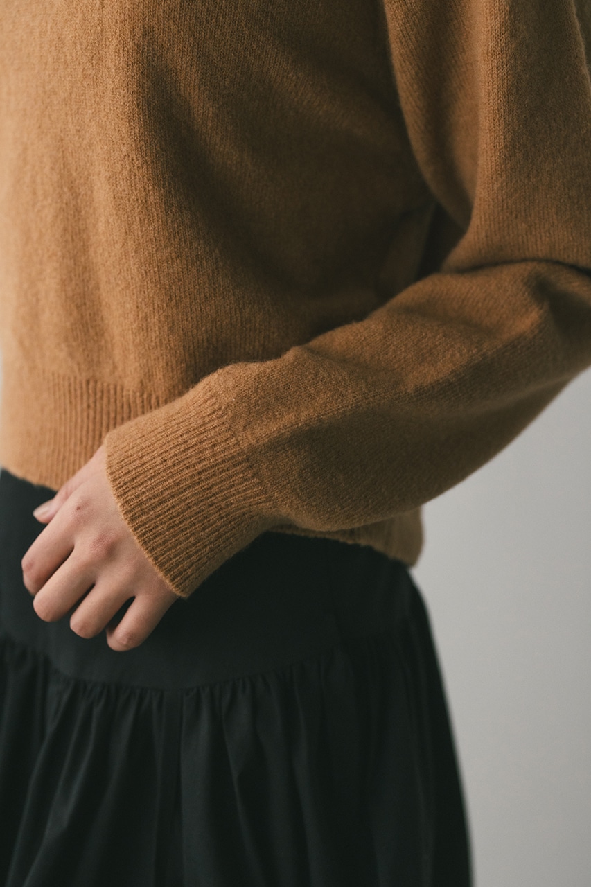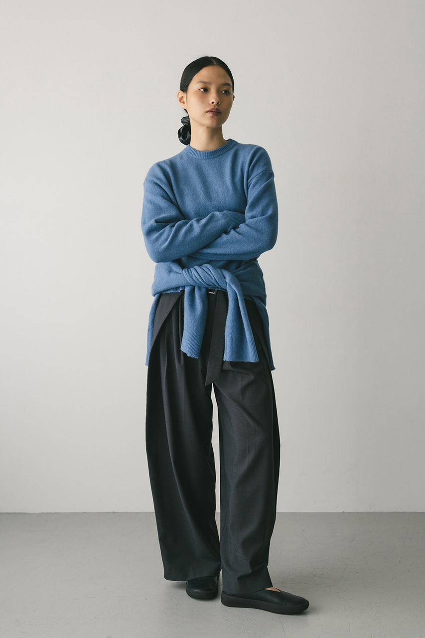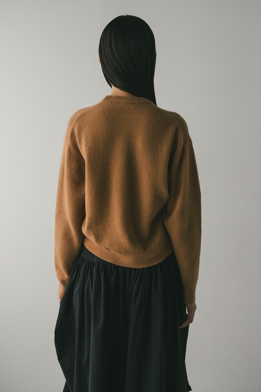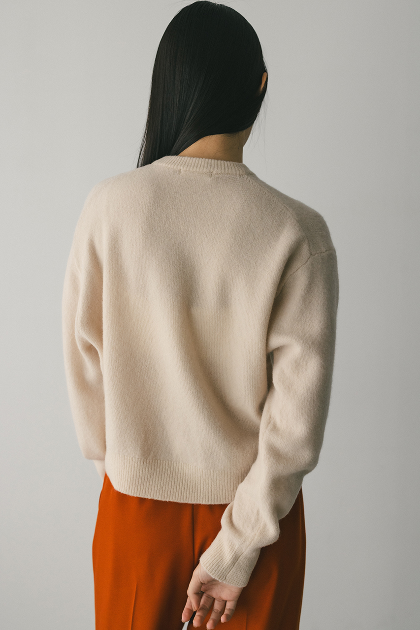 暖かさと着心地の良さをかなえたウールニットプルオーバー。抜け感のあるルーズなシルエットでボトムスを選ばずに着用いただきやす一枚です。同素材のワンピースやカーディガンとのスタイリングもおすすめです。透け感なし、ストレッチあり。