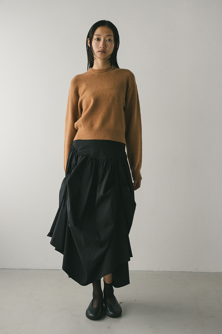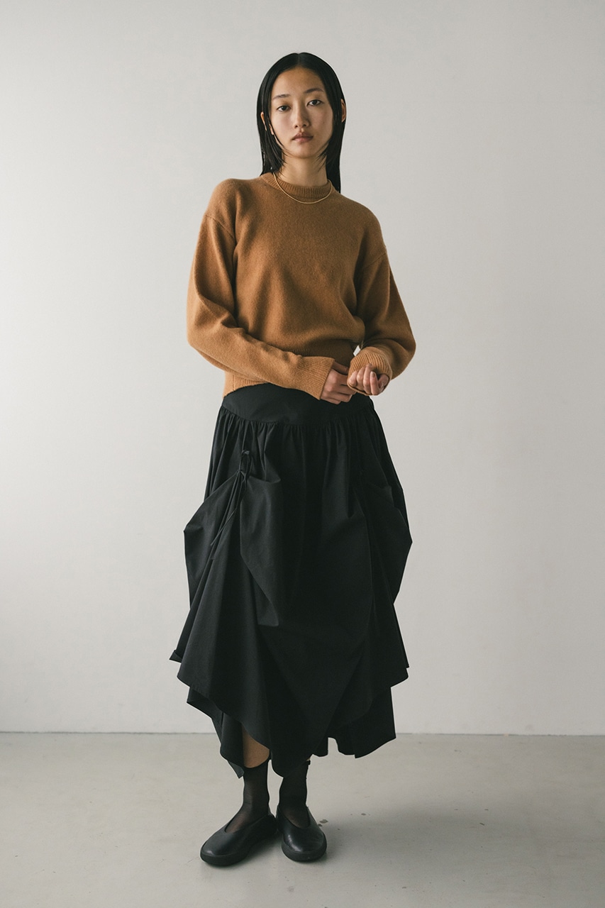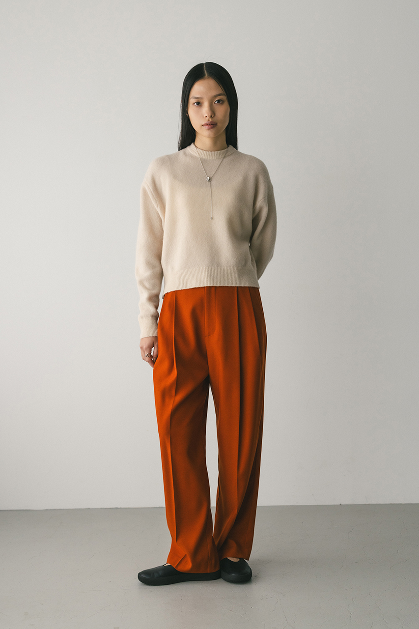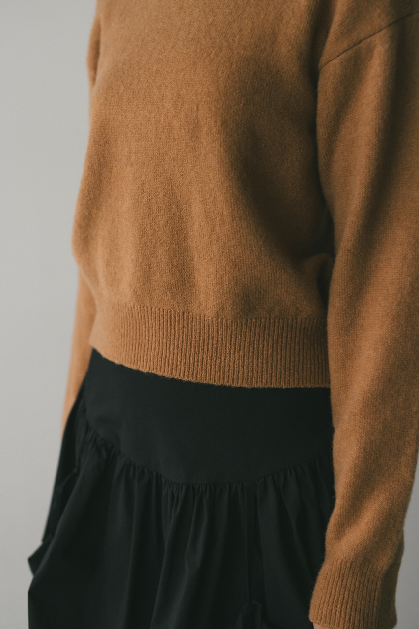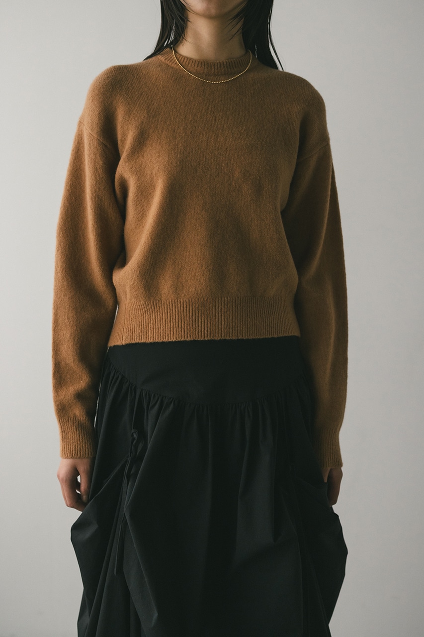 暖かさと着心地の良さをかなえたウールニットプルオーバー。抜け感のあるルーズなシルエットでボトムスを選ばずに着用いただきやす一枚です。同素材のワンピースやカーディガンとのスタイリングもおすすめです。透け感なし、ストレッチあり。