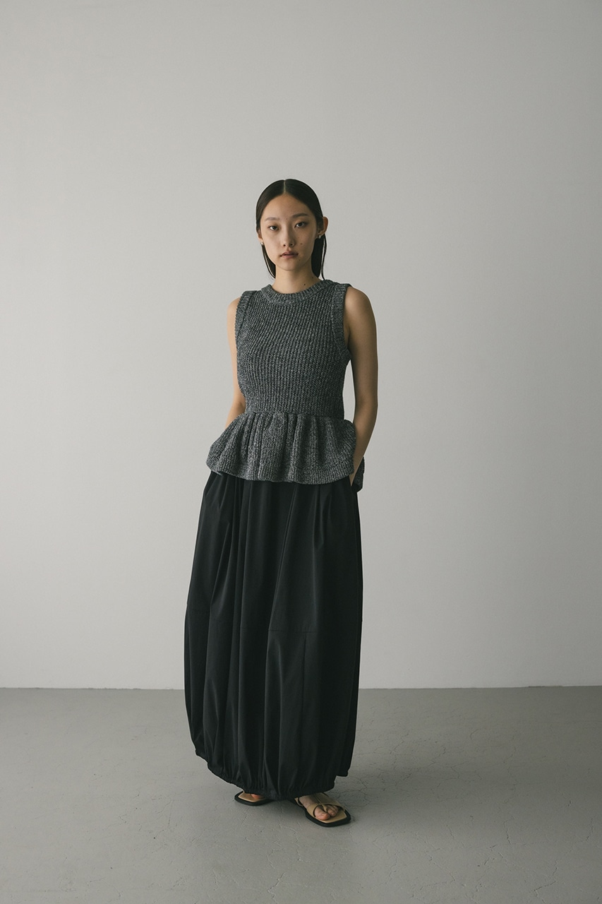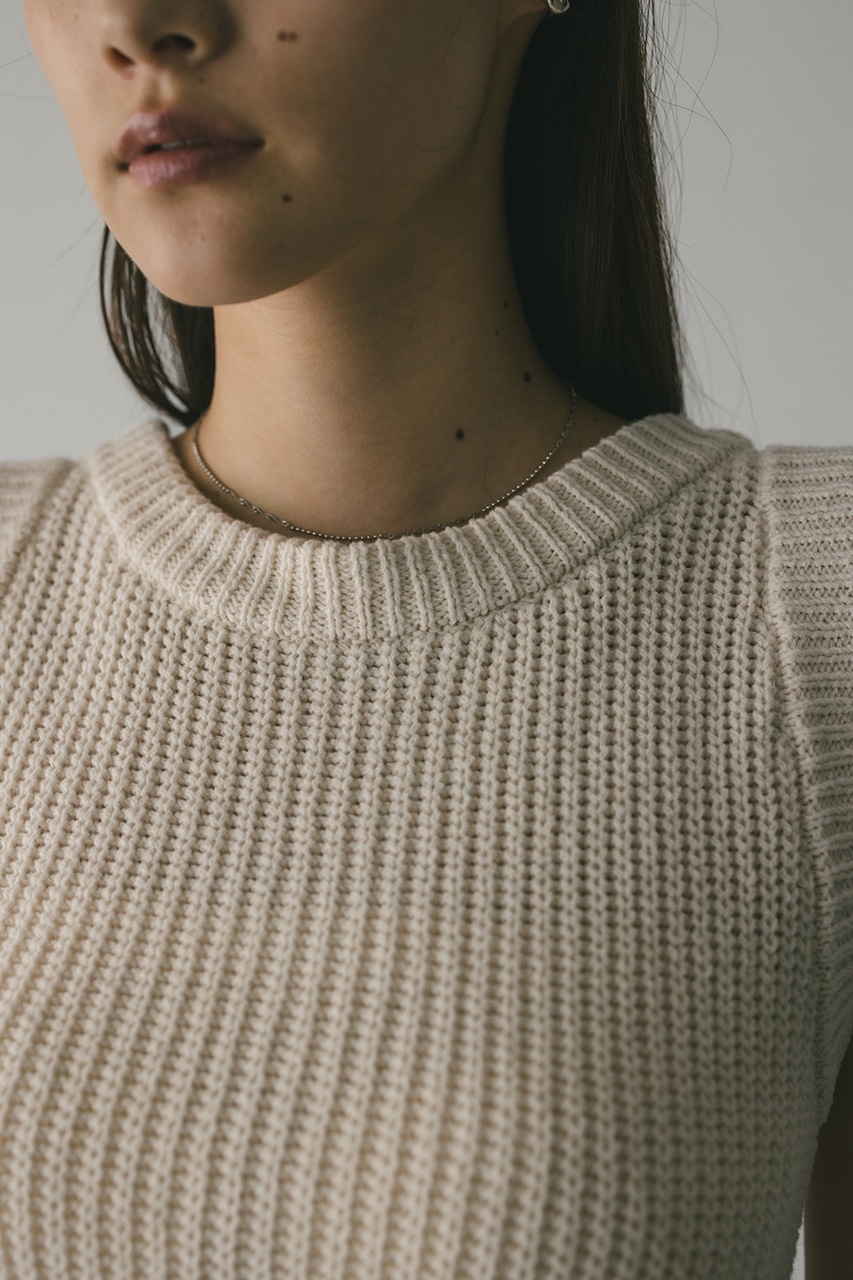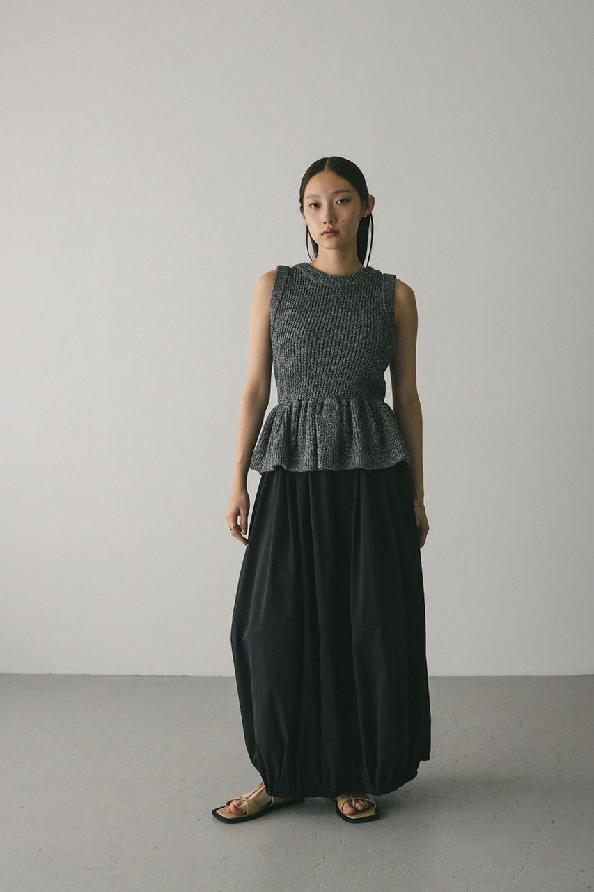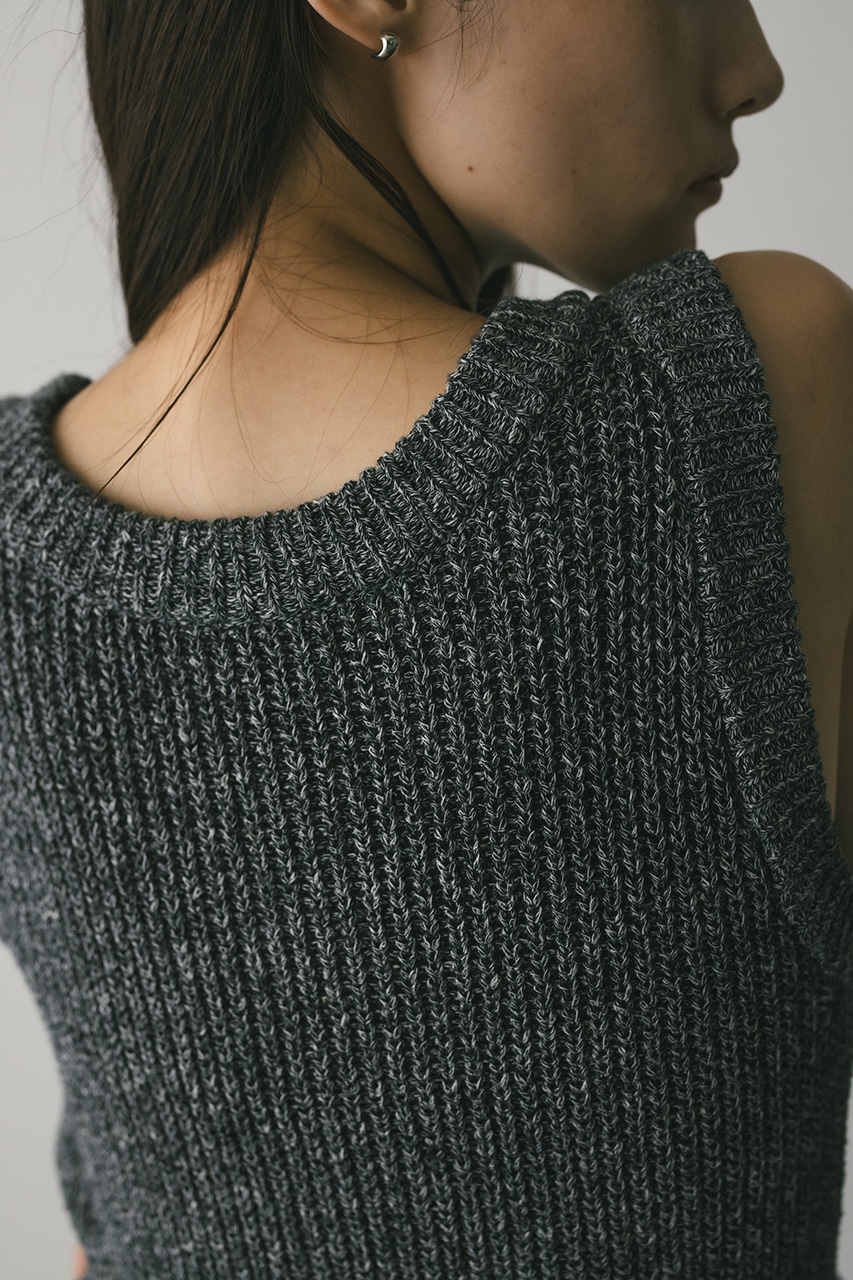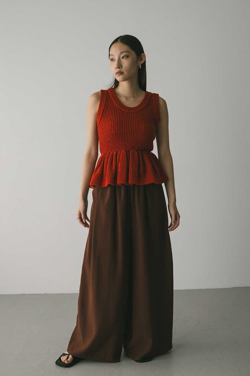 ドライなコットンリネンのミドルゲージで編み立てたペプラムシルエットが映えるニットタンク。すっきりとしたラウンドネックとミドルゲージの編地がスタイリングにこなれ感をプラス。カジュアルにもフェミニンにも着用いただけます。ストレッチあり、透け感なし。
