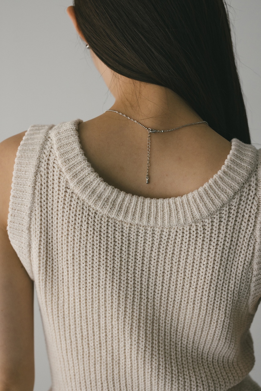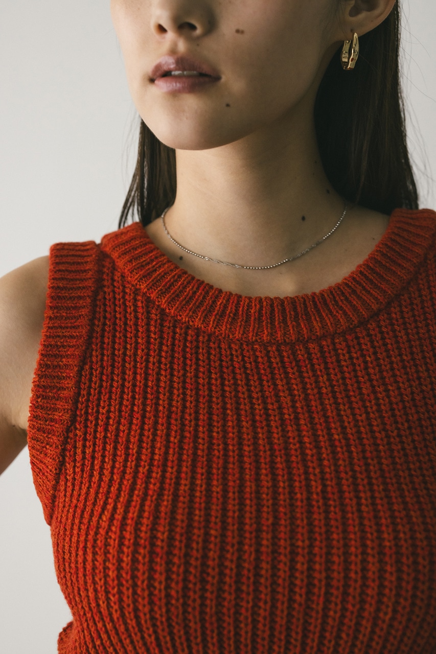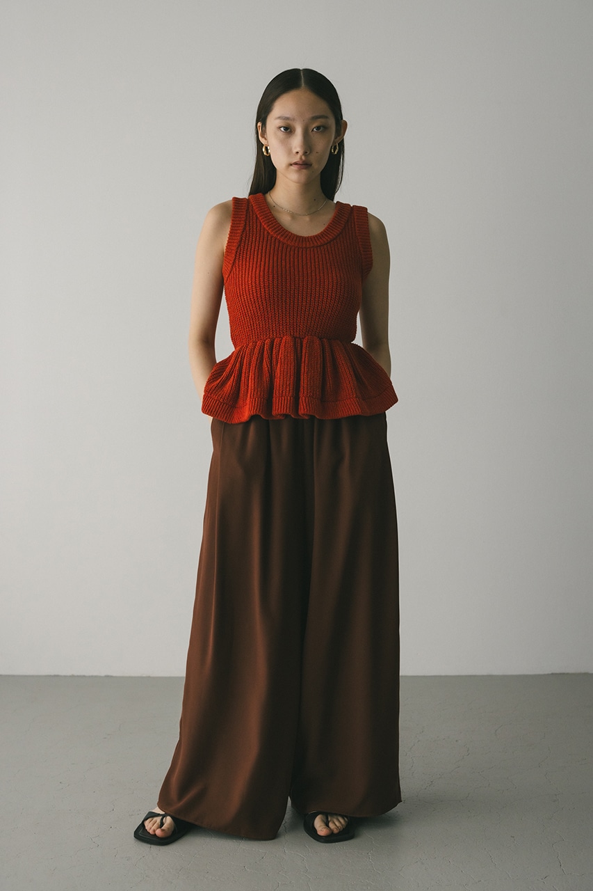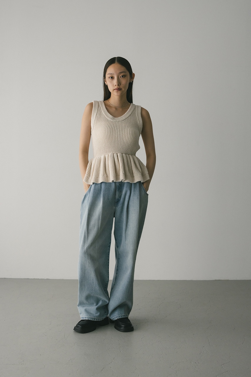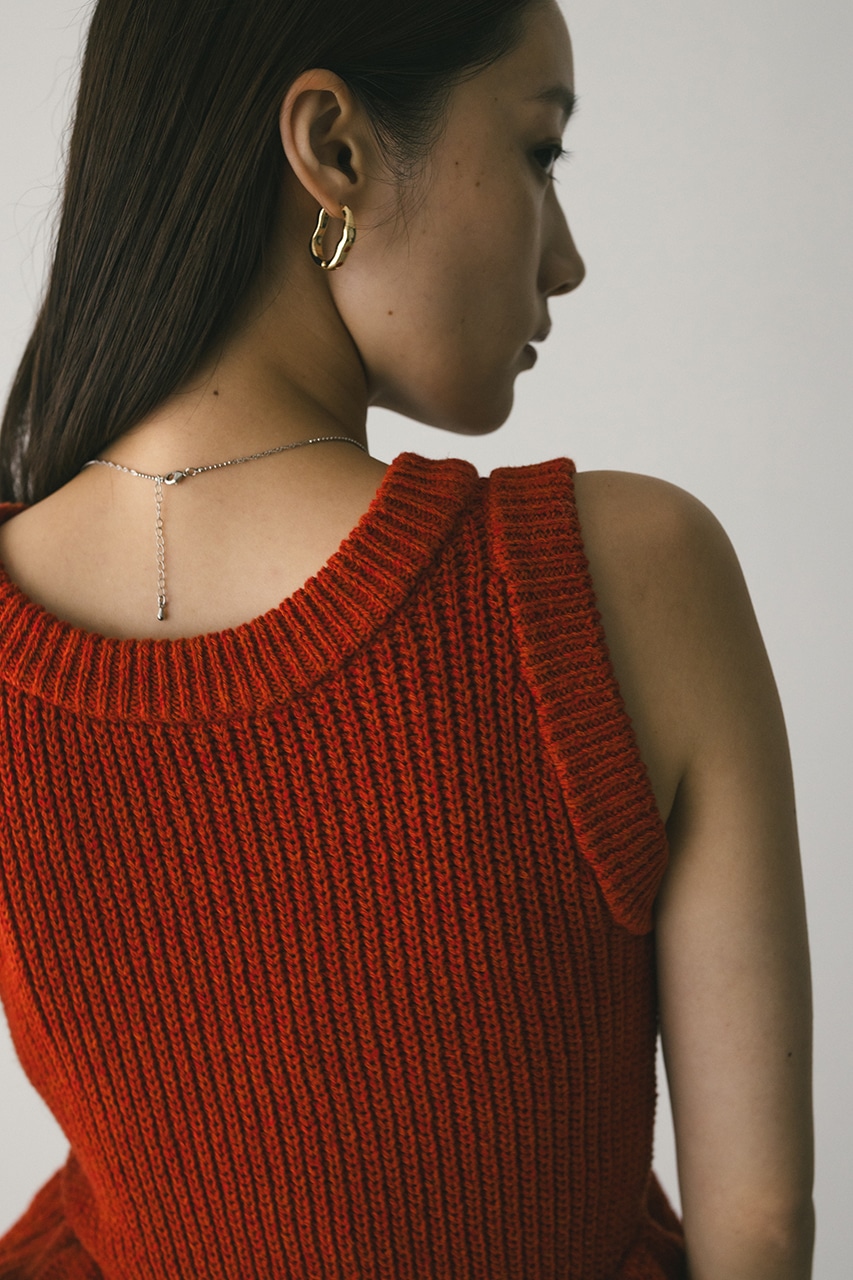 ドライなコットンリネンのミドルゲージで編み立てたペプラムシルエットが映えるニットタンク。すっきりとしたラウンドネックとミドルゲージの編地がスタイリングにこなれ感をプラス。カジュアルにもフェミニンにも着用いただけます。ストレッチあり、透け感なし。