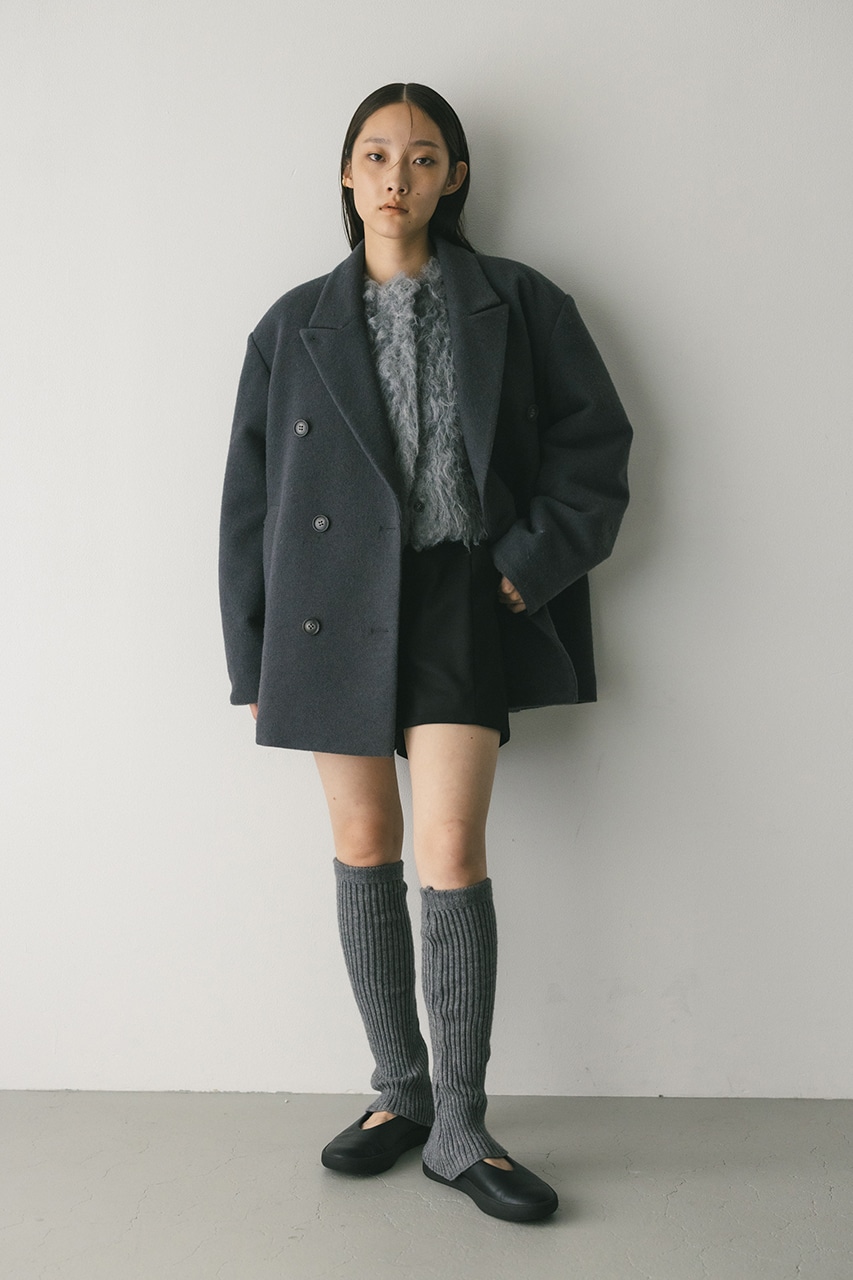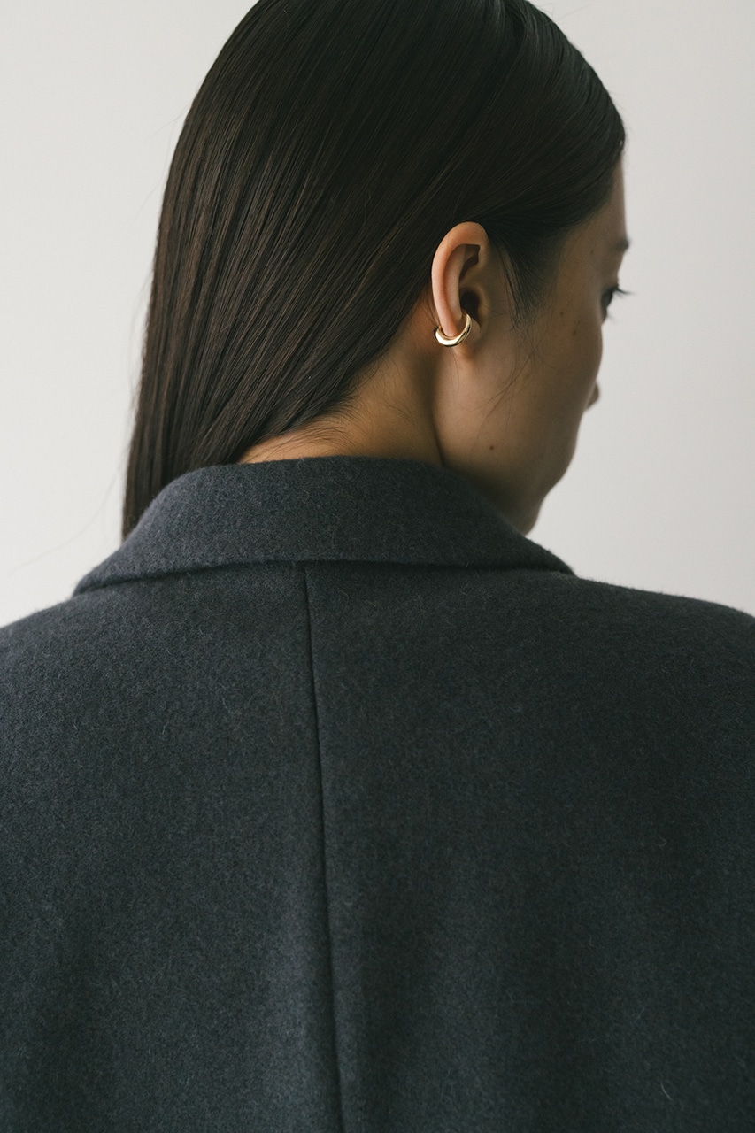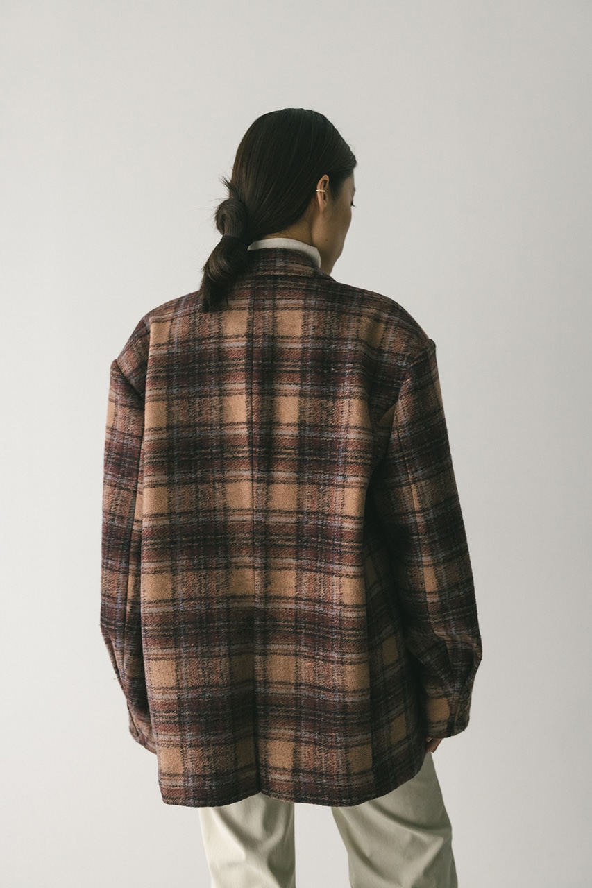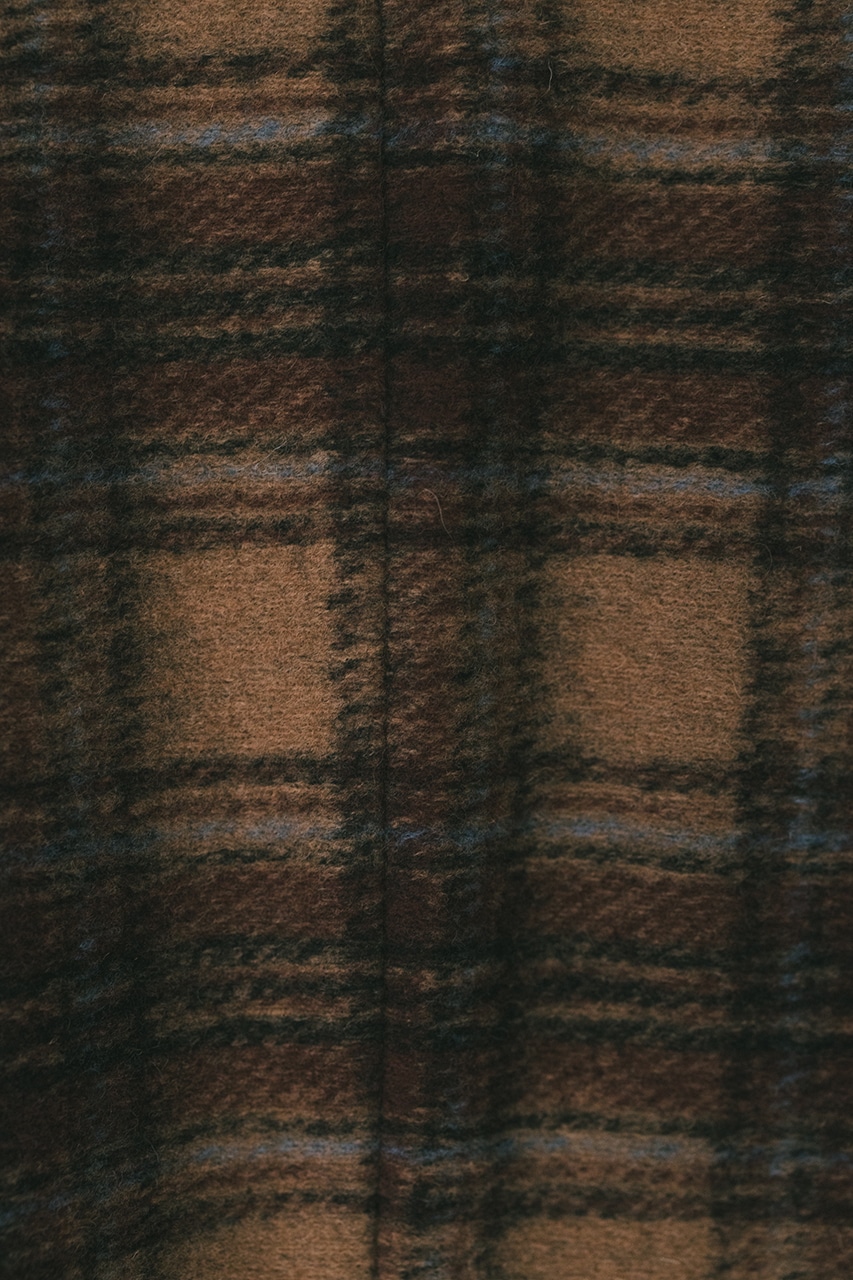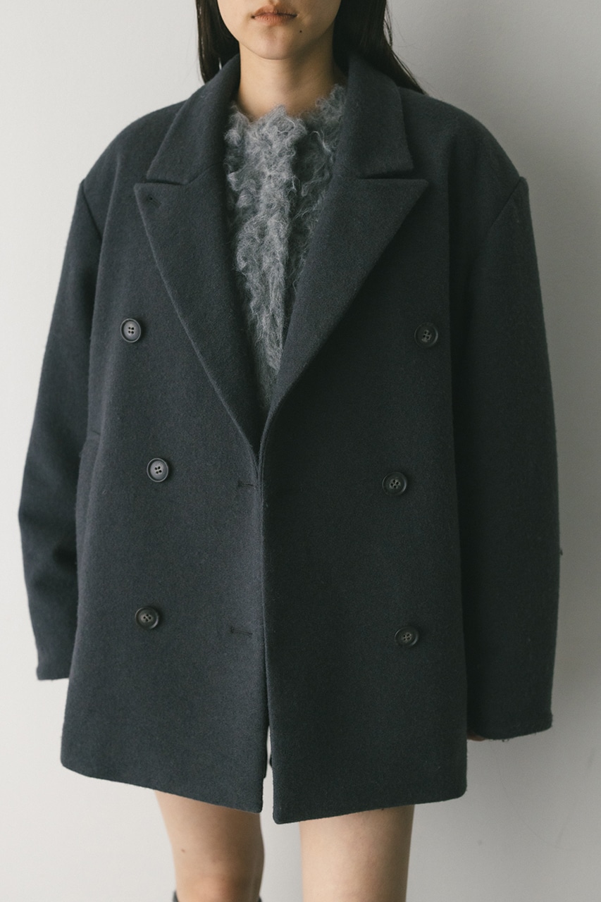 肩パットをしっかりと入れたパワーショルダーがマニッシュでモードな印象に導くPコート。無地とオリジナルのチェック柄の2種類の展開。襟はピークドラペルにしたことで、メンズライクでフォーマルな印象に仕上げました。軽くて柔らかな生地を使用しているので肌なじみも良い一枚。パンツからスカートまでどんなボトムスとも相性良く合わせていただけます。ストレッチなし、透け感なし。