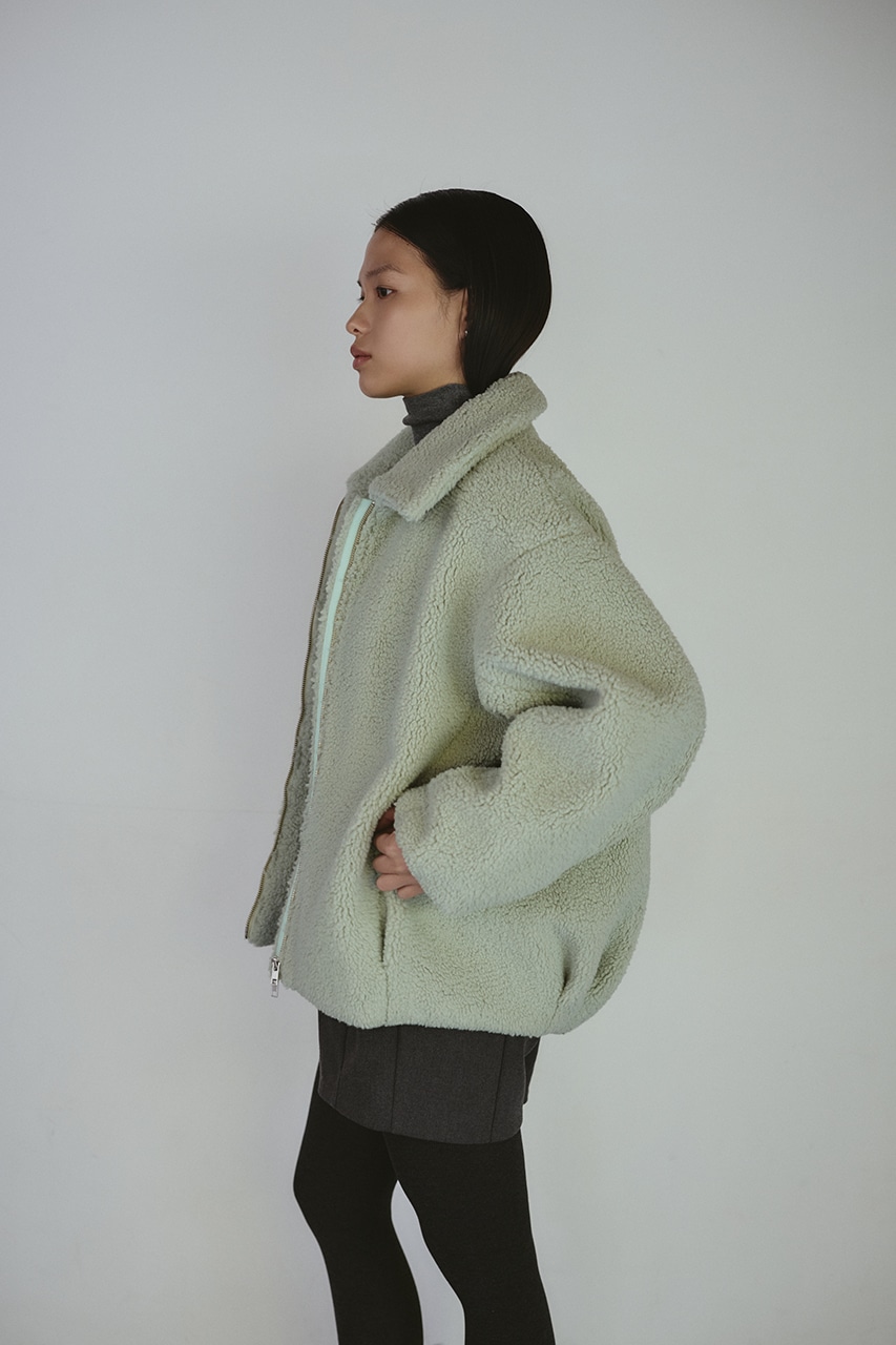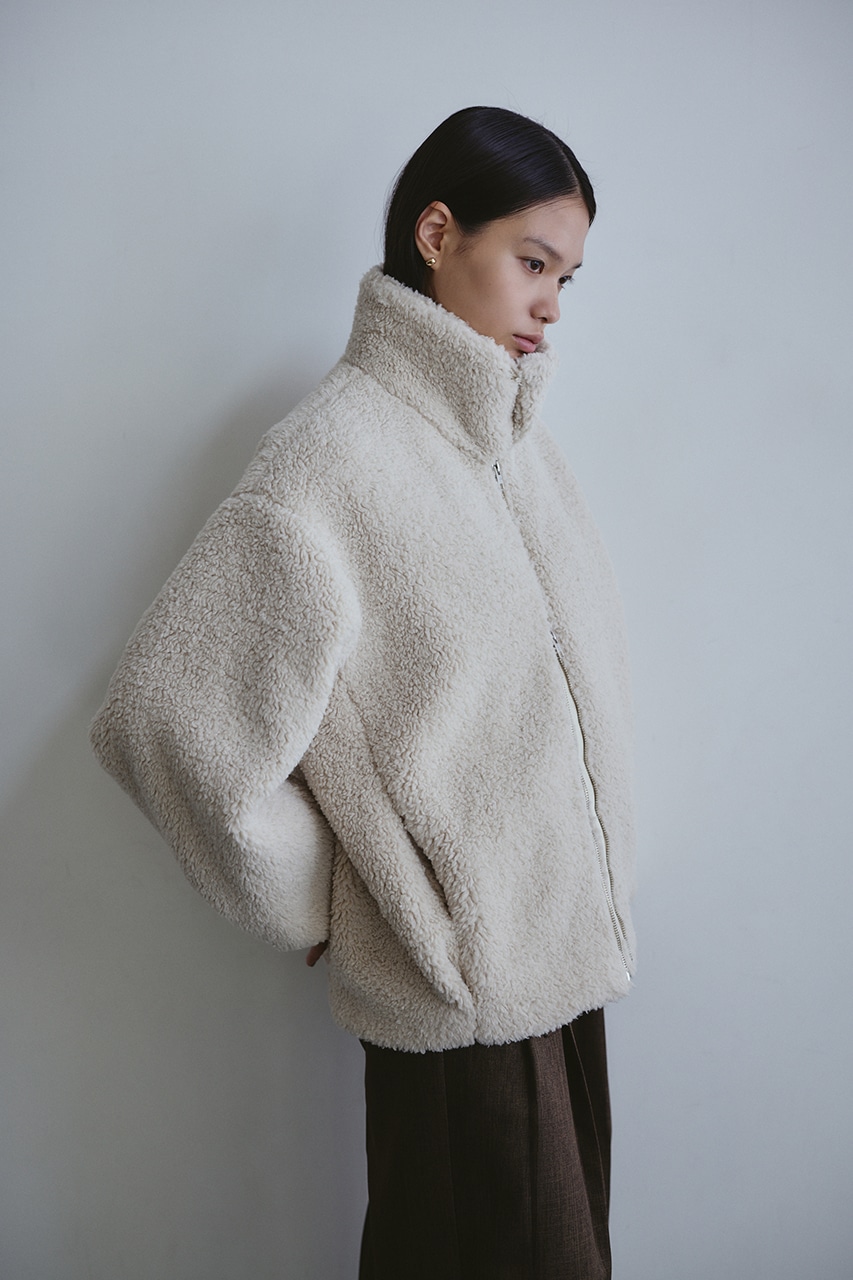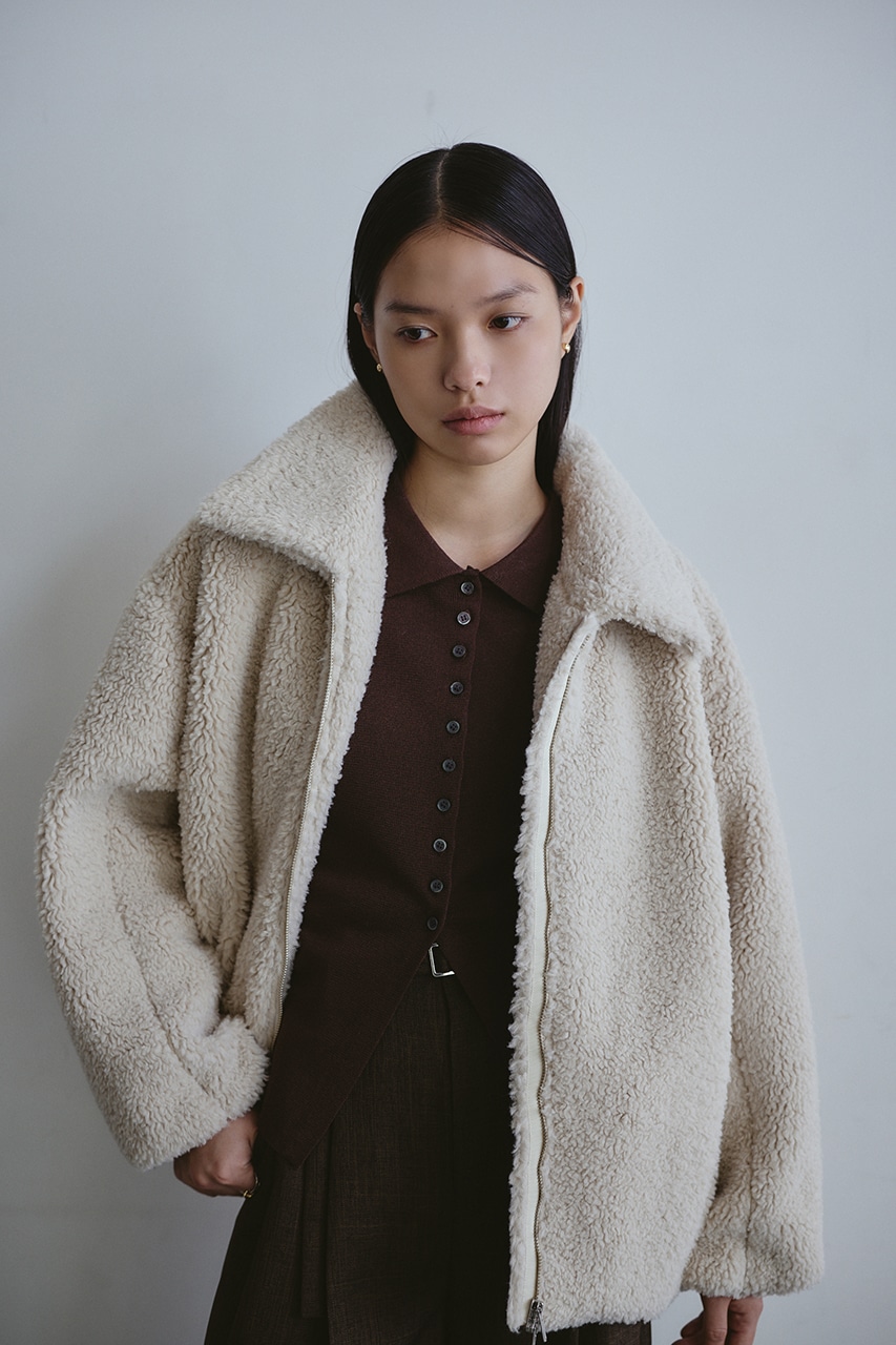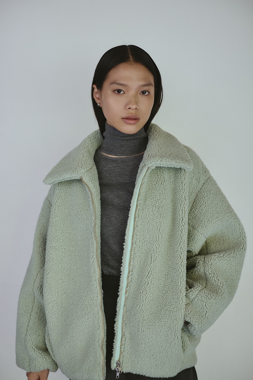 ふんわりとしたボリューム感が可愛いボアブルゾン。フロントジップでボアアイテムをカジュアルに仕上げた一枚です。袖と裾にタックをいれた丸いシルエットがポイント。特徴的な大きめの襟と少し下げた前開きで小顔見せに導きます。ポケットあり。ストレッチなし、透け感なし。