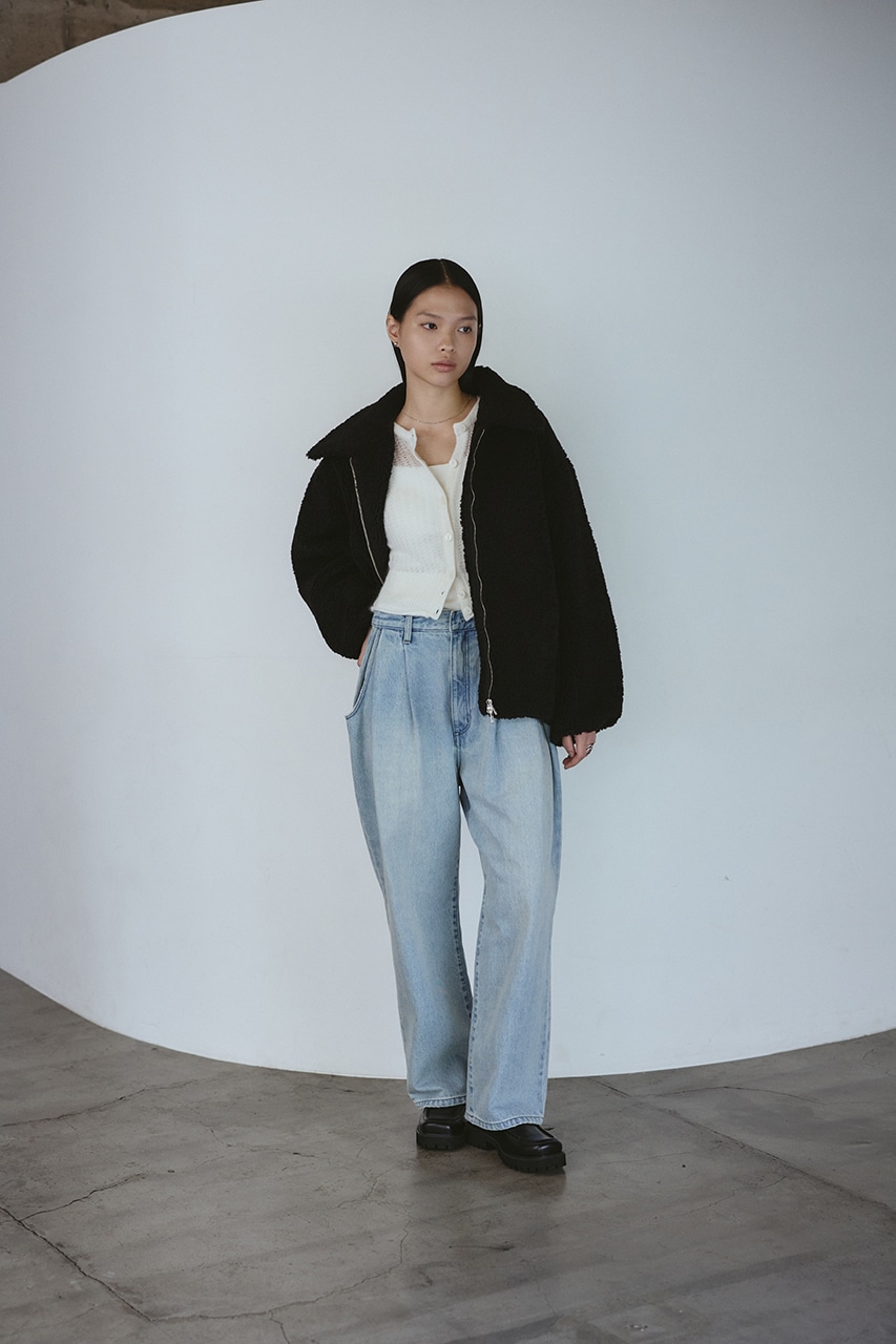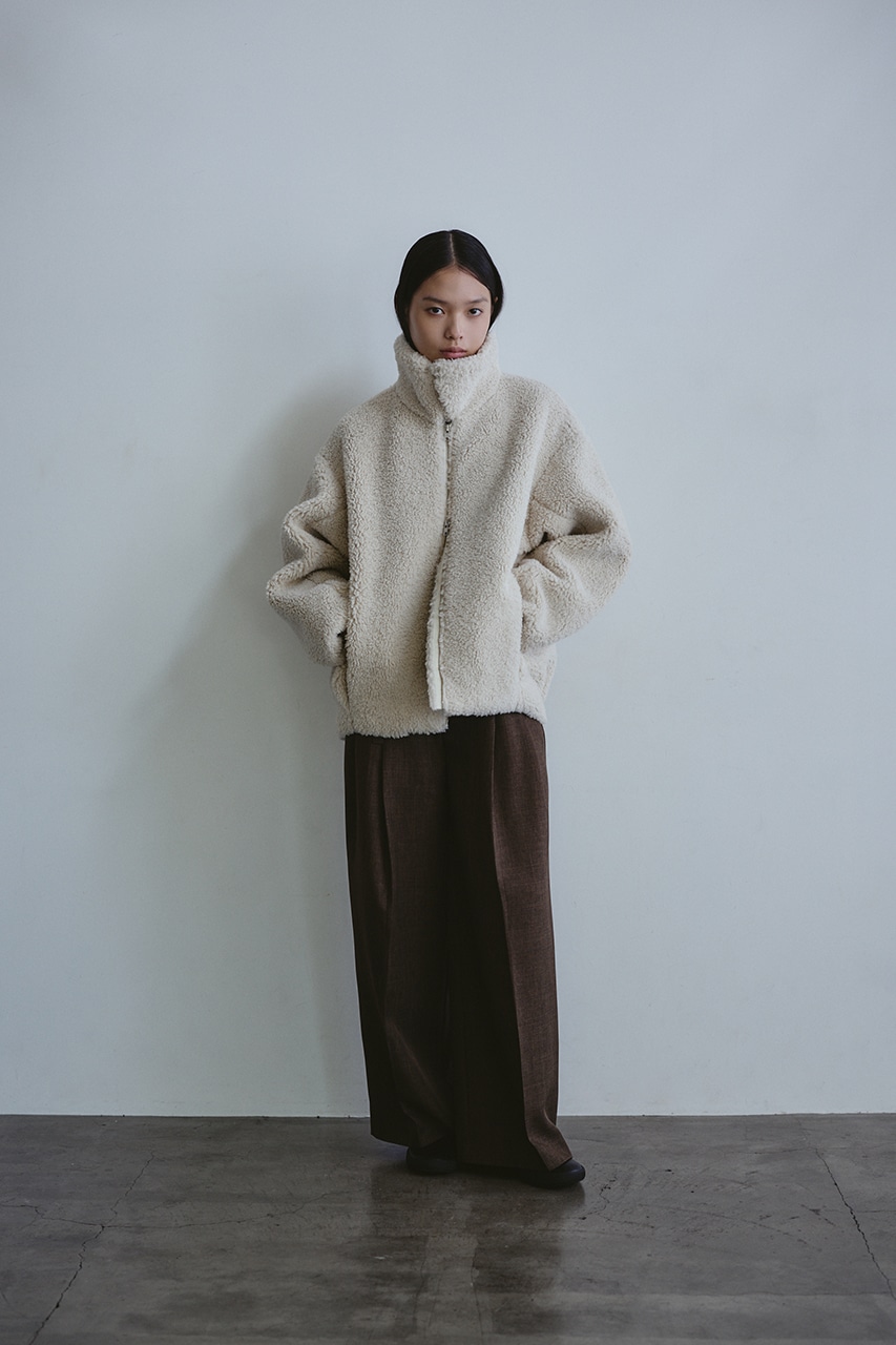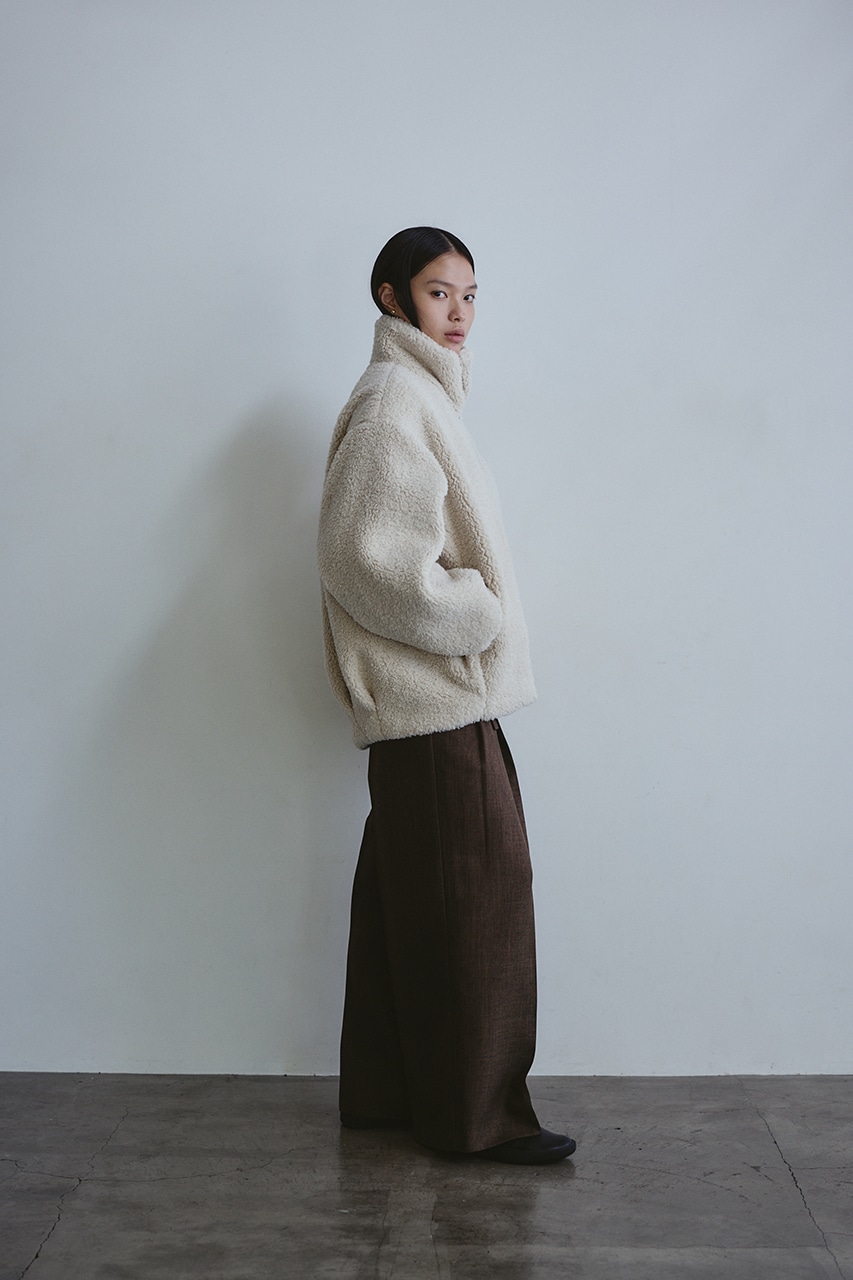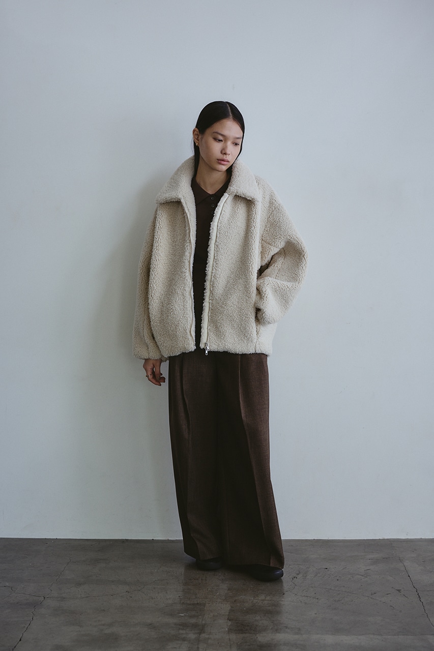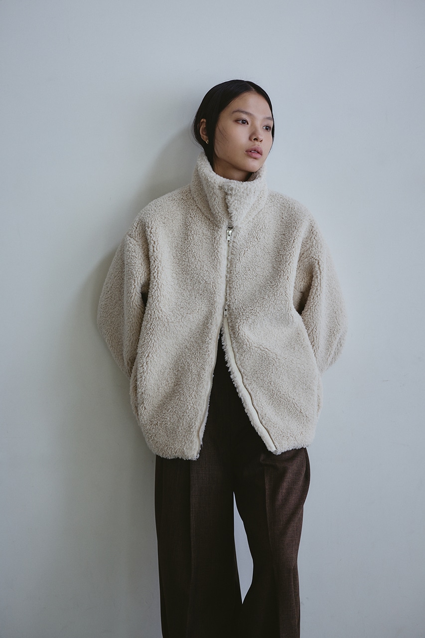 ふんわりとしたボリューム感が可愛いボアブルゾン。フロントジップでボアアイテムをカジュアルに仕上げた一枚です。袖と裾にタックをいれた丸いシルエットがポイント。特徴的な大きめの襟と少し下げた前開きで小顔見せに導きます。ポケットあり。ストレッチなし、透け感なし。