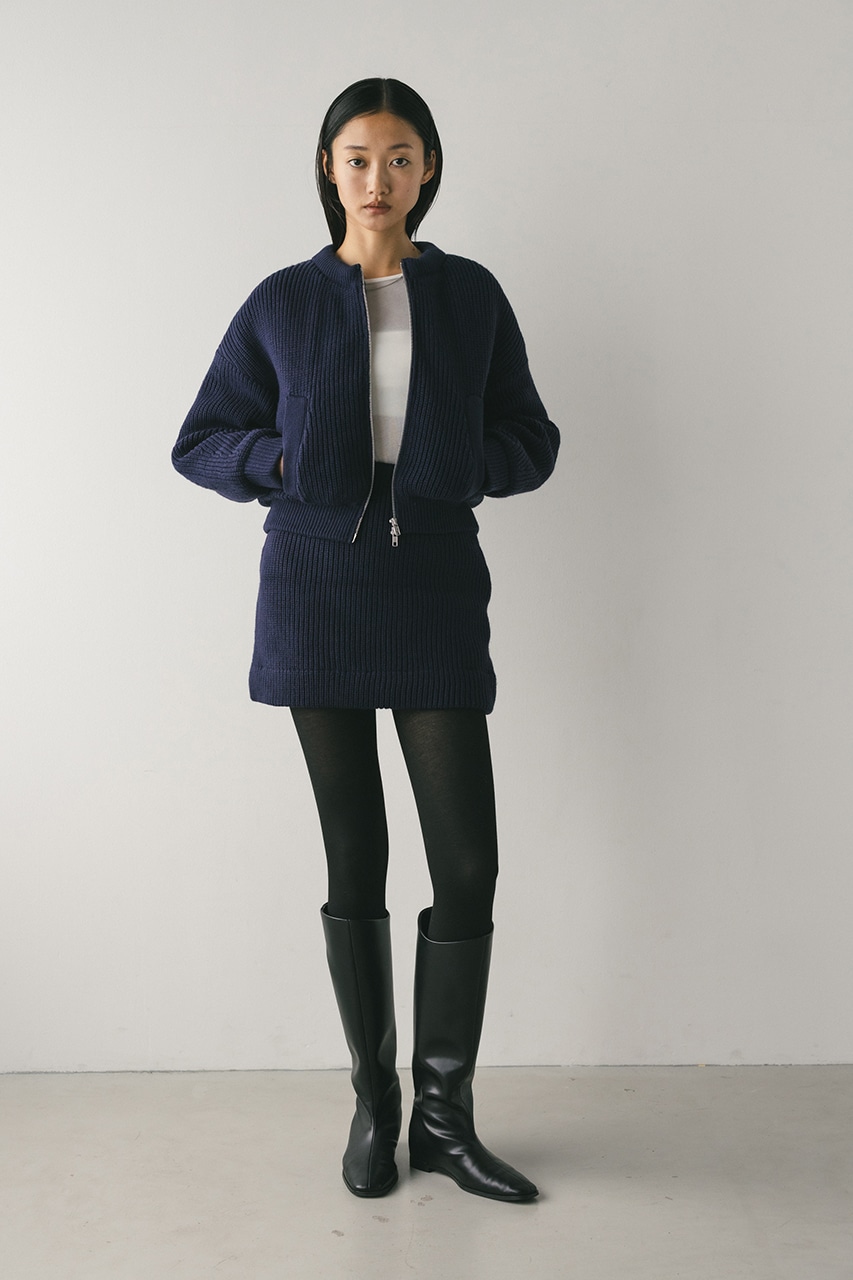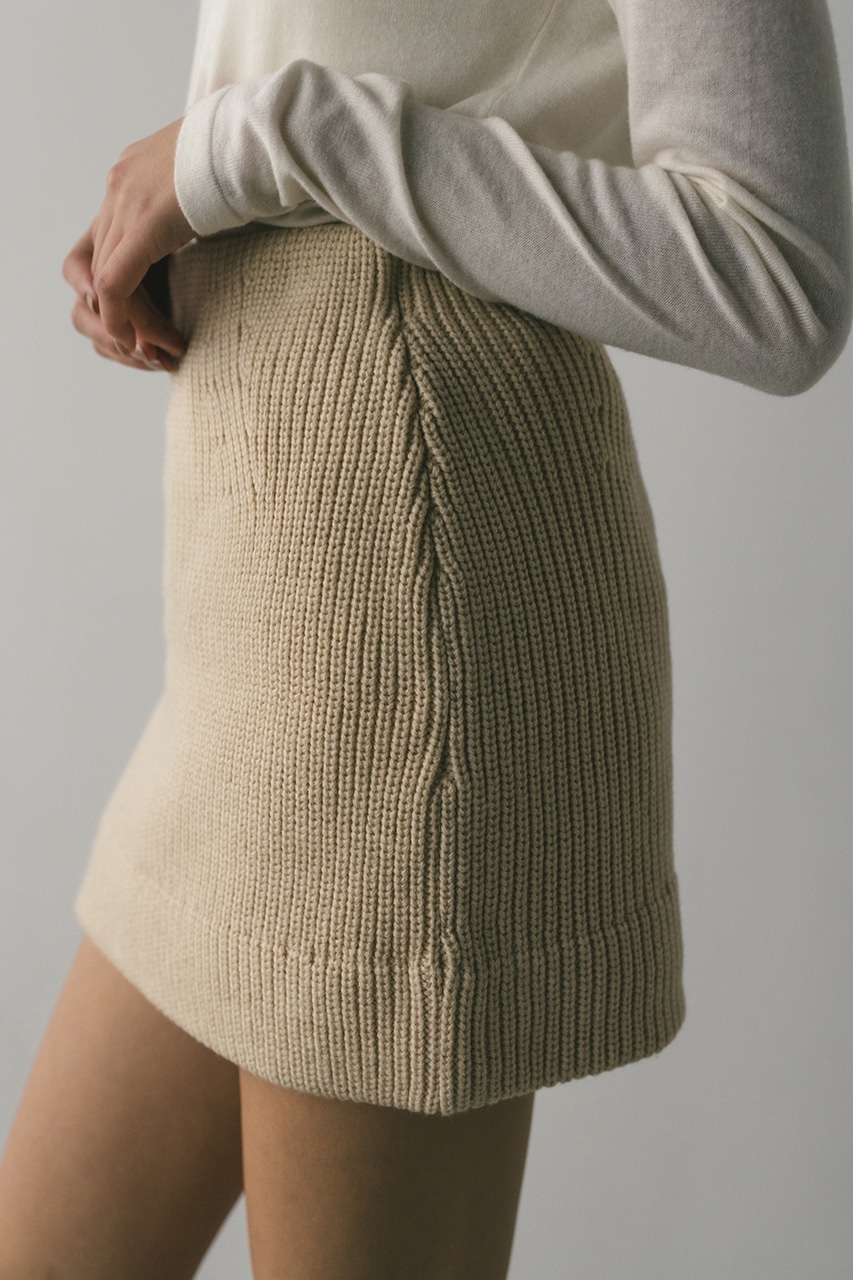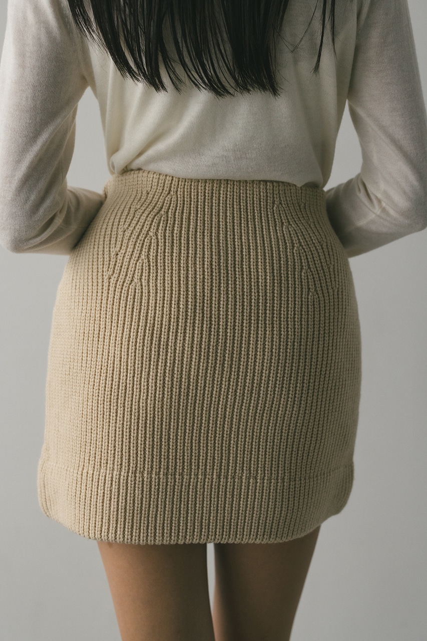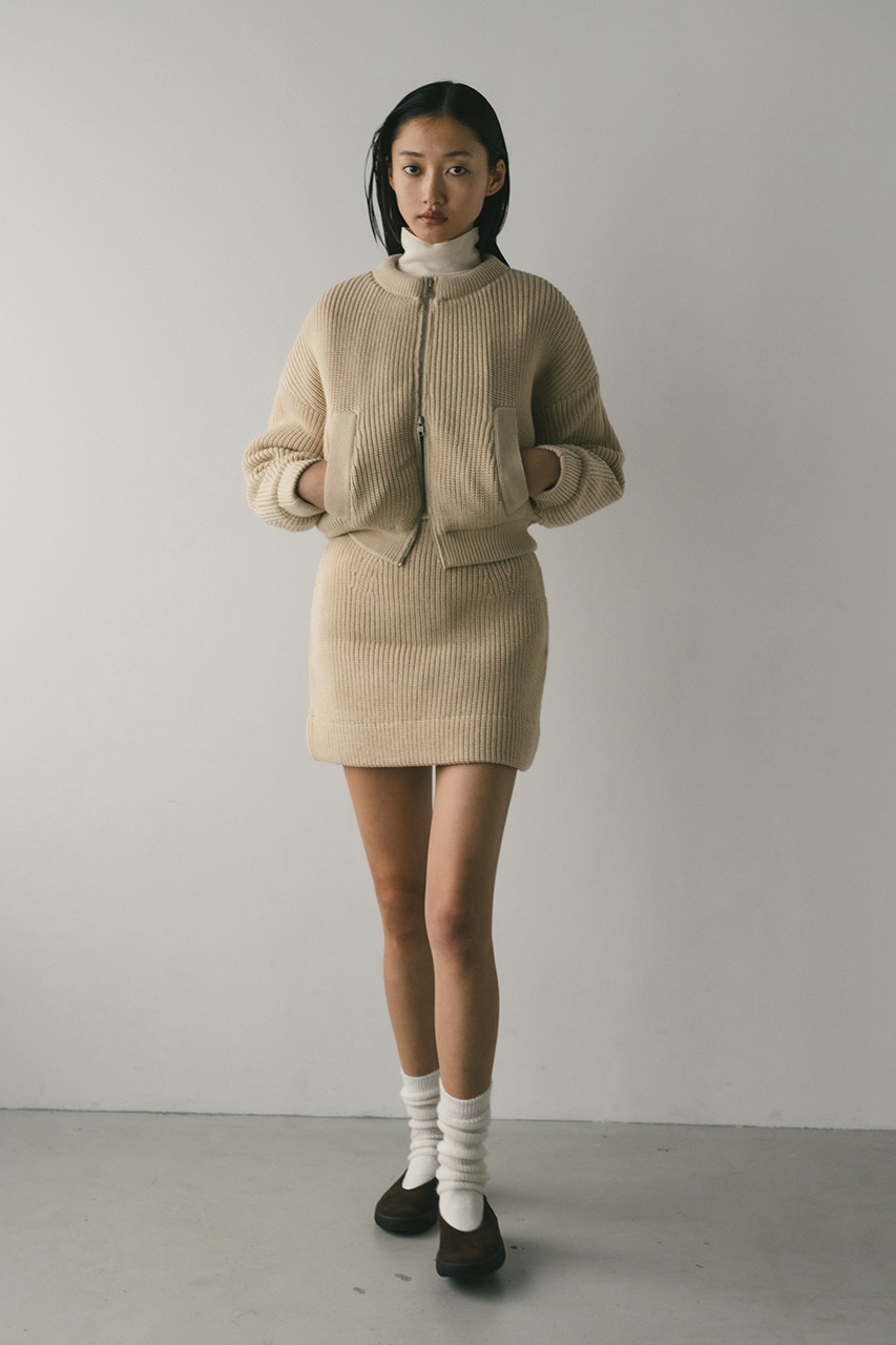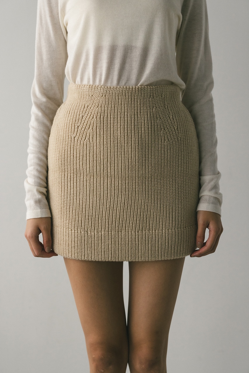 中綿のスカートを温かみのあるニット素材で編立てで仕上げたニットパッファーミニスカート。ふっくらとした風合いの糸を使用し、方畦編みで編み立てる事で独特の立体感と高級感のでる編地に仕上げました。中綿なので暖かく、コンパクトな丈感がポイントのスカートです。ウエストゴム仕様。500IAT30-0951(ニットパッファーブルゾン)とセットアップ着用可能。ストレットあり、透け感なし。