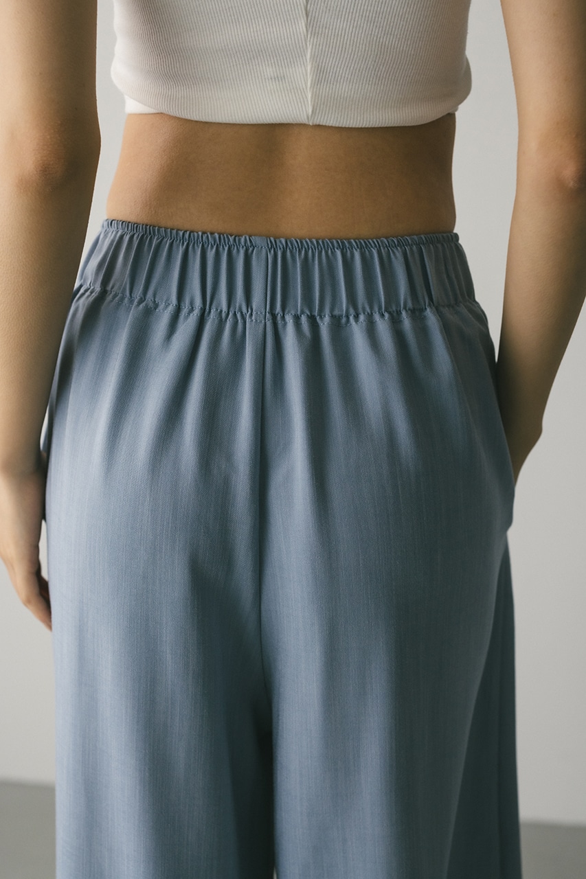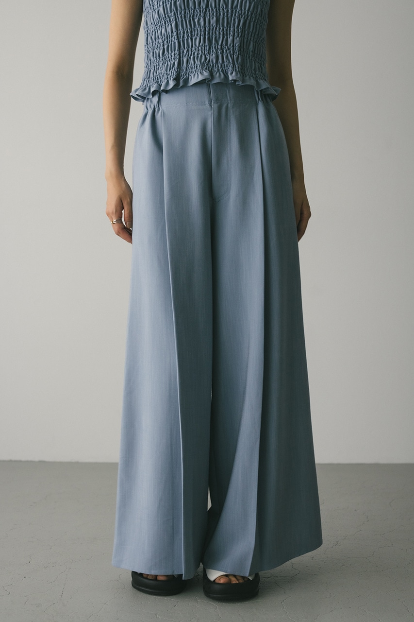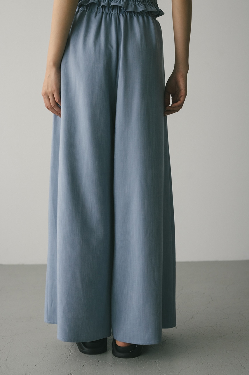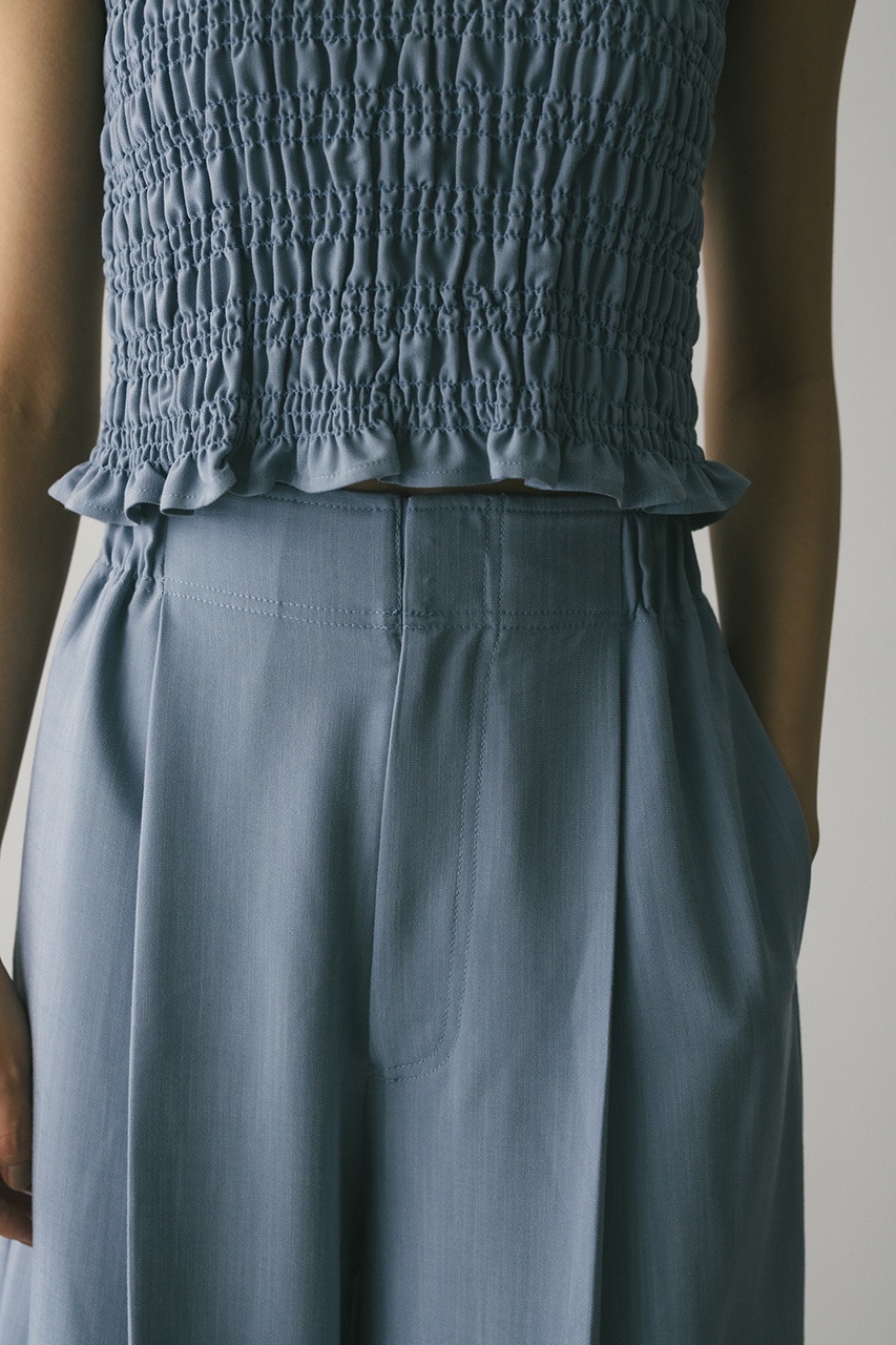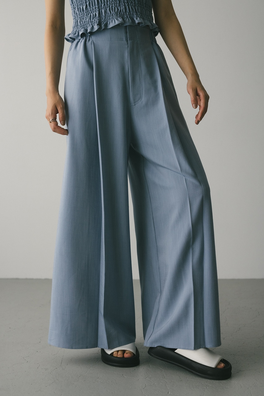 柔らかな肌触りやシルクのような光沢感、吸湿性や速乾性に優れているテンセル混デニム生地を使用したワイドパンツ。軽くさらりとした履き心地がポイント。カジュアル過ぎない大人なデニムです。500IAT30-1281(シャーリングトップ)とセットアップ着用可能。ストレッチあり、透け感なし。