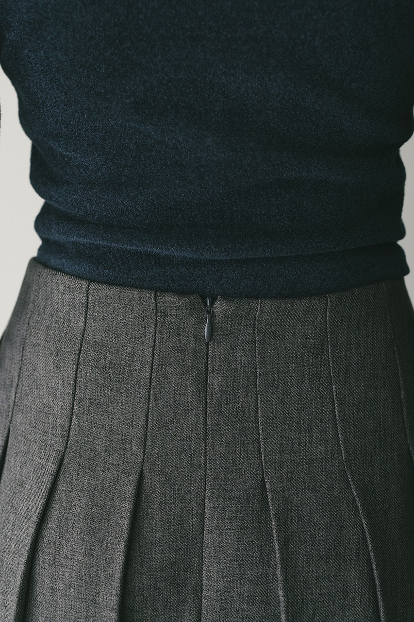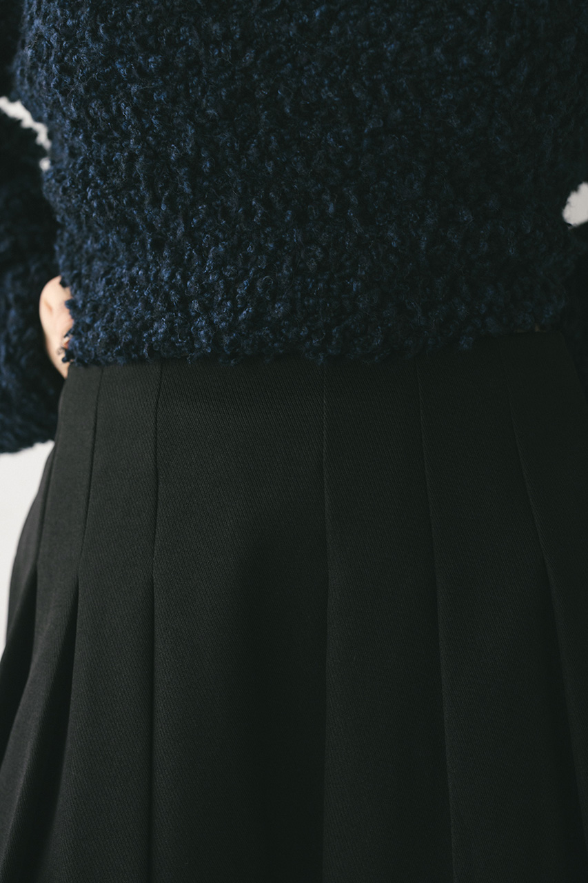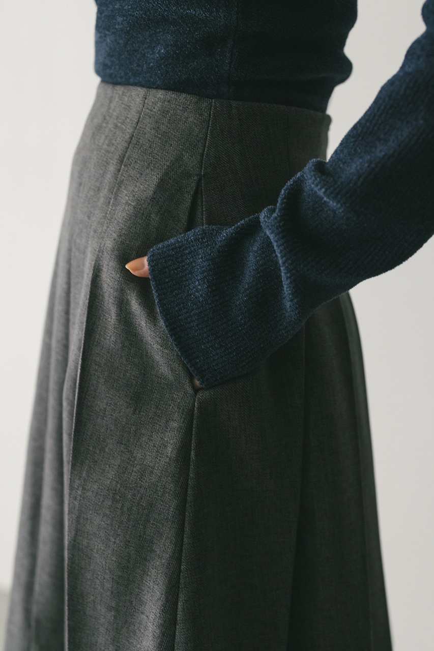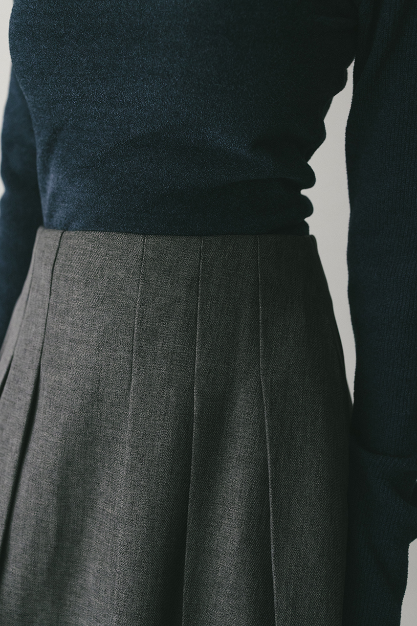 大きく入れたタックと裾にかけてのフレアが動きのあるミディーレングスのスカート。Aラインのシルエットがボリューム感がありながらもすっきりと見せてくれます。ストレッチなし、透け感なし。