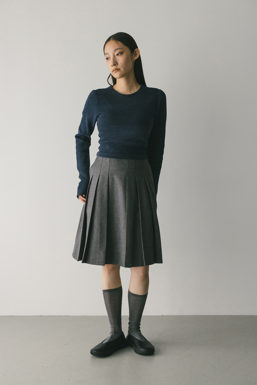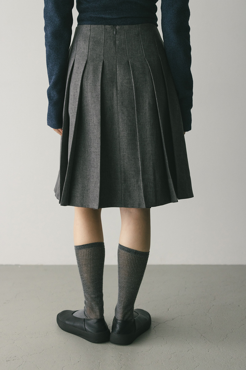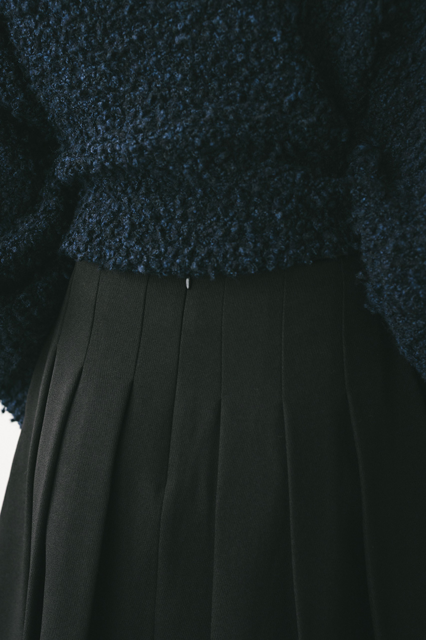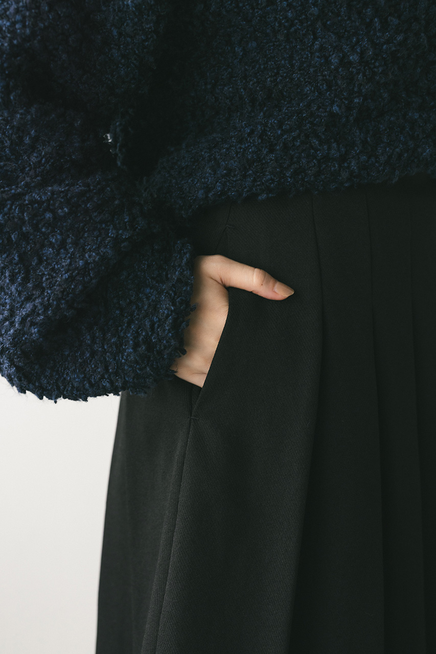 大きく入れたタックと裾にかけてのフレアが動きのあるミディーレングスのスカート。Aラインのシルエットがボリューム感がありながらもすっきりと見せてくれます。ストレッチなし、透け感なし。