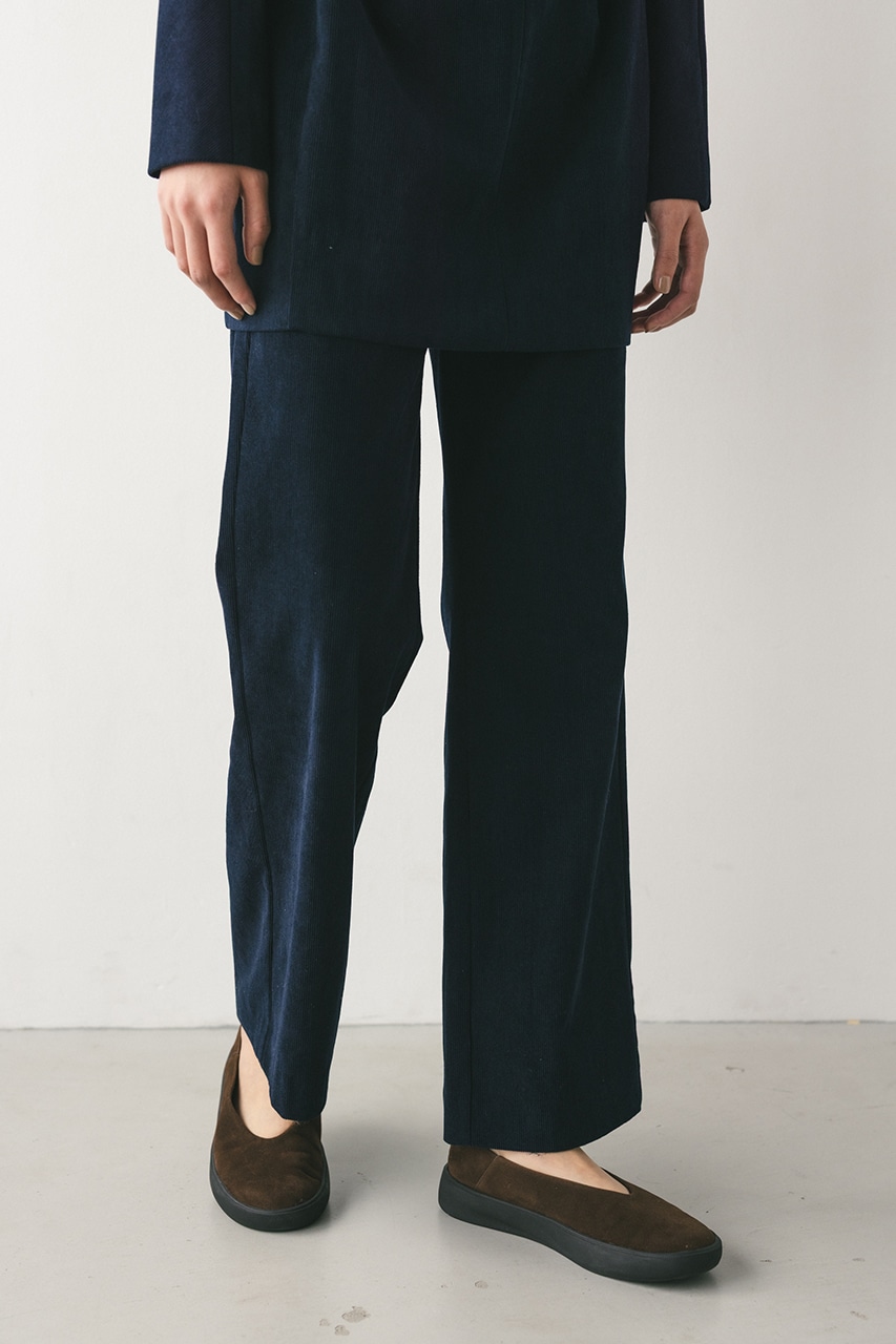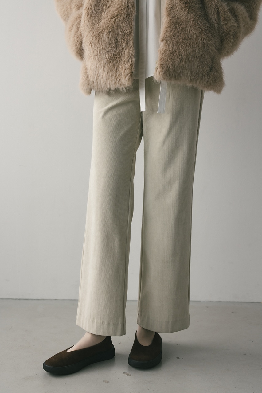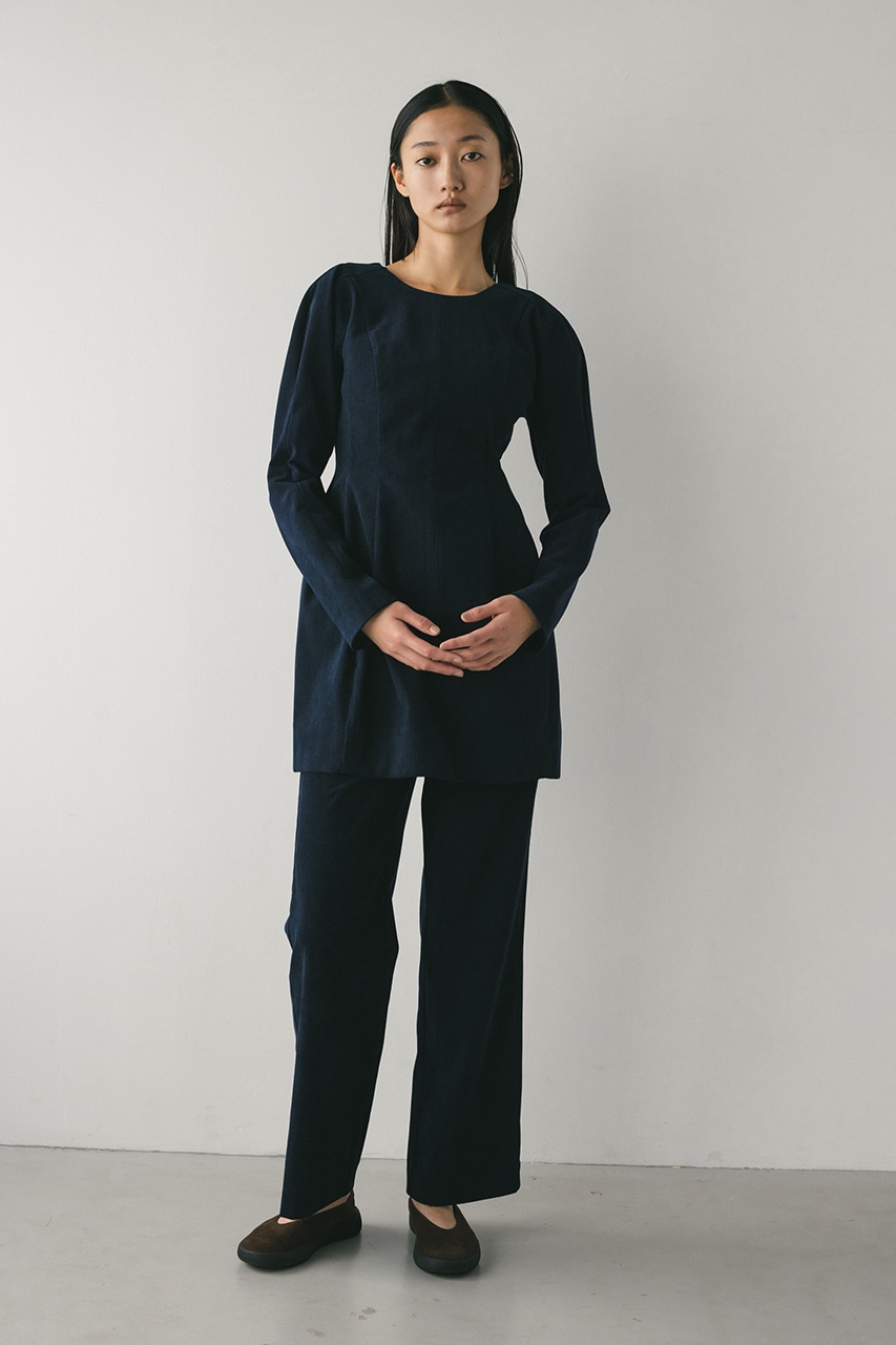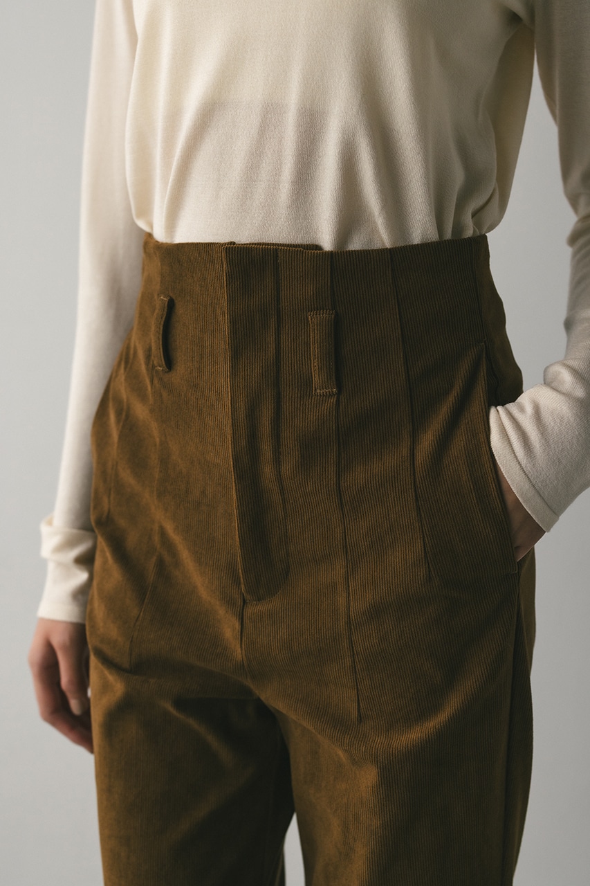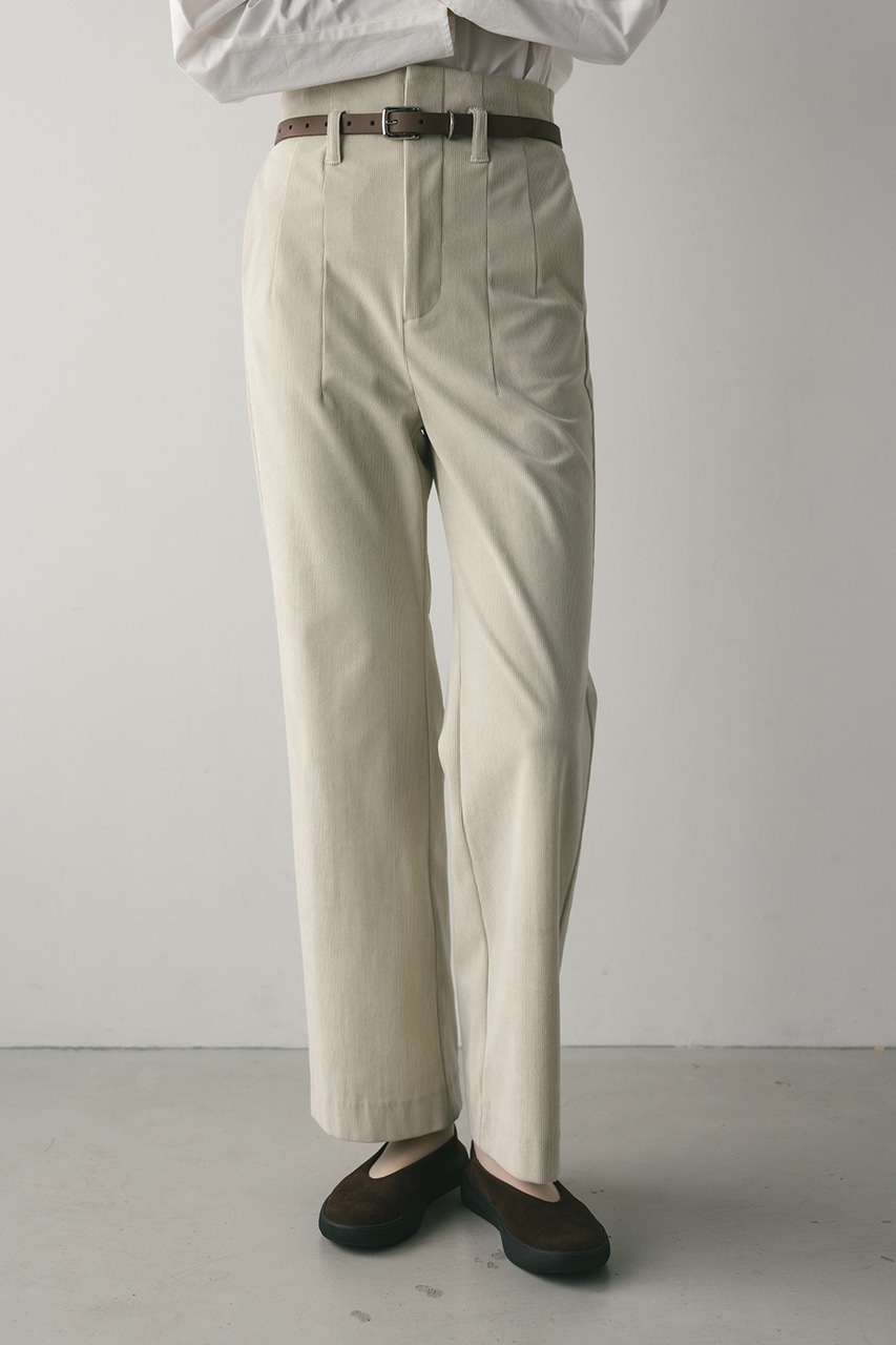 やわらかい肌触り、独特の光沢感と畝のある見た目がモードなコーデュロイパンツ。膝位置を上から設定し、広がりすぎないセミフレアーシルエットに仕上げました。コーデュロイの素材感が魅力の一枚なのでトップスはシンプルなカットソーやリブニットなどと合わせるだけでコーディネートが決まる一枚です。500IAT33-2411(コーデュロイフォルムミニワンピース)とセットアップ着用可能。ストレッチあり、透け感なし。