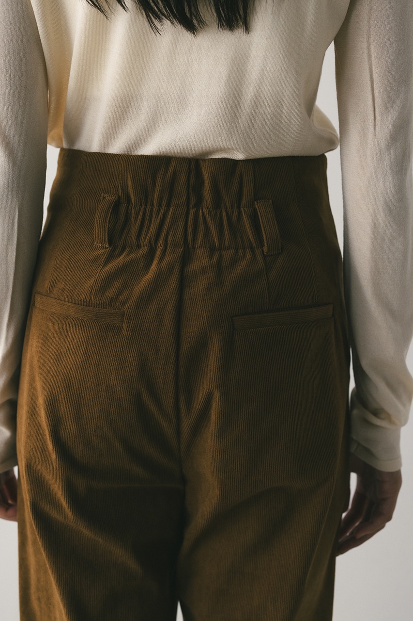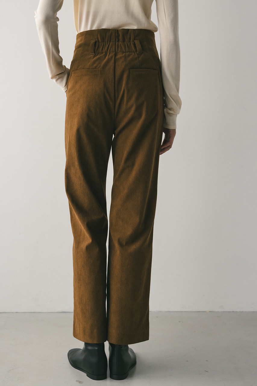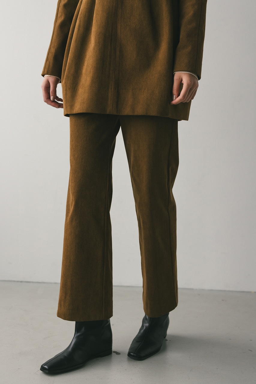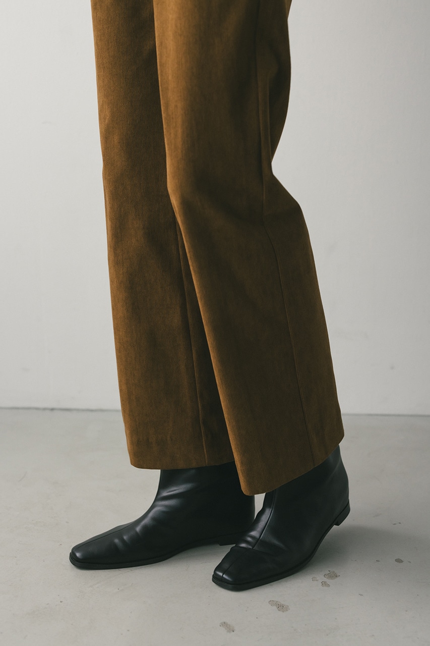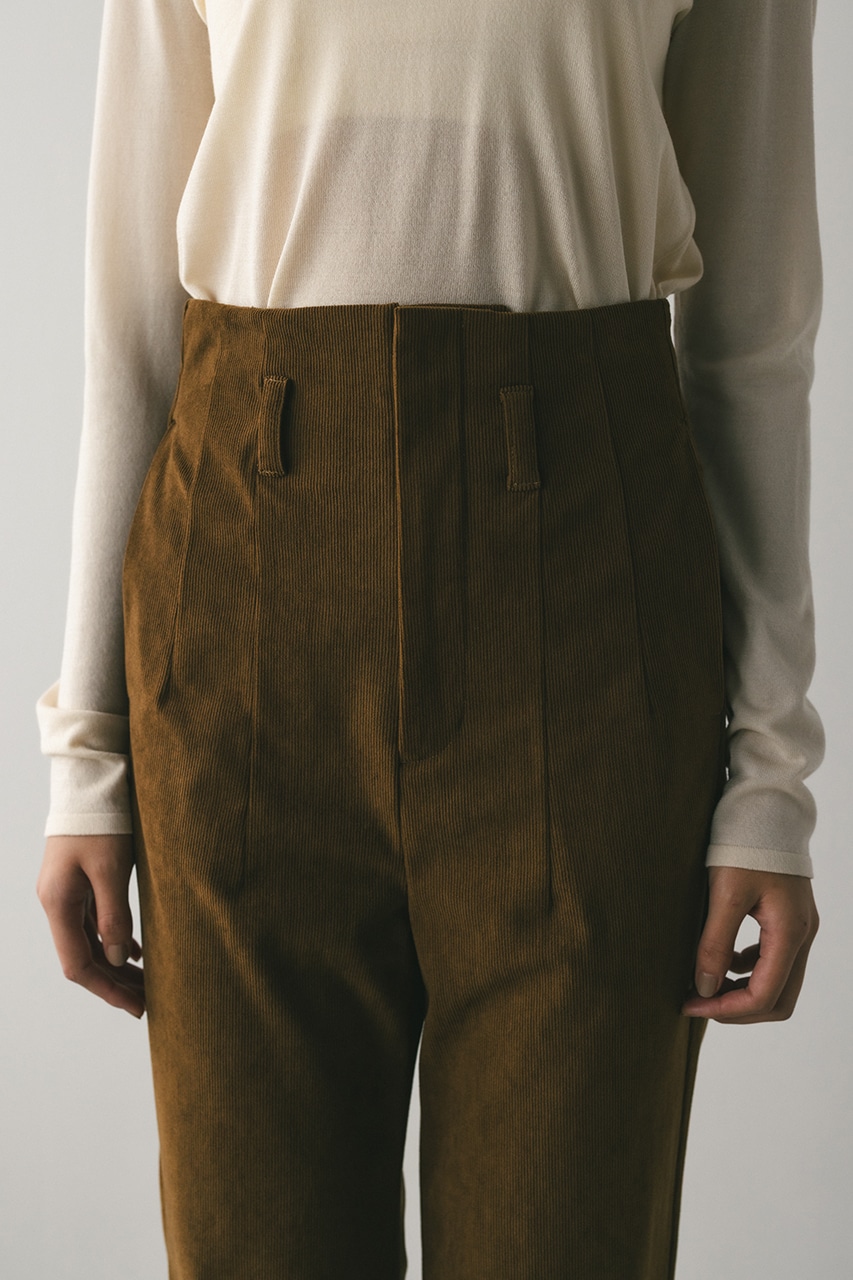 やわらかい肌触り、独特の光沢感と畝のある見た目がモードなコーデュロイパンツ。膝位置を上から設定し、広がりすぎないセミフレアーシルエットに仕上げました。コーデュロイの素材感が魅力の一枚なのでトップスはシンプルなカットソーやリブニットなどと合わせるだけでコーディネートが決まる一枚です。500IAT33-2411(コーデュロイフォルムミニワンピース)とセットアップ着用可能。ストレッチあり、透け感なし。