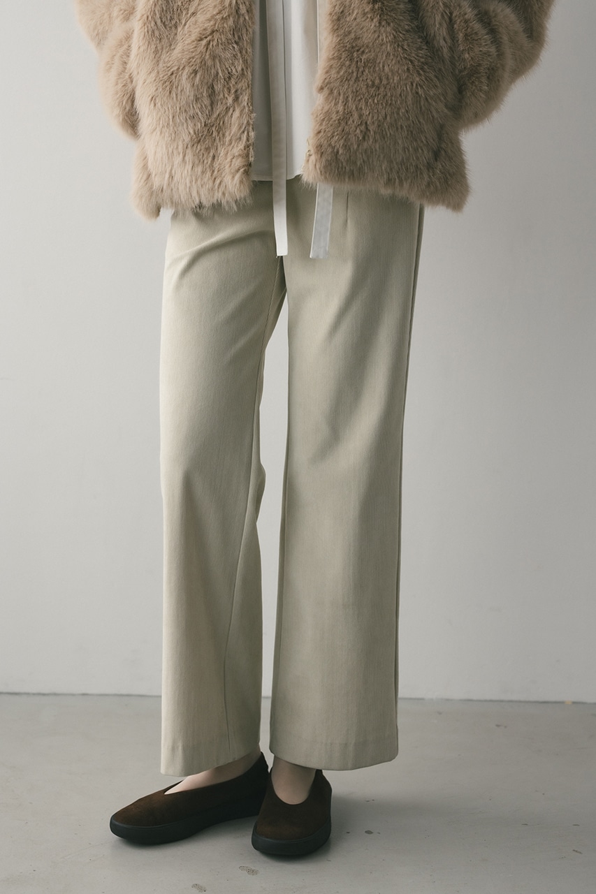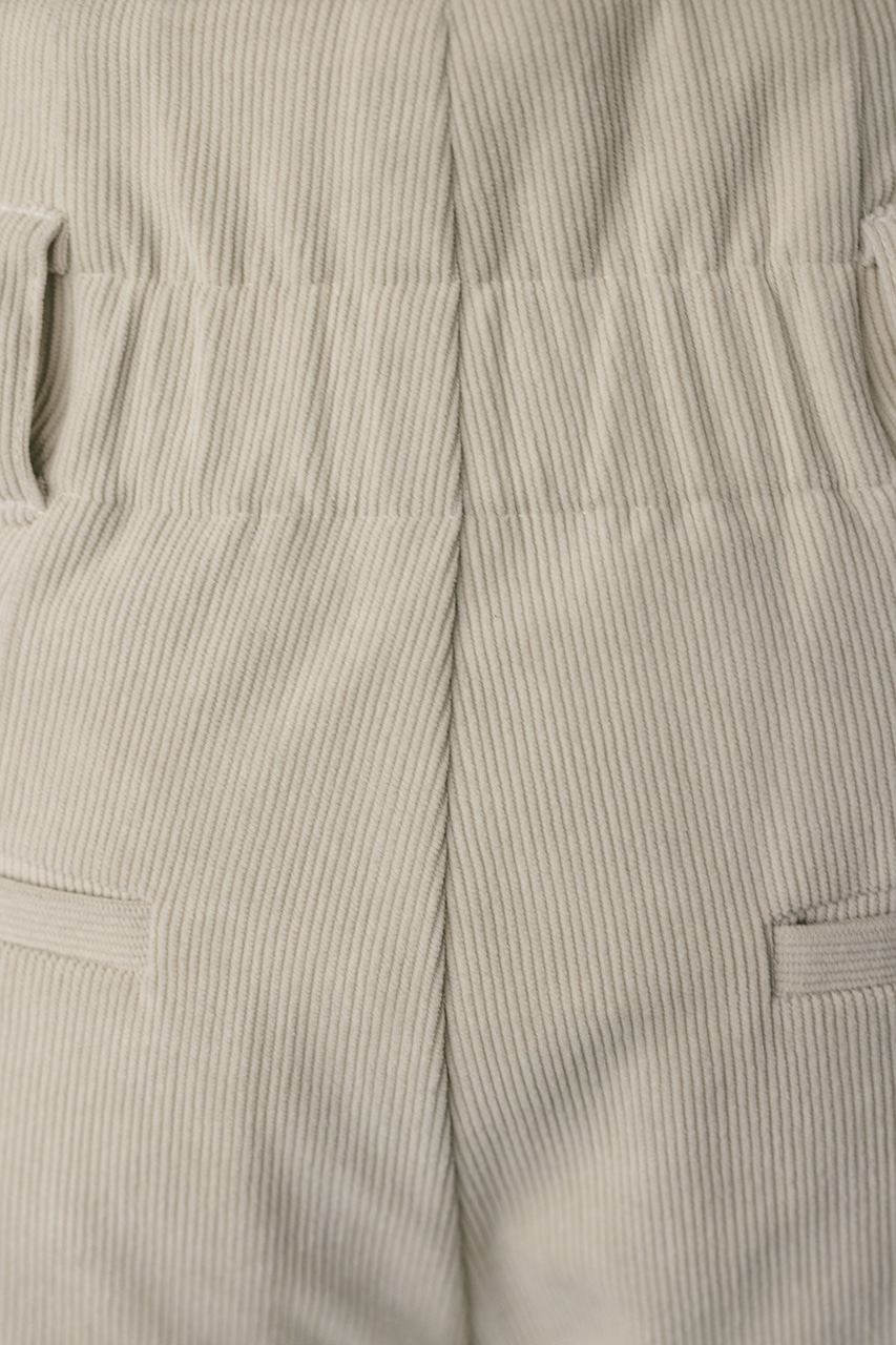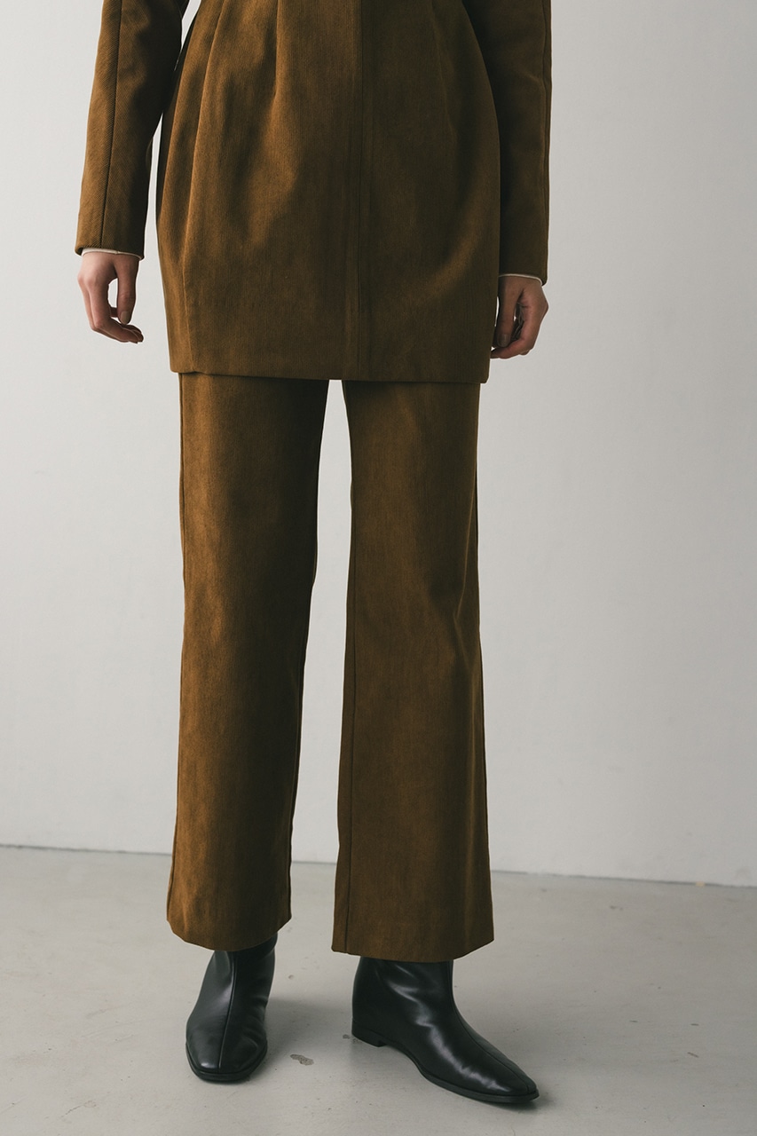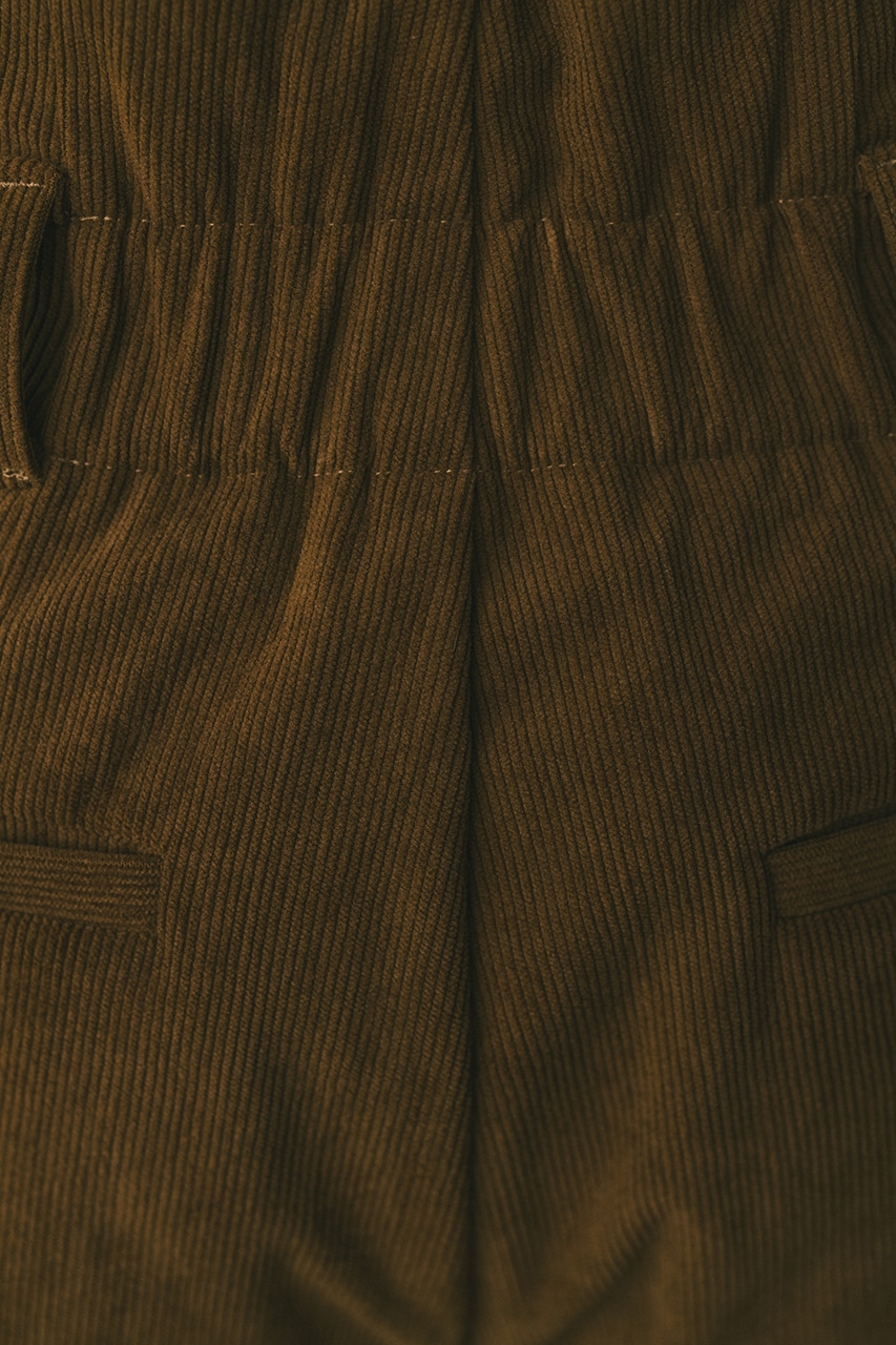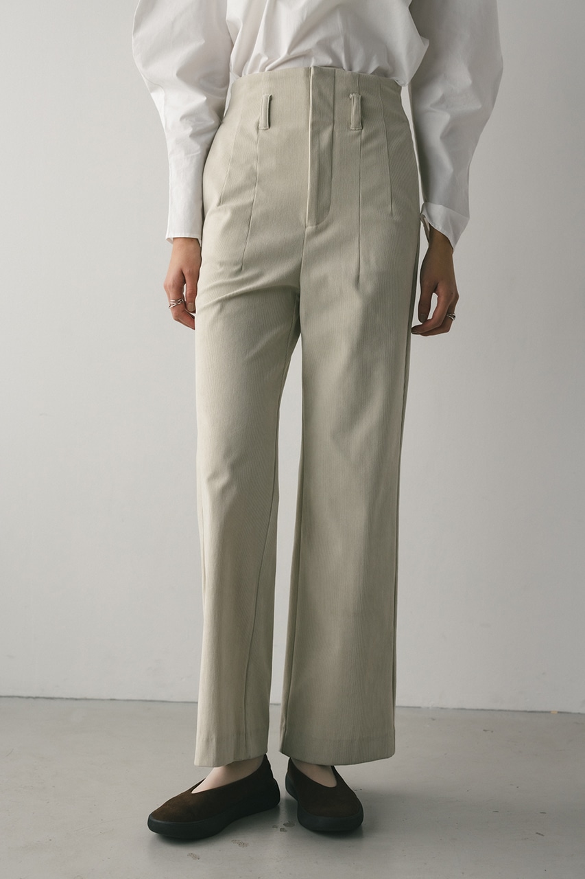やわらかい肌触り、独特の光沢感と畝のある見た目がモードなコーデュロイパンツ。膝位置を上から設定し、広がりすぎないセミフレアーシルエットに仕上げました。コーデュロイの素材感が魅力の一枚なのでトップスはシンプルなカットソーやリブニットなどと合わせるだけでコーディネートが決まる一枚です。500IAT33-2411(コーデュロイフォルムミニワンピース)とセットアップ着用可能。ストレッチあり、透け感なし。