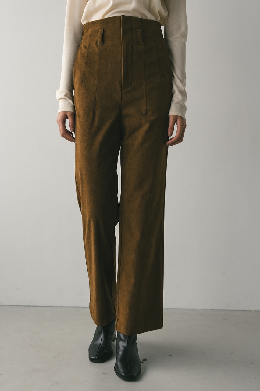 やわらかい肌触り、独特の光沢感と畝のある見た目がモードなコーデュロイパンツ。膝位置を上から設定し、広がりすぎないセミフレアーシルエットに仕上げました。コーデュロイの素材感が魅力の一枚なのでトップスはシンプルなカットソーやリブニットなどと合わせるだけでコーディネートが決まる一枚です。500IAT33-2411(コーデュロイフォルムミニワンピース)とセットアップ着用可能。ストレッチあり、透け感なし。