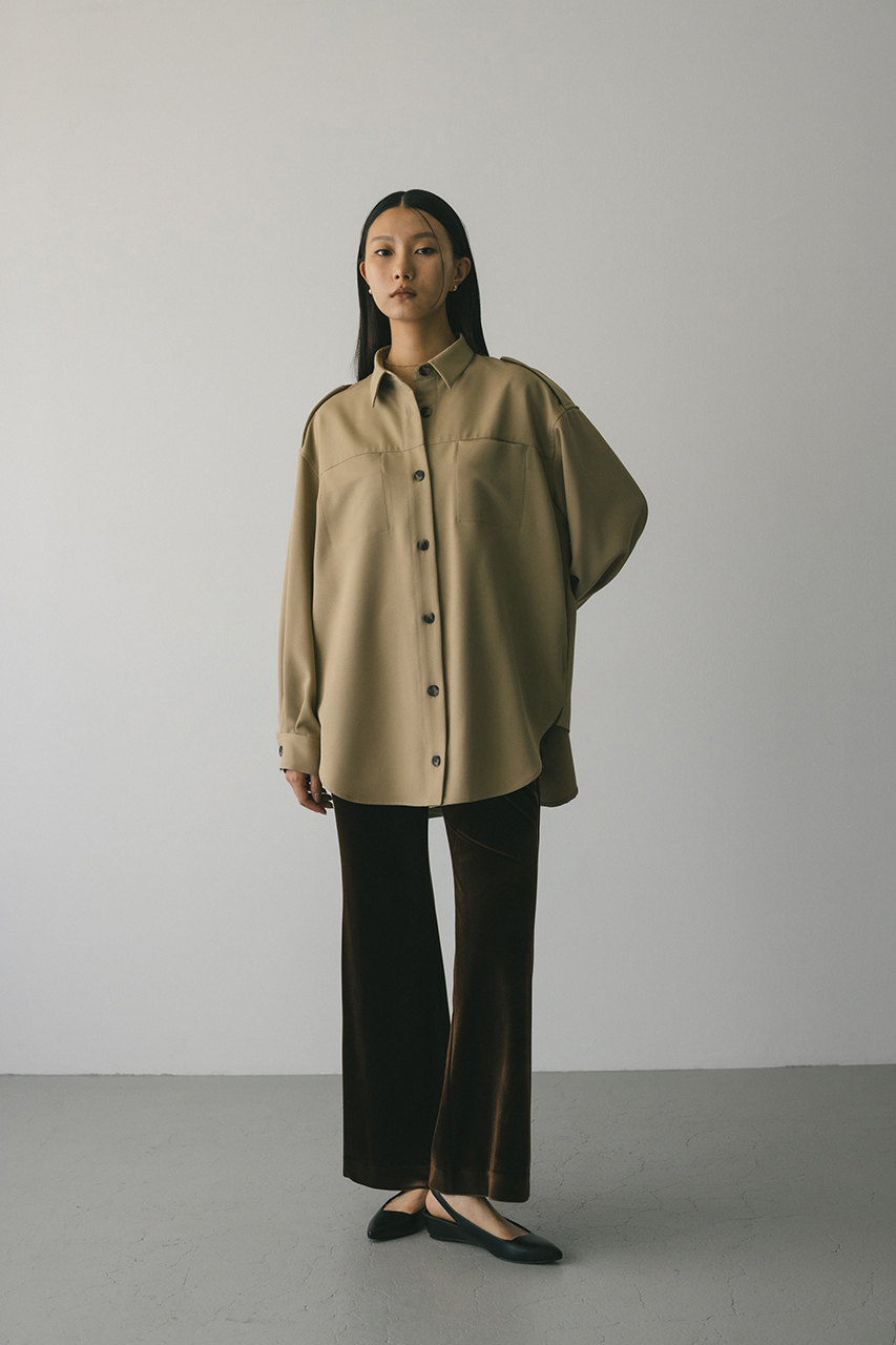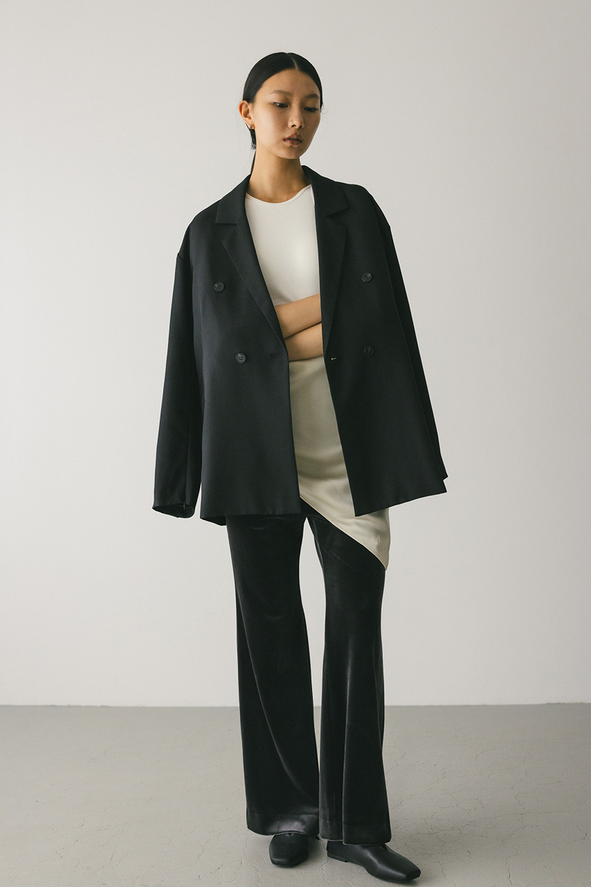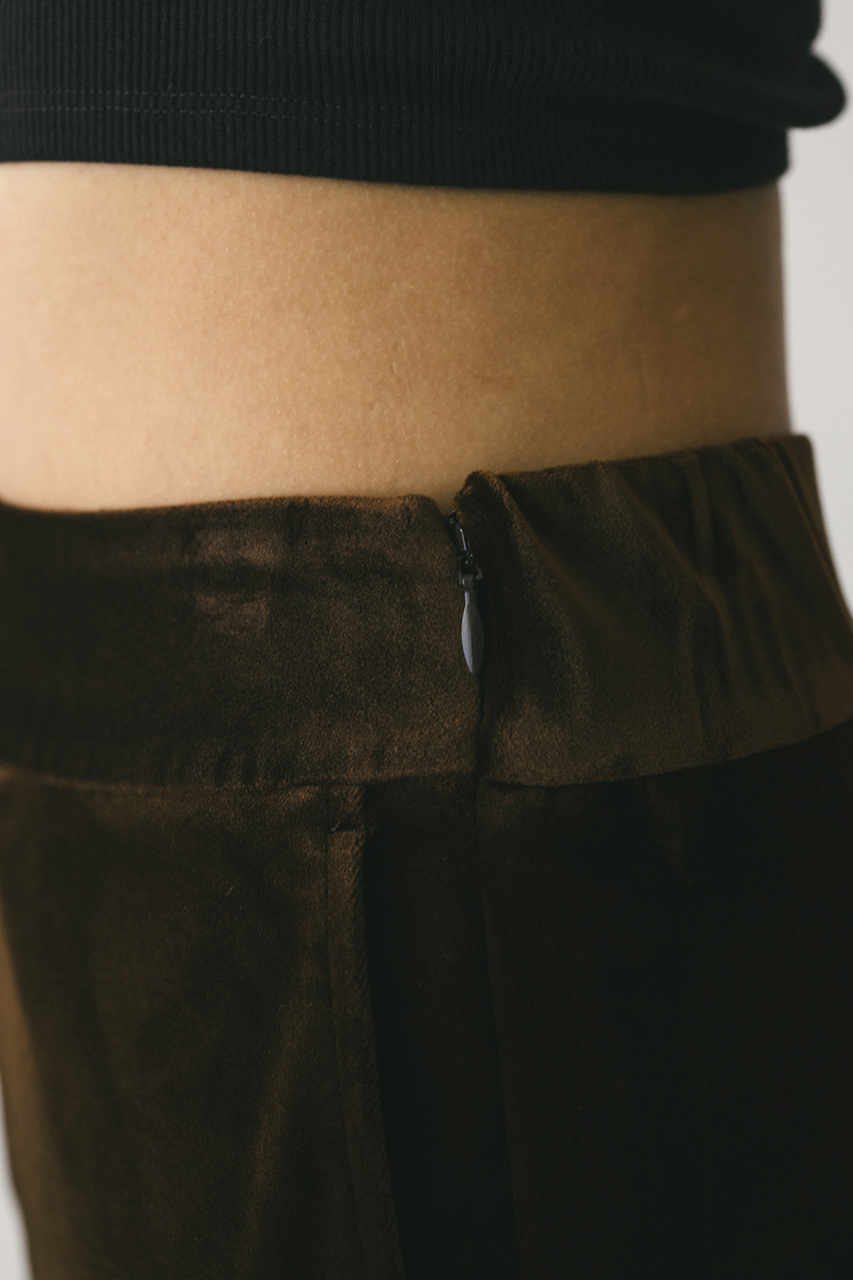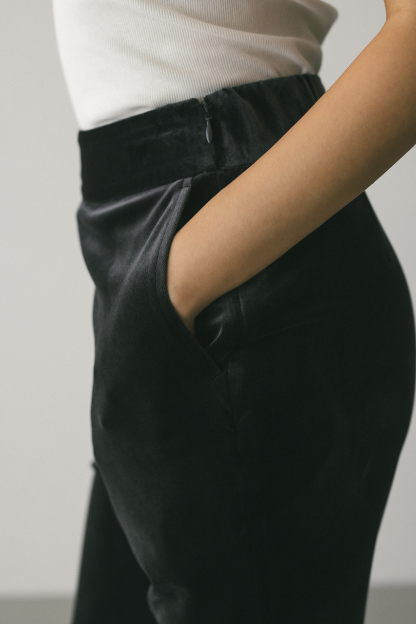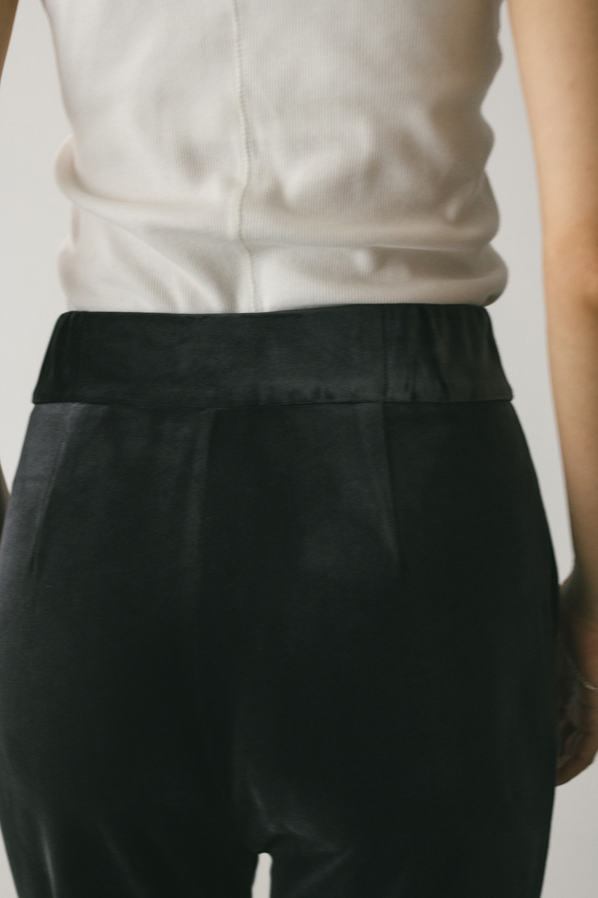 滑らかな肌触りのベロア生地を使用したフレアパンツ。きちんと感のあるセミフレアシルエットで、ベロアでもモードに上品に見せてくれる一枚。上品な光沢感のベロア生地でコーディネートの幅が広がります。ストレッチあり、透け感なし。