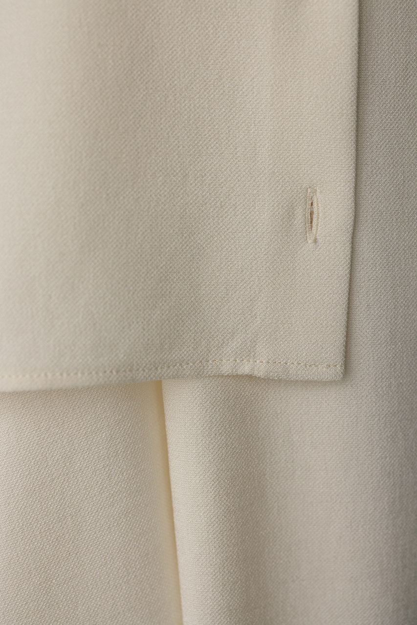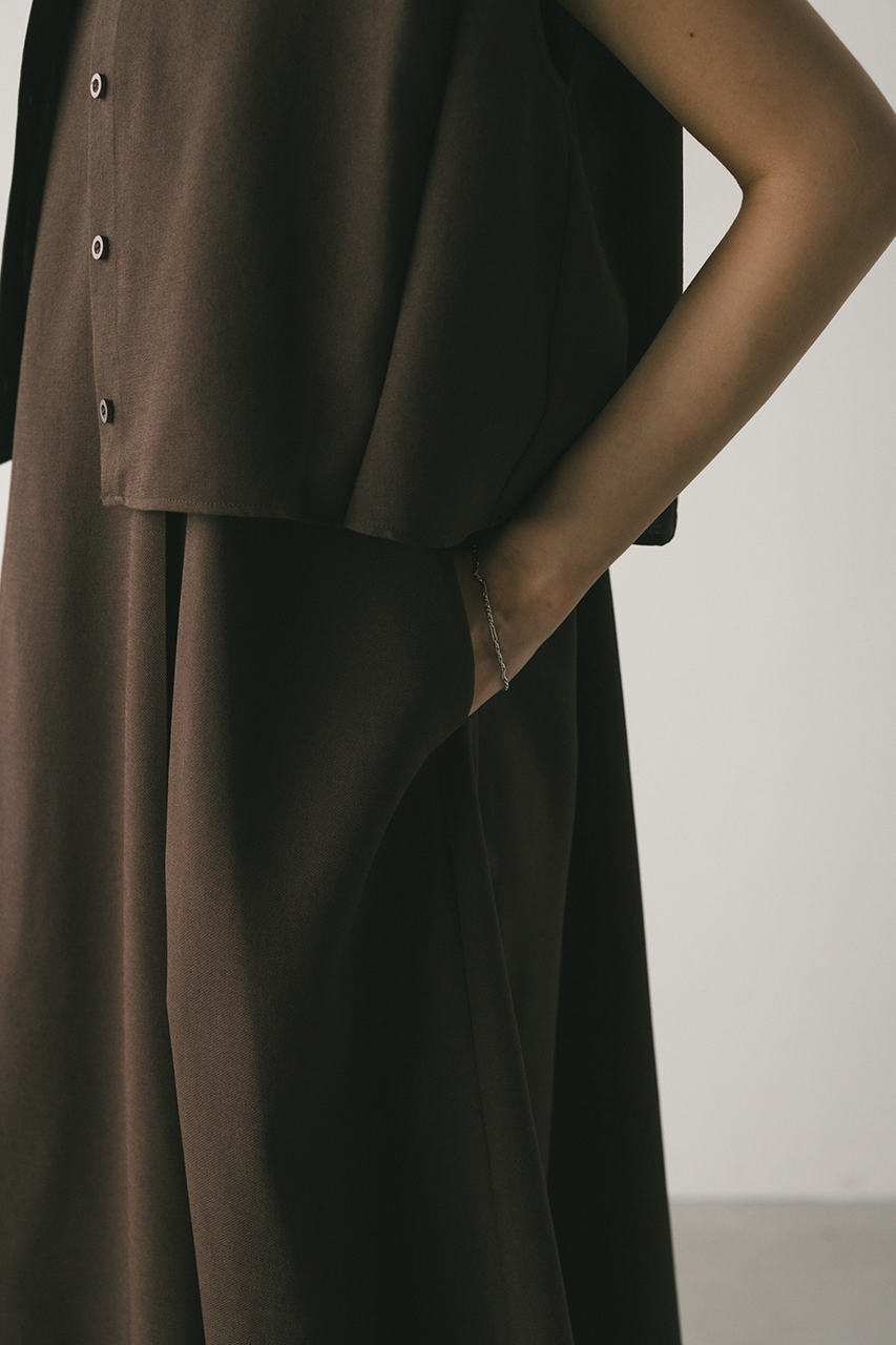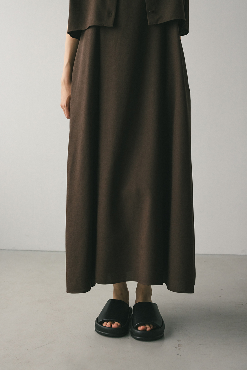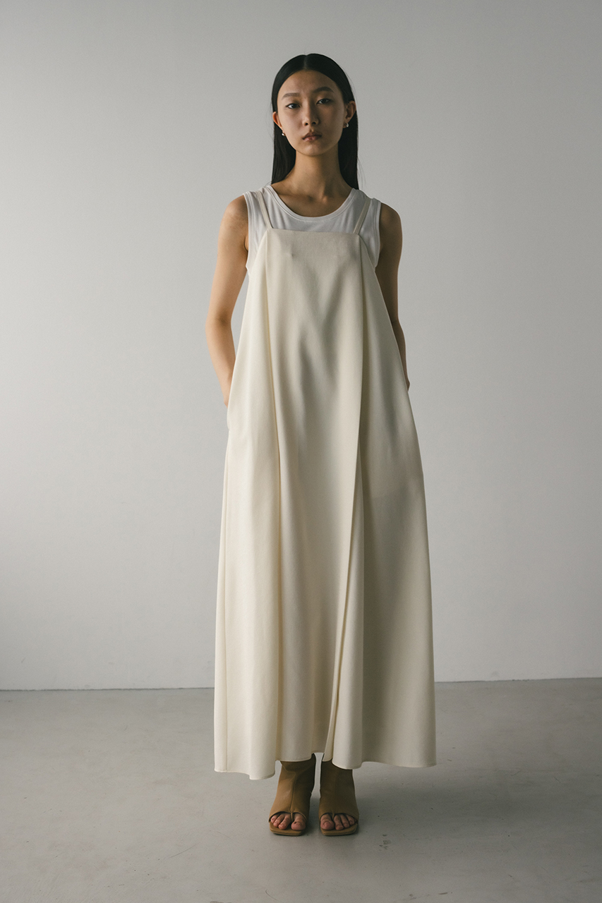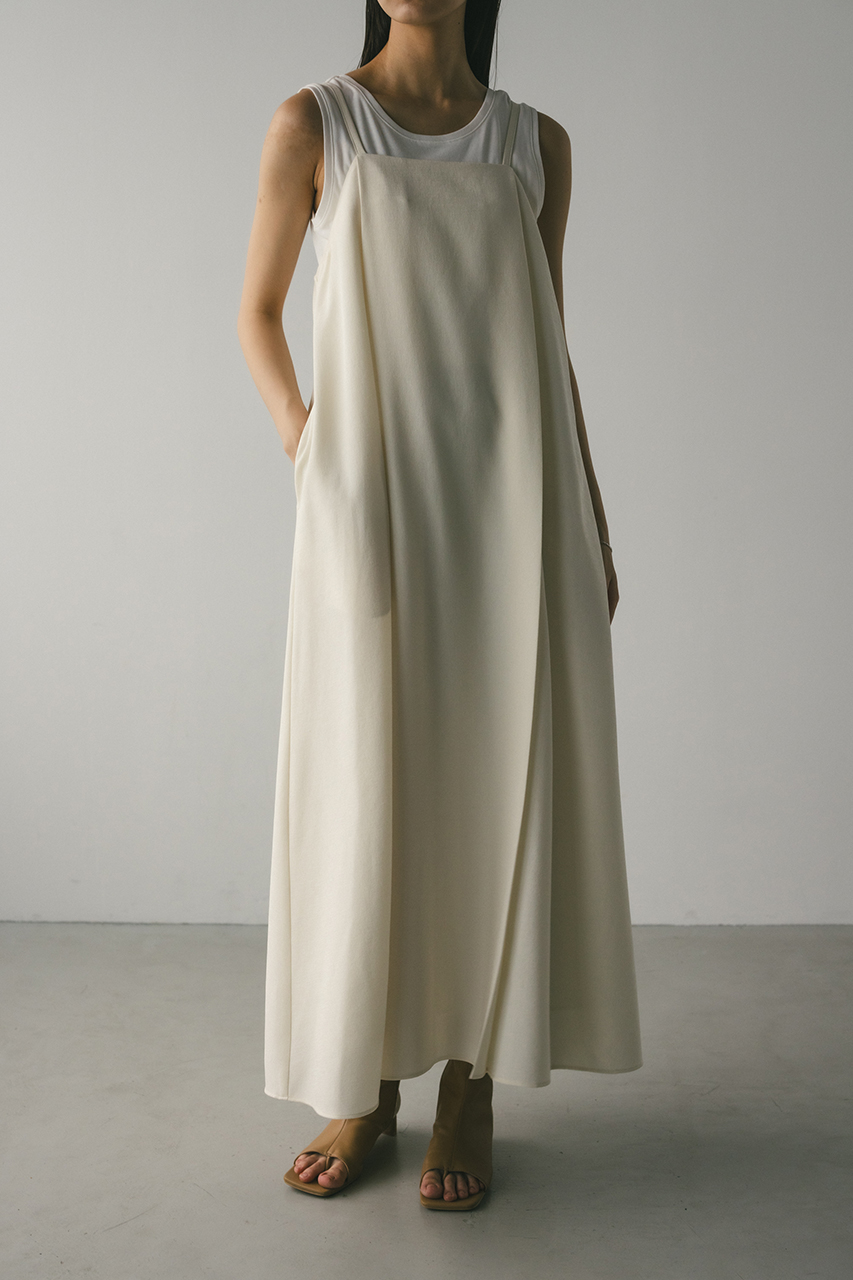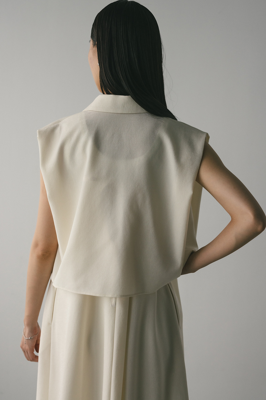 コンパクトなサイズ感のショートシャツとフレアワンピースが着回しの効くセットアイテム。シャツのショルダー部分には深くタックを入れ、二の腕がすっきりと見えるシルエットに仕上げています。フロントに大きくタックを入れたワンピースは、たっぷりと入ったフレアデザインで大人なシルエットに導きます。シンプルなデザインなので別々でも着用頂けます。ストレッチなし、透け感IVOややあり(裏地付き)