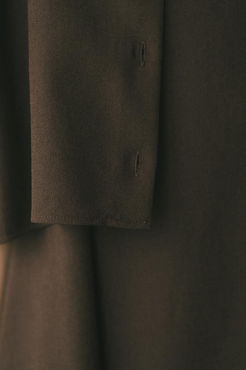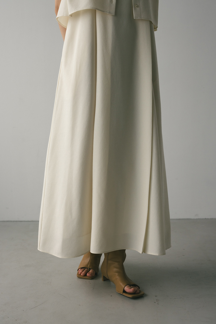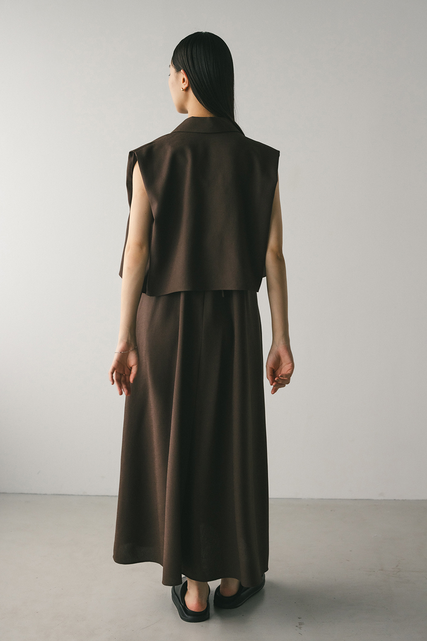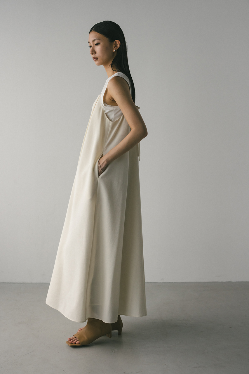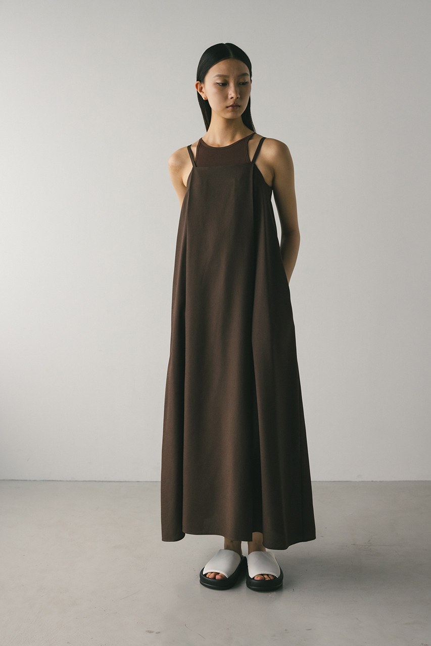 コンパクトなサイズ感のショートシャツとフレアワンピースが着回しの効くセットアイテム。シャツのショルダー部分には深くタックを入れ、二の腕がすっきりと見えるシルエットに仕上げています。フロントに大きくタックを入れたワンピースは、たっぷりと入ったフレアデザインで大人なシルエットに導きます。シンプルなデザインなので別々でも着用頂けます。ストレッチなし、透け感IVOややあり(裏地付き)