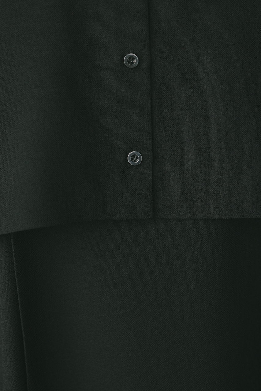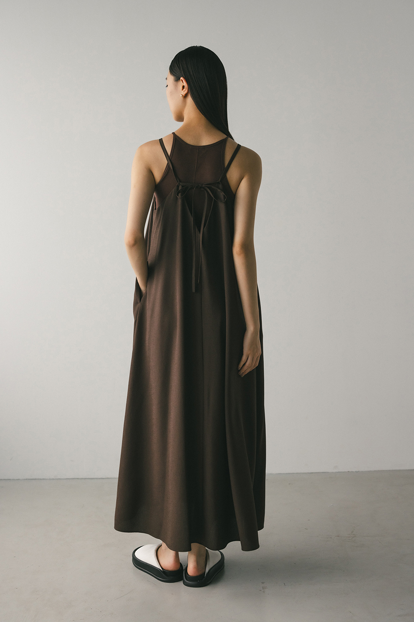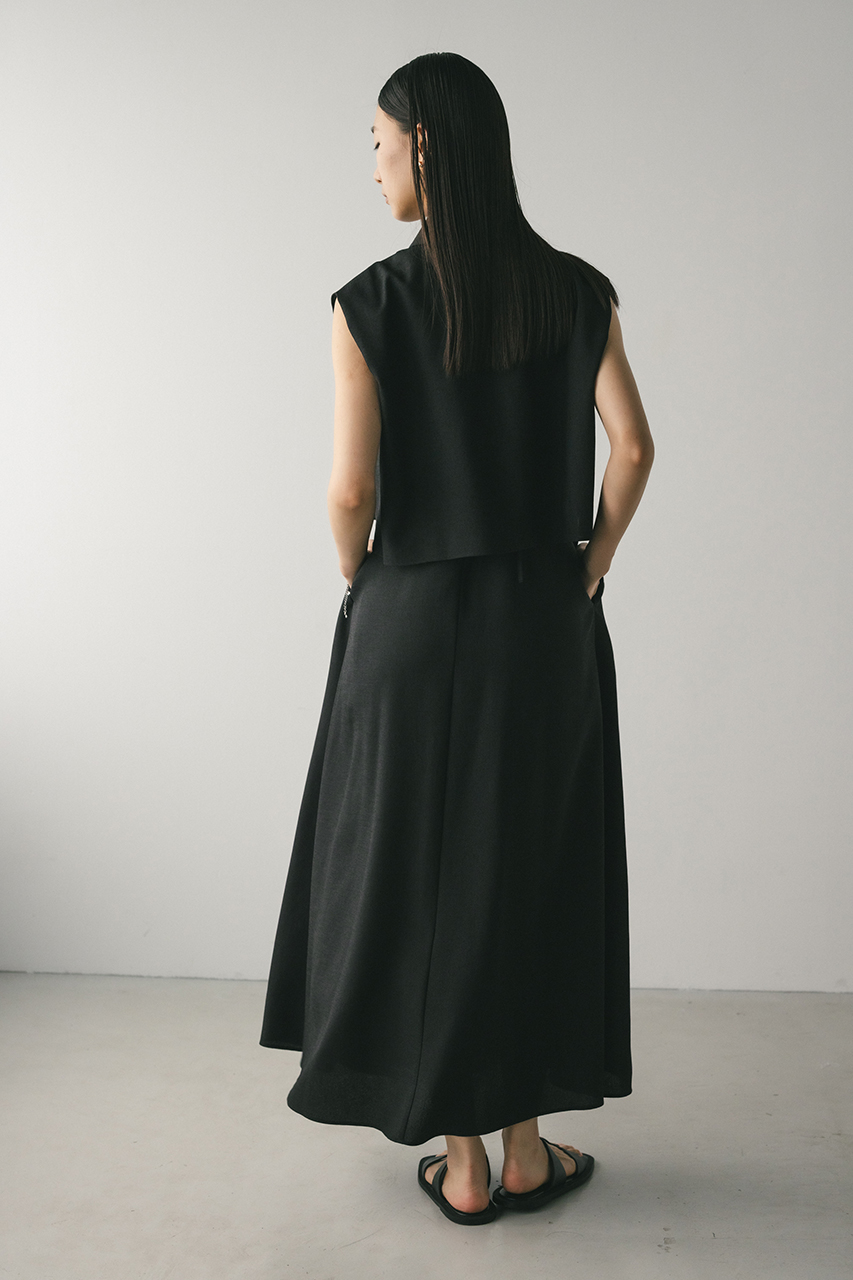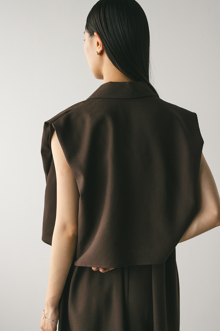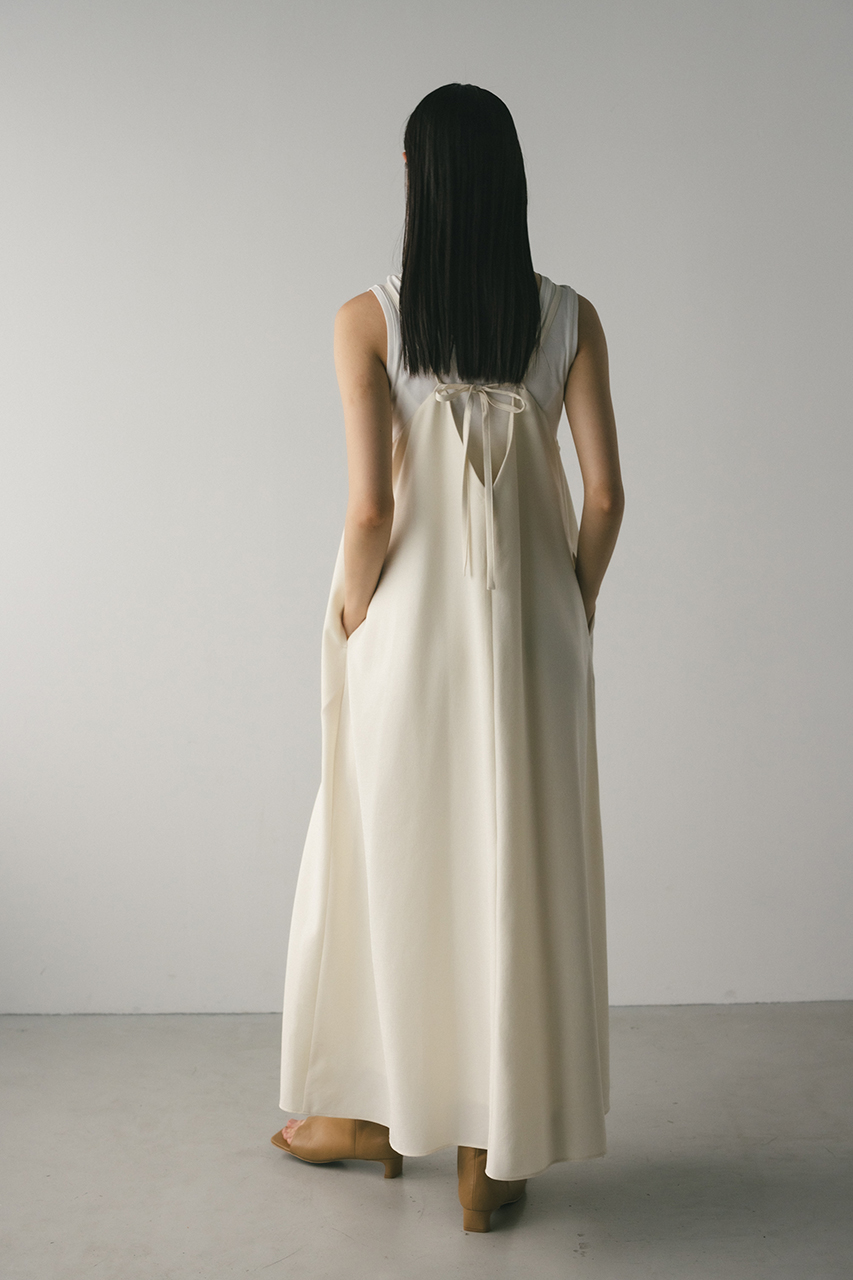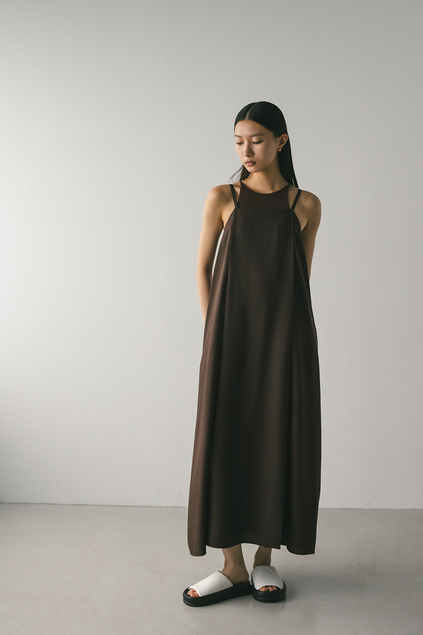 コンパクトなサイズ感のショートシャツとフレアワンピースが着回しの効くセットアイテム。シャツのショルダー部分には深くタックを入れ、二の腕がすっきりと見えるシルエットに仕上げています。フロントに大きくタックを入れたワンピースは、たっぷりと入ったフレアデザインで大人なシルエットに導きます。シンプルなデザインなので別々でも着用頂けます。ストレッチなし、透け感IVOややあり(裏地付き)