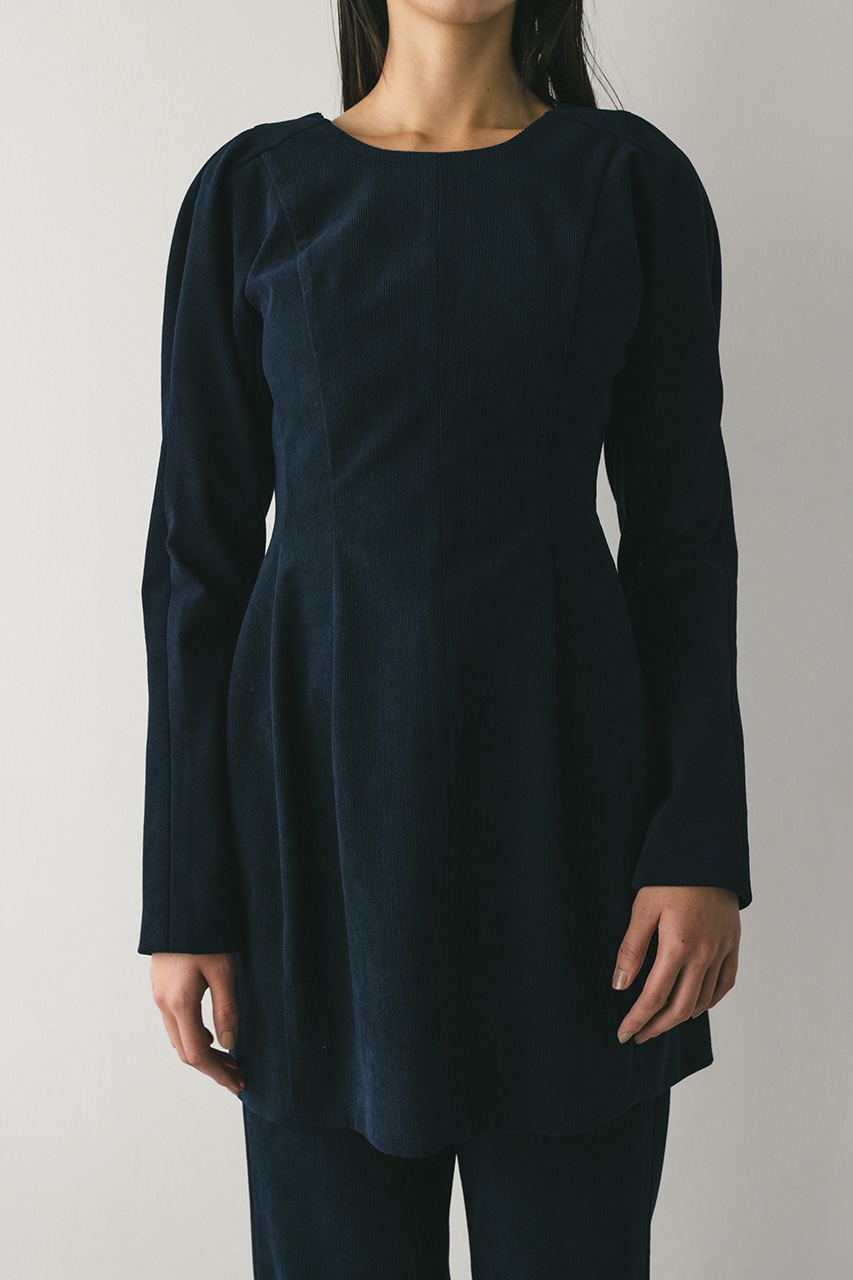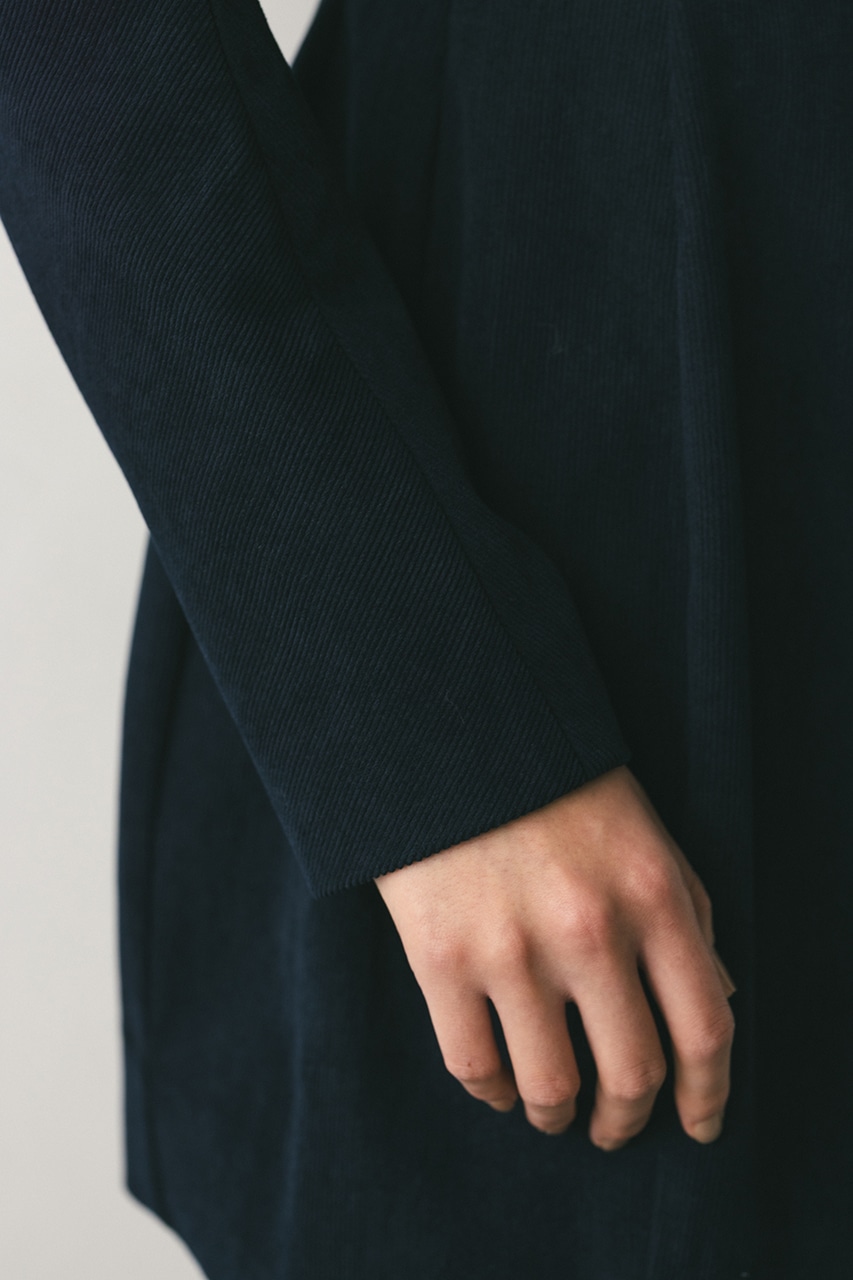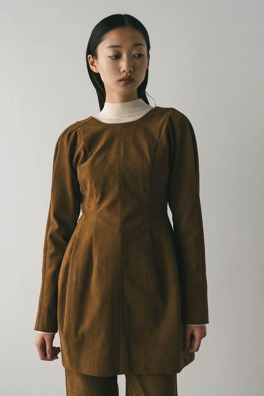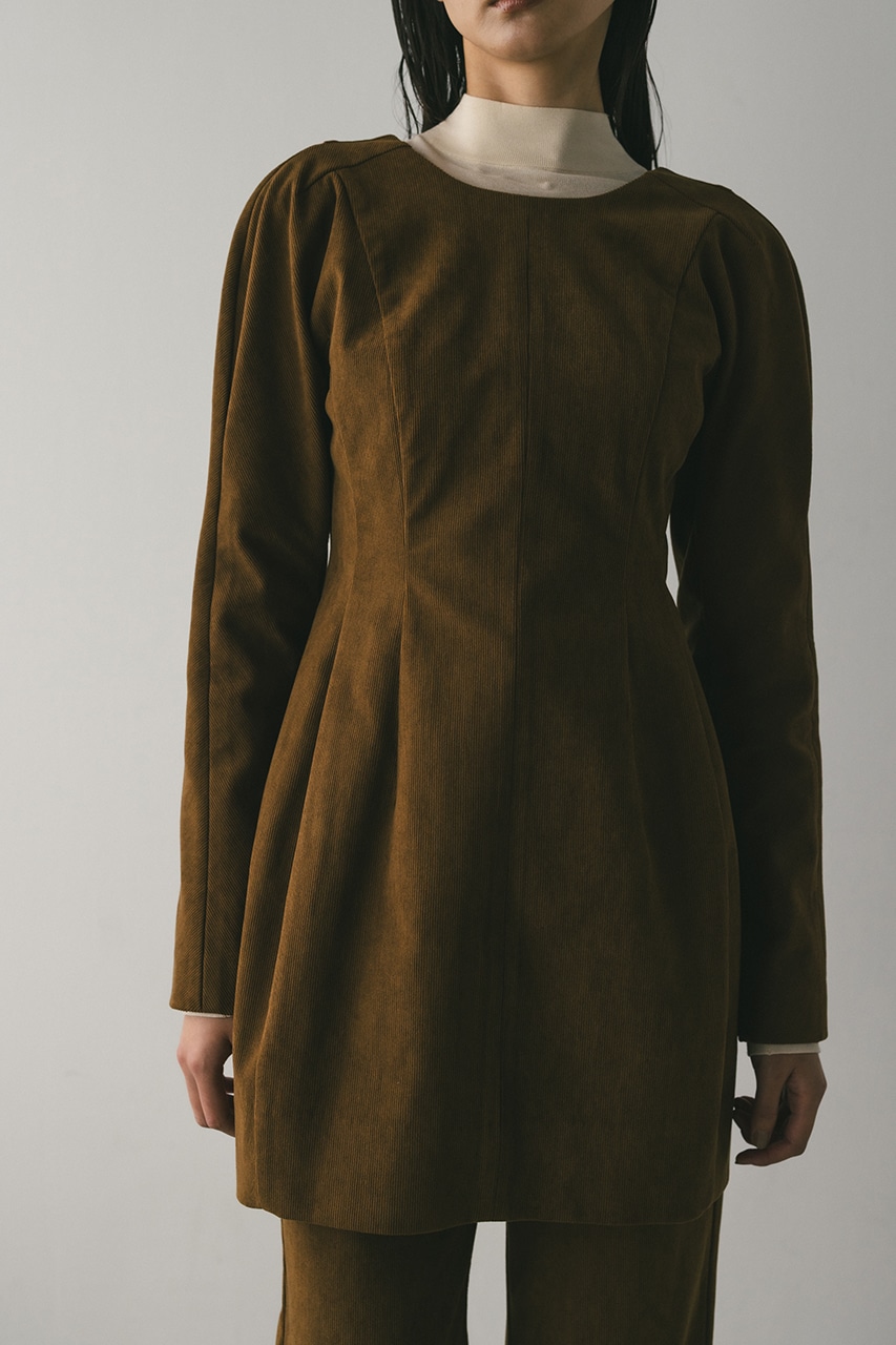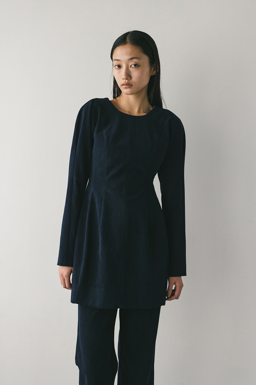やわらかい肌触り、独特の光沢感と畝のある見た目がモードなコーデュロイミニワンピース。ウエストをしっかりとシェイプし、ウエスト位置をやや上するに設定することでスタイルアップに導きます。アームのパネルをあえてなくし、袖上にタックと細身の袖で独特のカーブスリーブが腕周りをしなやかなに見せてくれます。500IAT31-2391(コーデュロイセミフレアパンツ)とセットアップ着用可能。ストレッチあり、透け感なし。