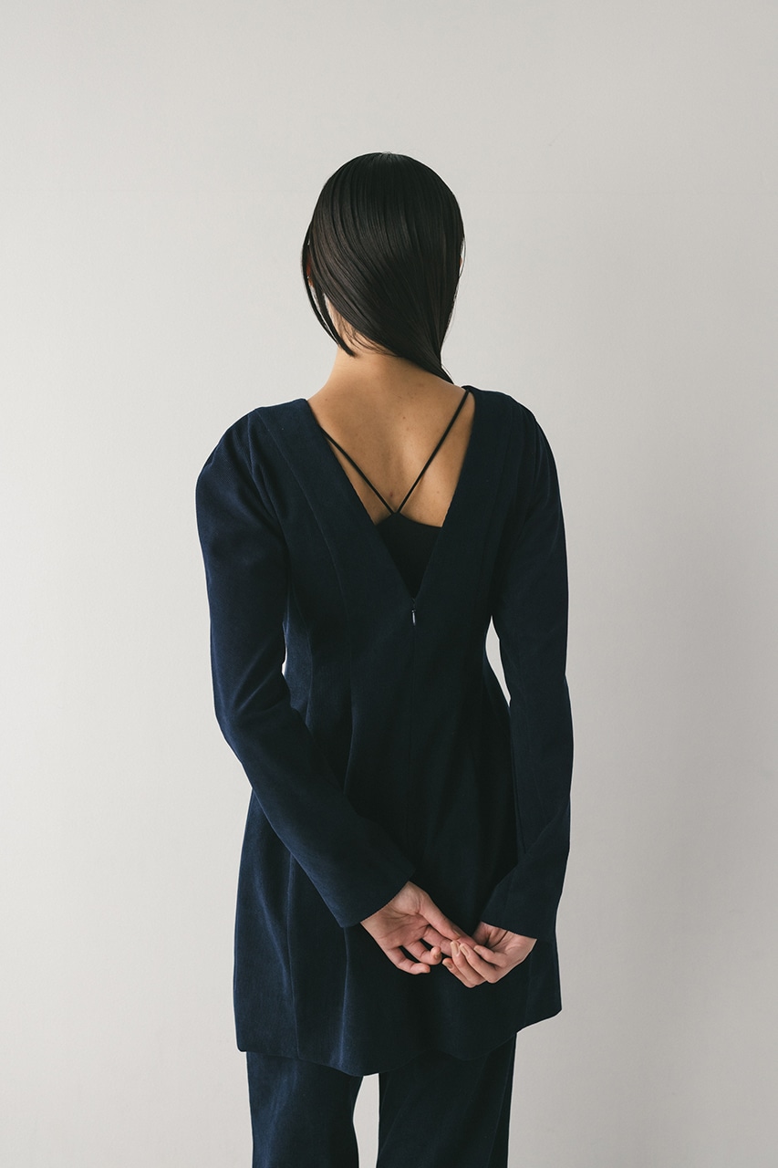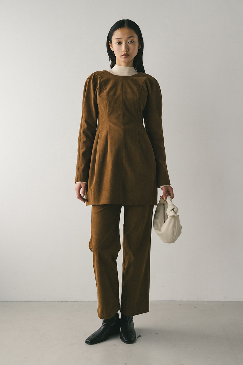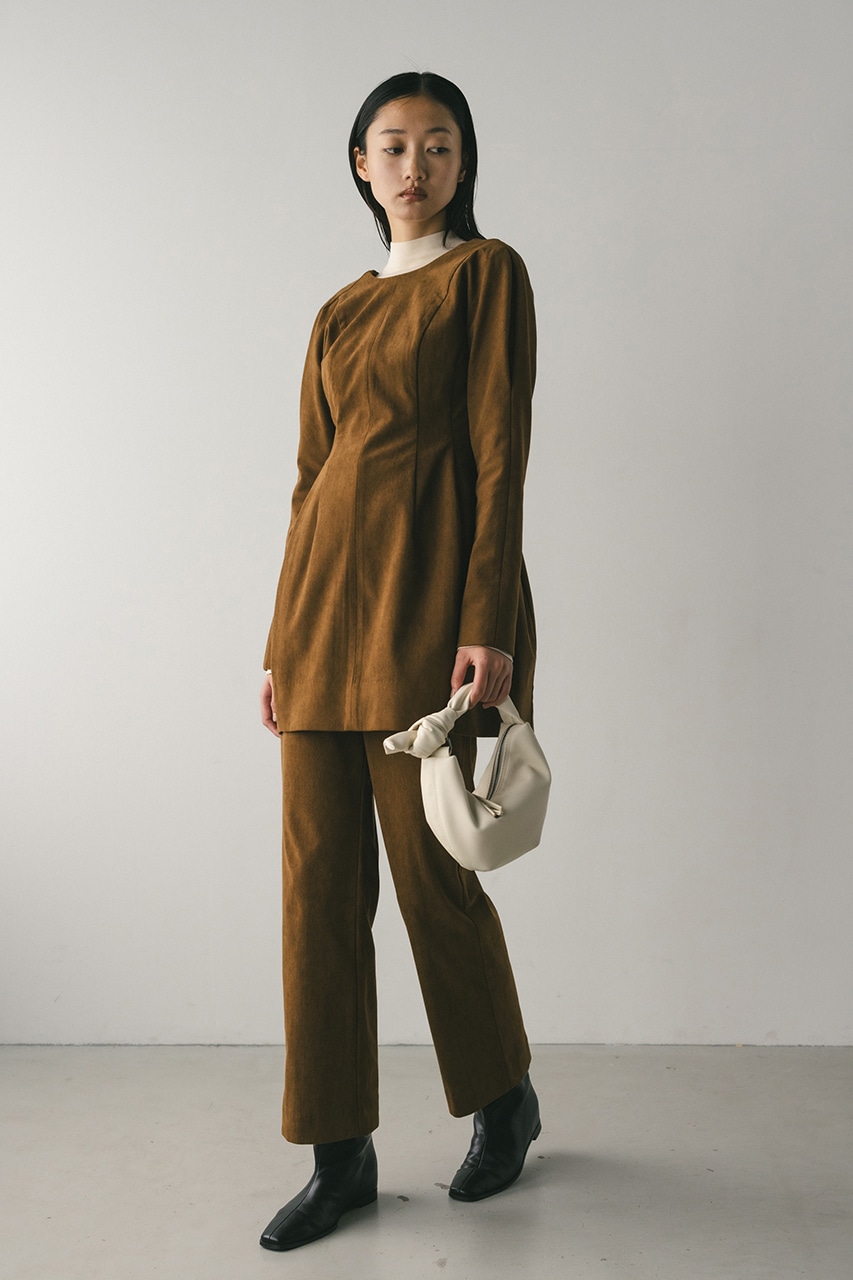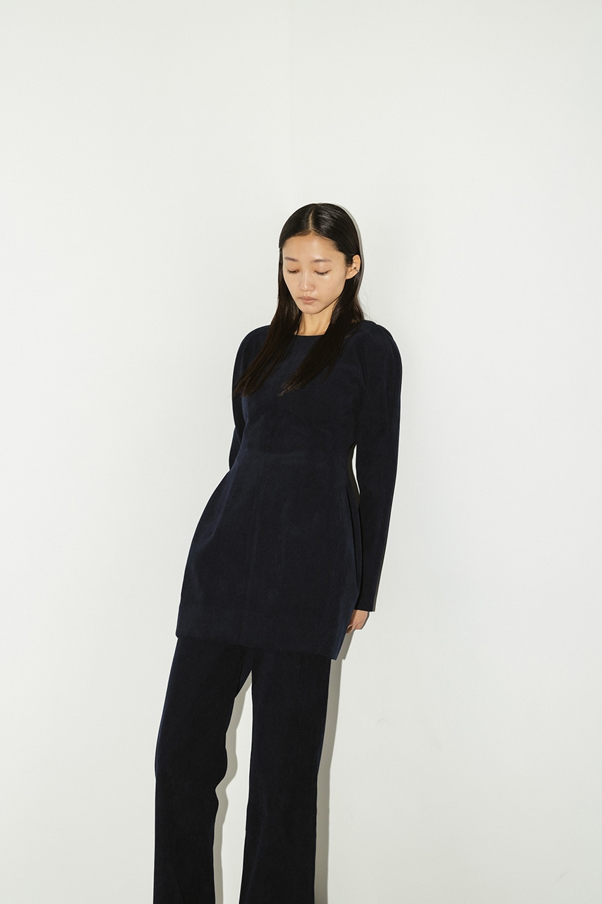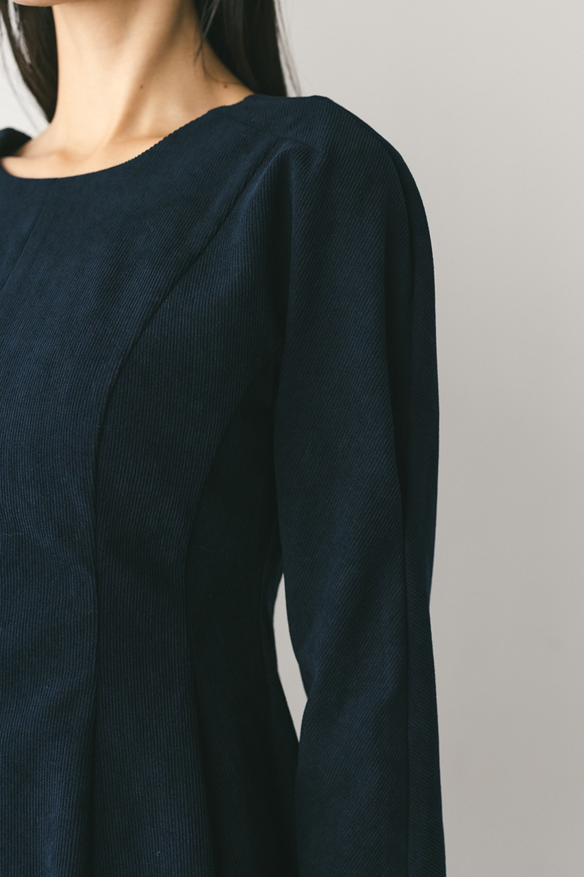 やわらかい肌触り、独特の光沢感と畝のある見た目がモードなコーデュロイミニワンピース。ウエストをしっかりとシェイプし、ウエスト位置をやや上するに設定することでスタイルアップに導きます。アームのパネルをあえてなくし、袖上にタックと細身の袖で独特のカーブスリーブが腕周りをしなやかなに見せてくれます。500IAT31-2391(コーデュロイセミフレアパンツ)とセットアップ着用可能。ストレッチあり、透け感なし。