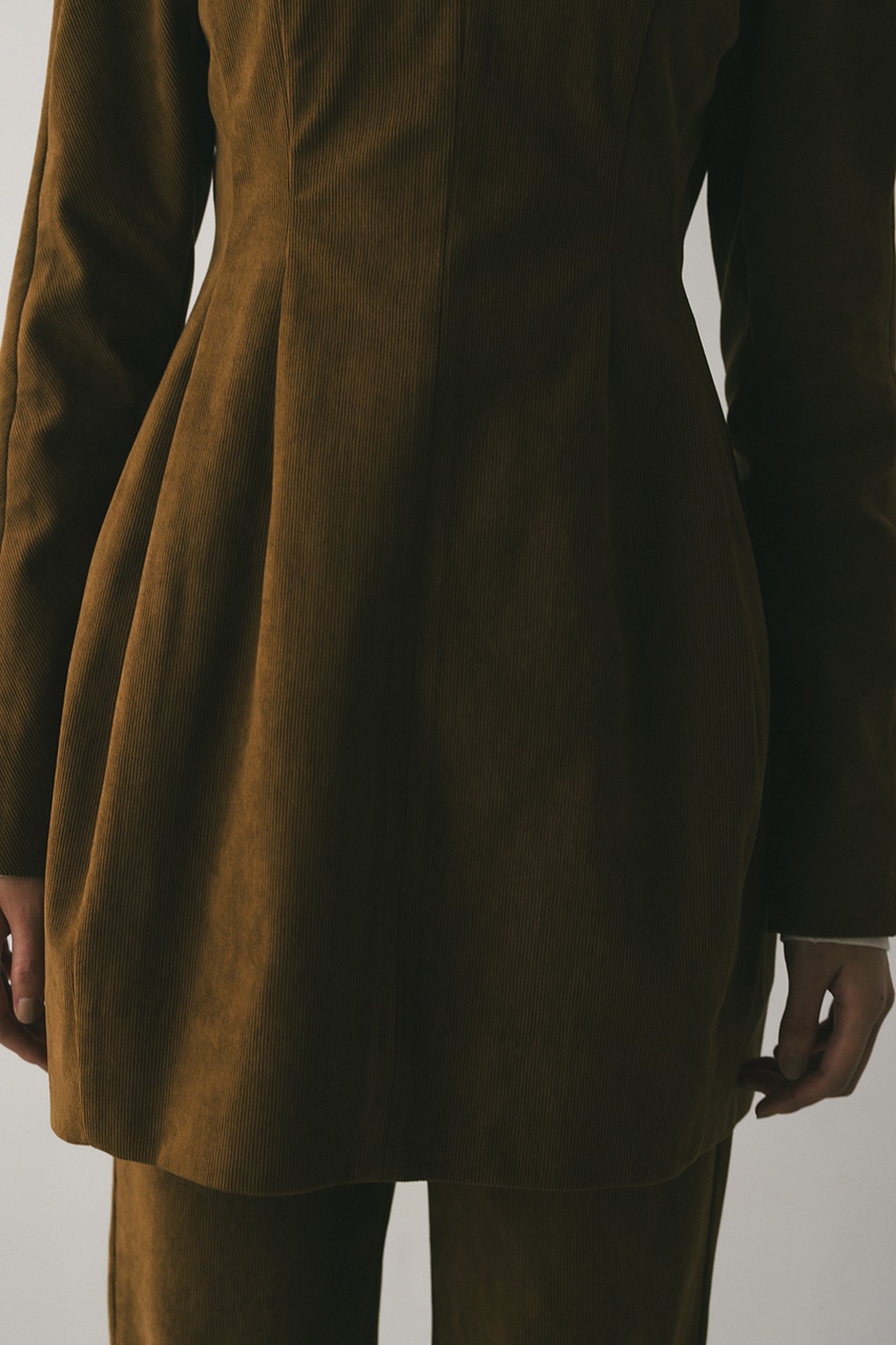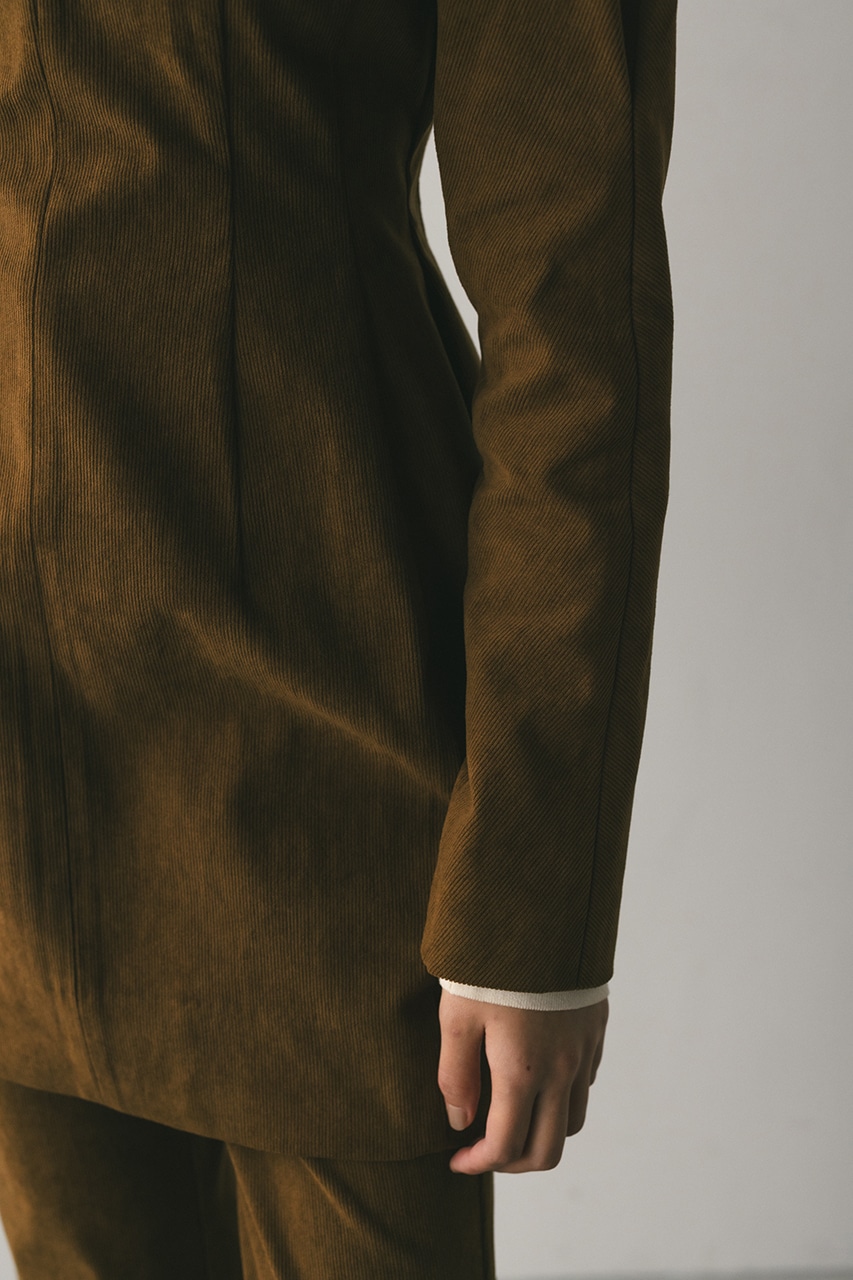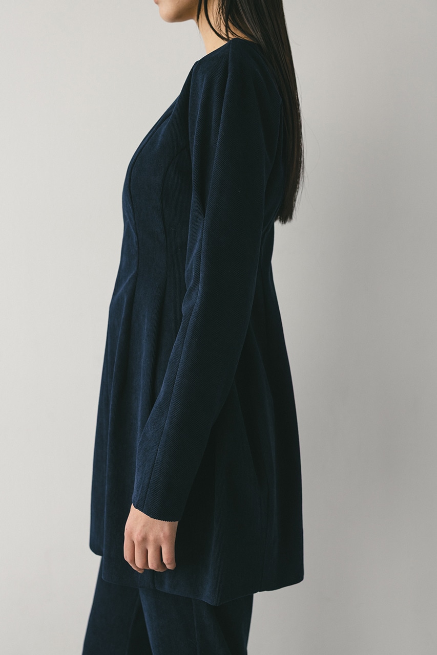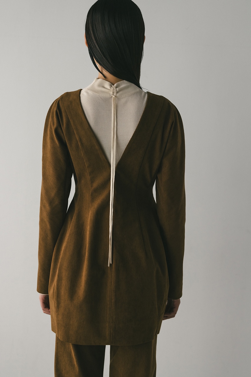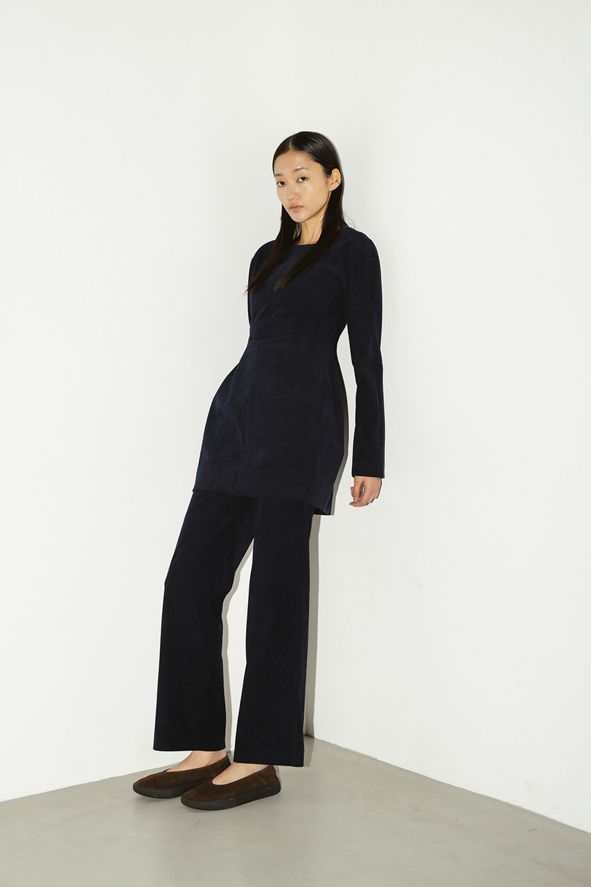 やわらかい肌触り、独特の光沢感と畝のある見た目がモードなコーデュロイミニワンピース。ウエストをしっかりとシェイプし、ウエスト位置をやや上するに設定することでスタイルアップに導きます。アームのパネルをあえてなくし、袖上にタックと細身の袖で独特のカーブスリーブが腕周りをしなやかなに見せてくれます。500IAT31-2391(コーデュロイセミフレアパンツ)とセットアップ着用可能。ストレッチあり、透け感なし。