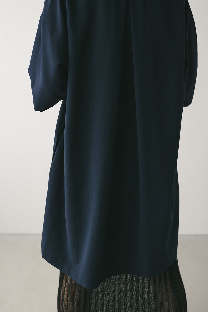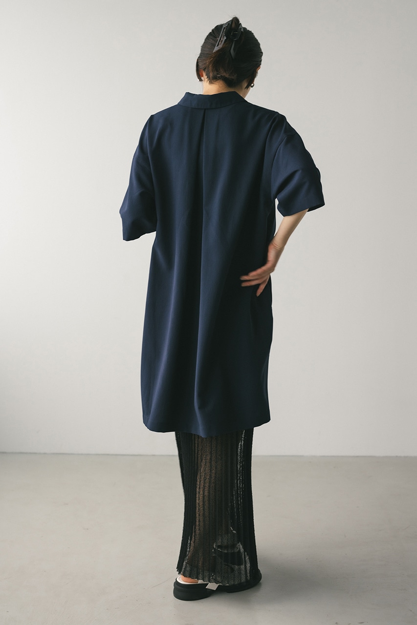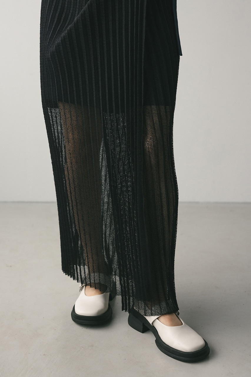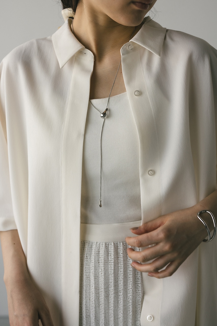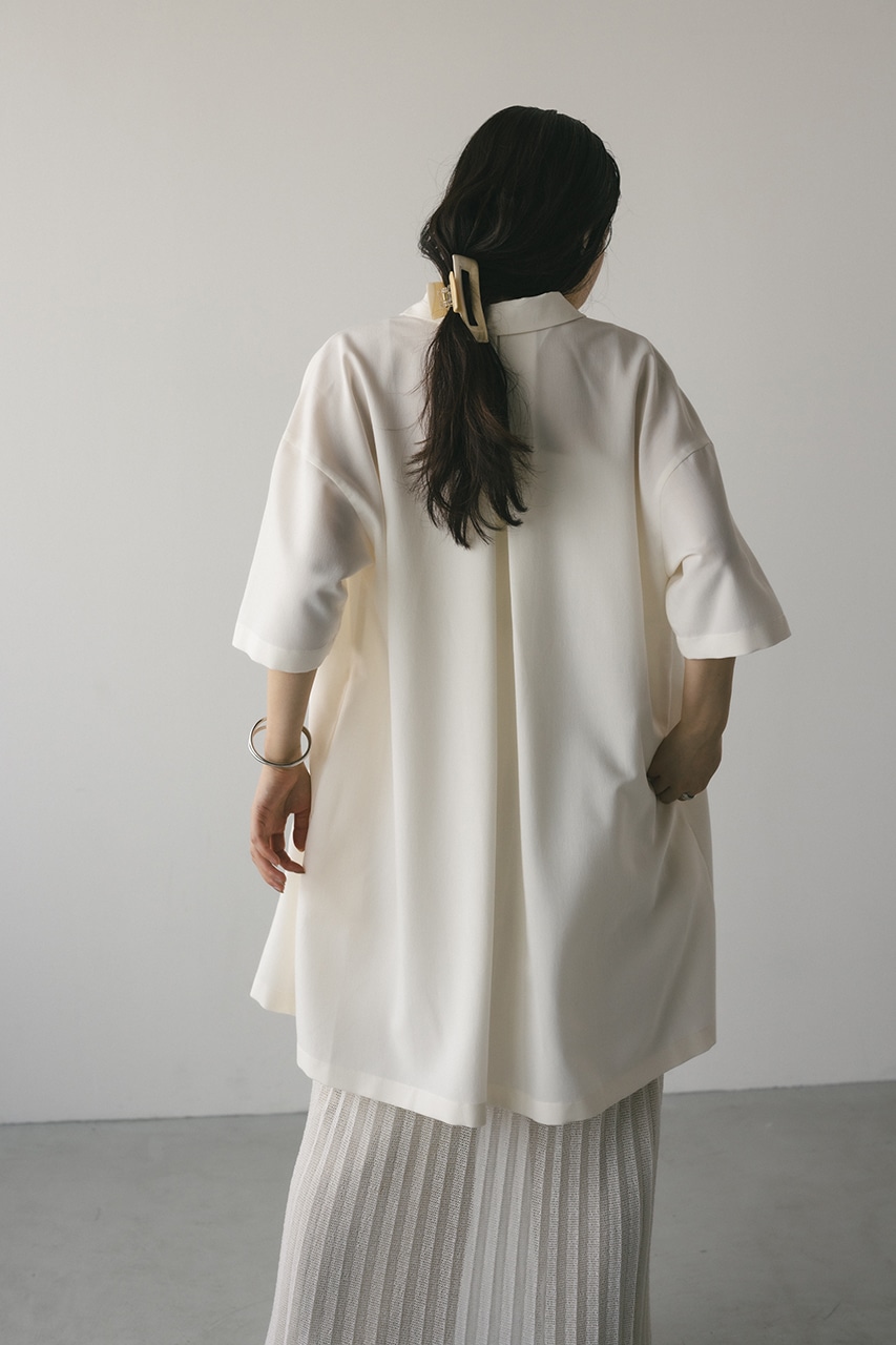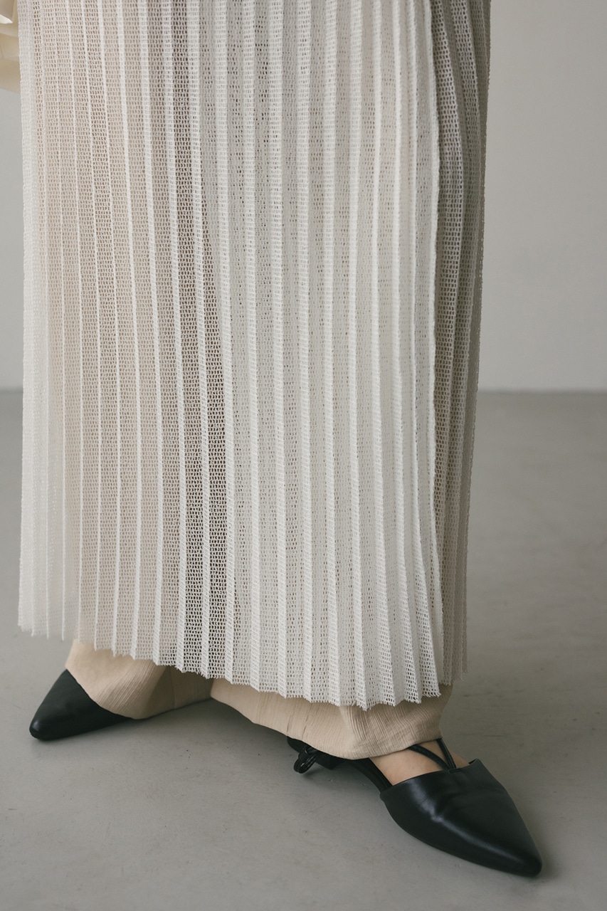 着回し力抜群のハーフスリーブのルーズシャツと格子柄のメッシュレースにプリーツ加工を施したラッププリーツスカートのセットアイテム。脇パネルを前にふったシャツはサイドからでもきれいに見せてくれるシルエットがポイント。ストレッチあり(シャツ)ストレッチなし(スカート)、透け感ややあり(シャツ)/透け感あり(スカート)