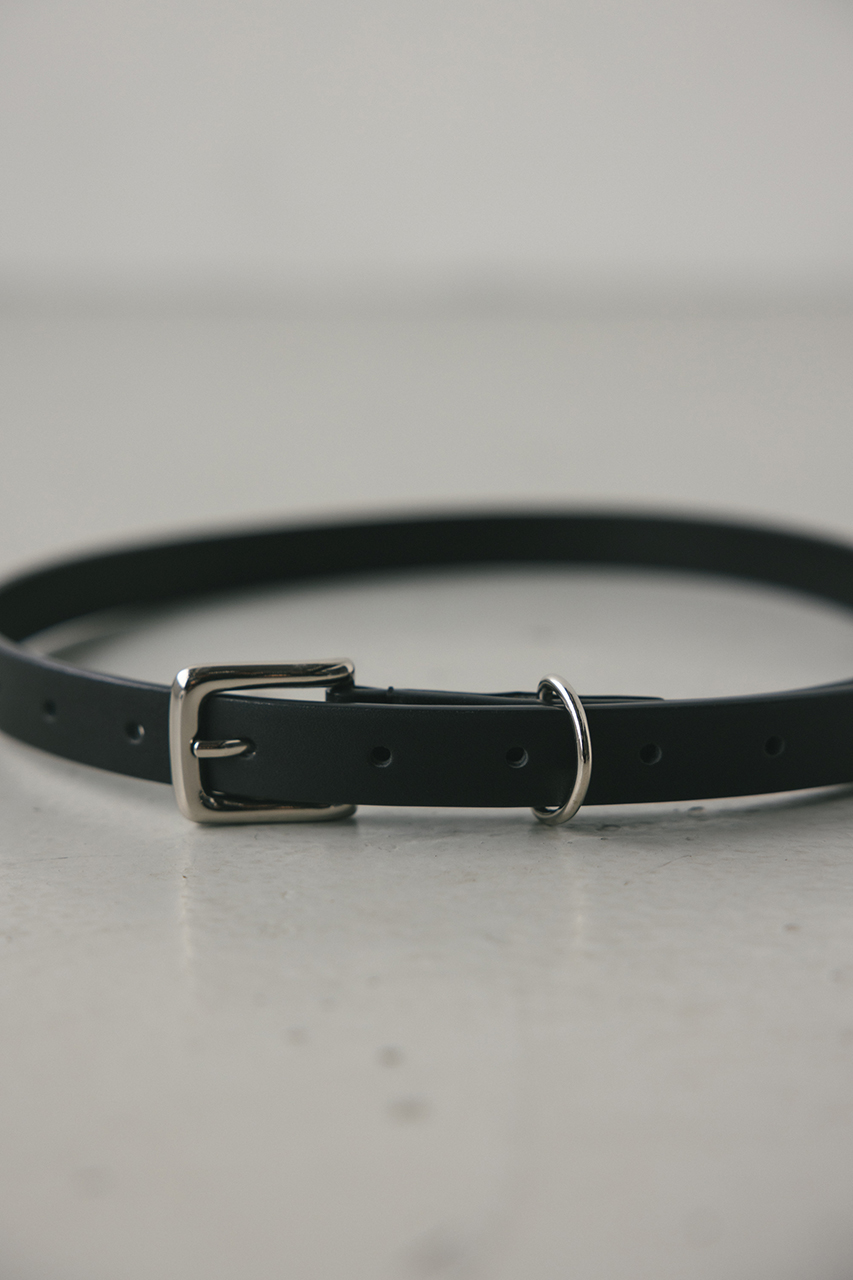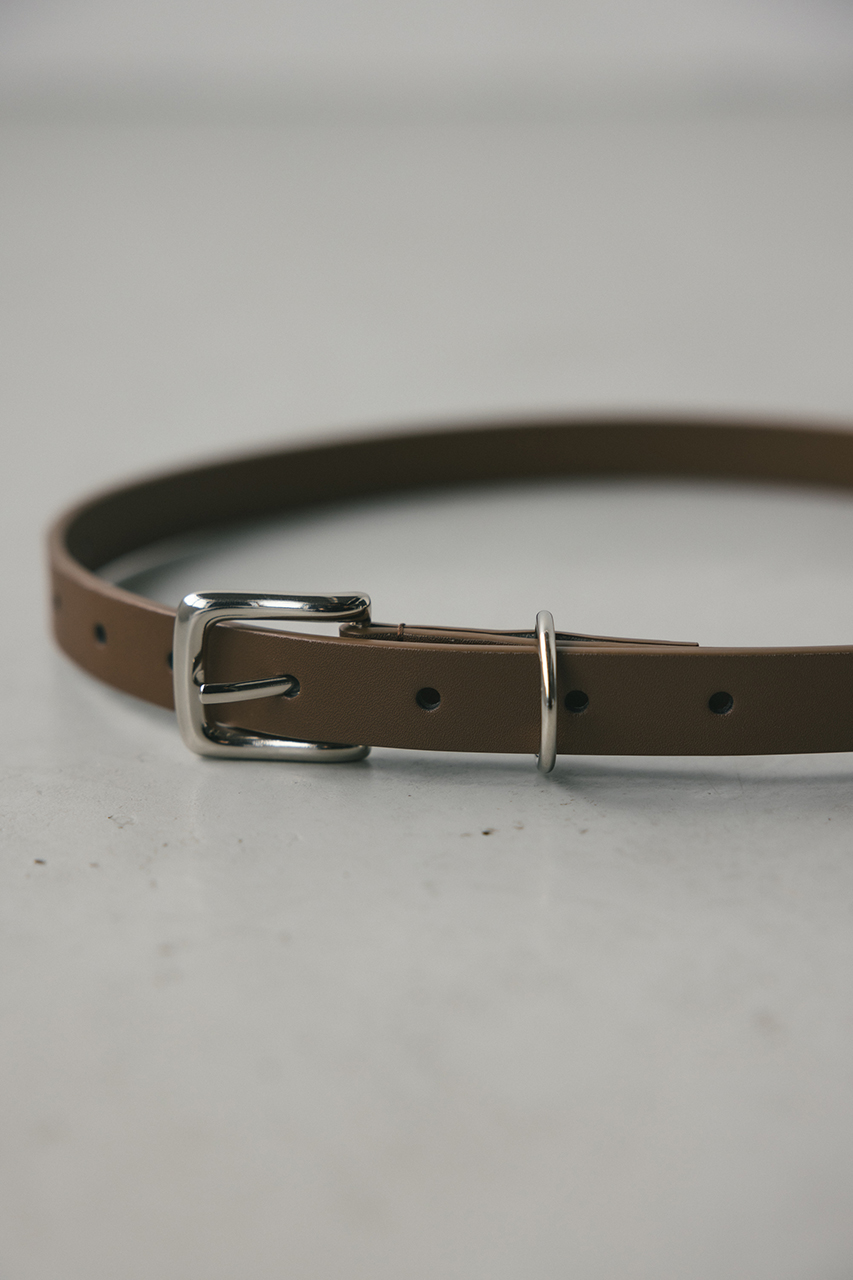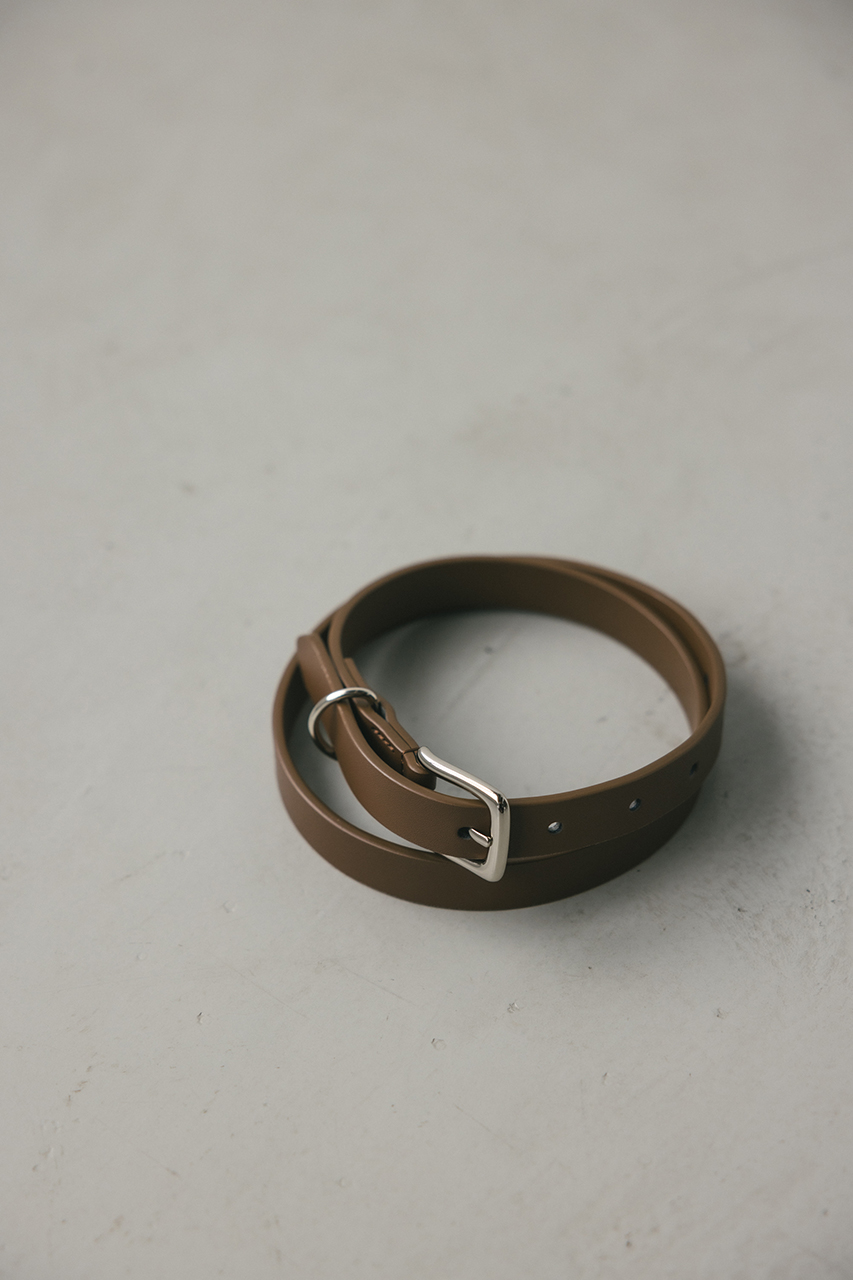 柔らかい床革を使用した細めのレザーナローベルト。パンツはもちろん、ワンピースの上から魅せるベルトとしてスタイリングするのもおすすめです。