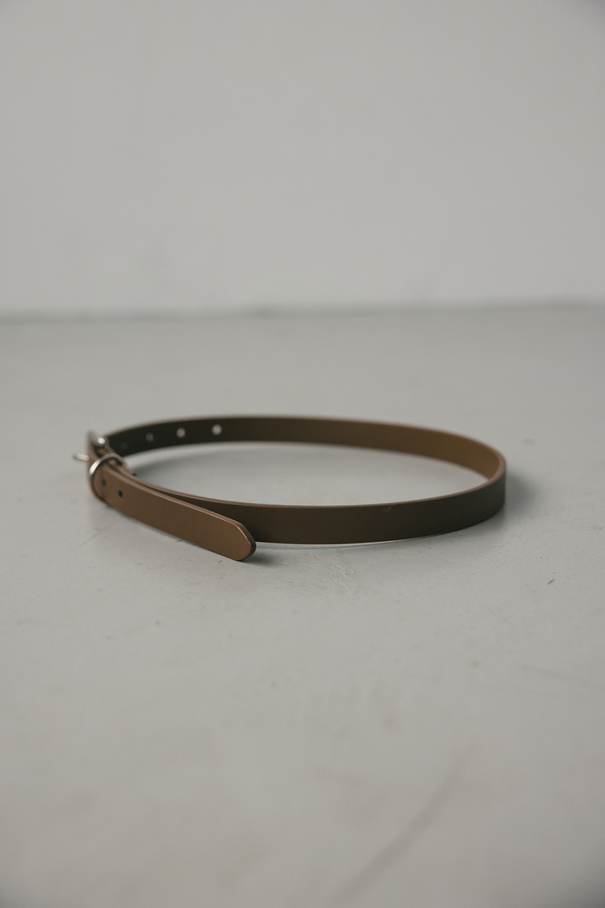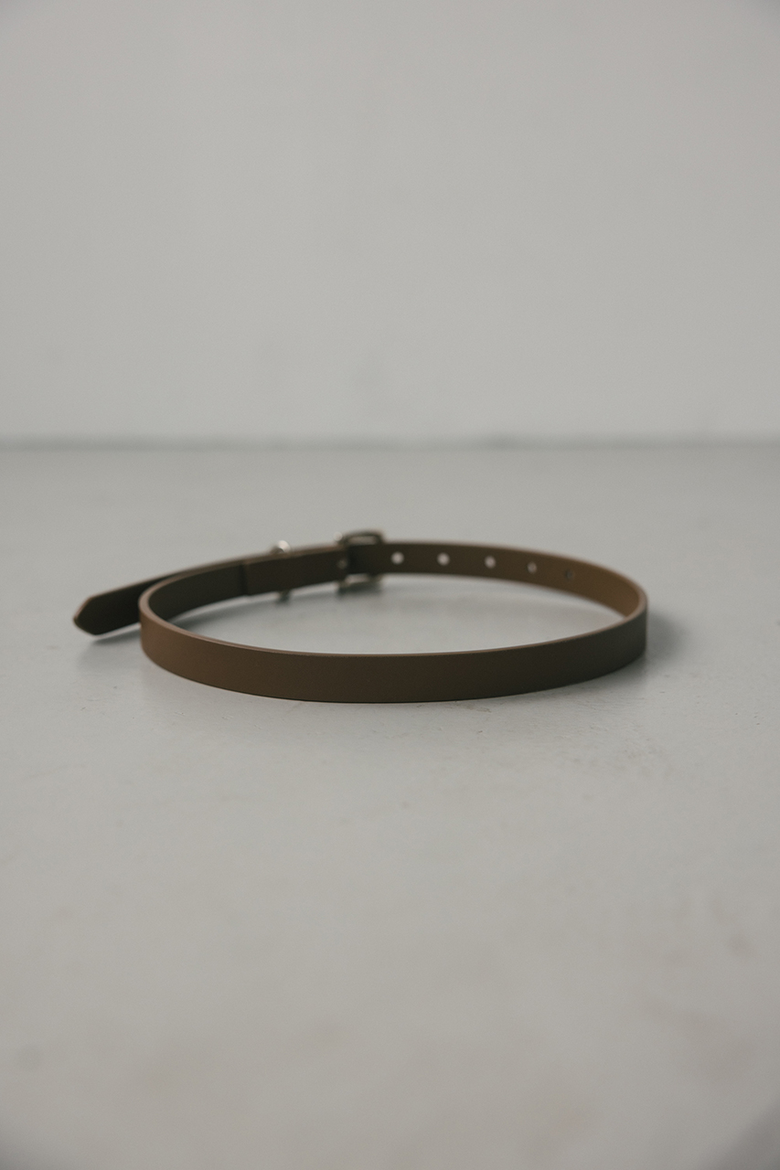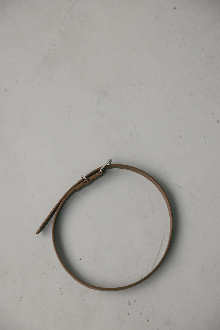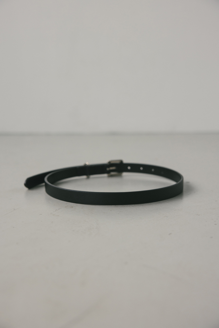 柔らかい床革を使用した細めのレザーナローベルト。パンツはもちろん、ワンピースの上から魅せるベルトとしてスタイリングするのもおすすめです。