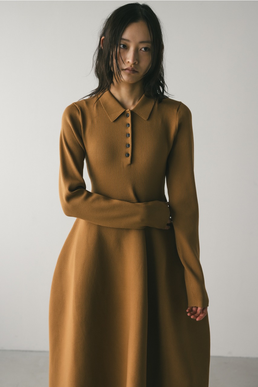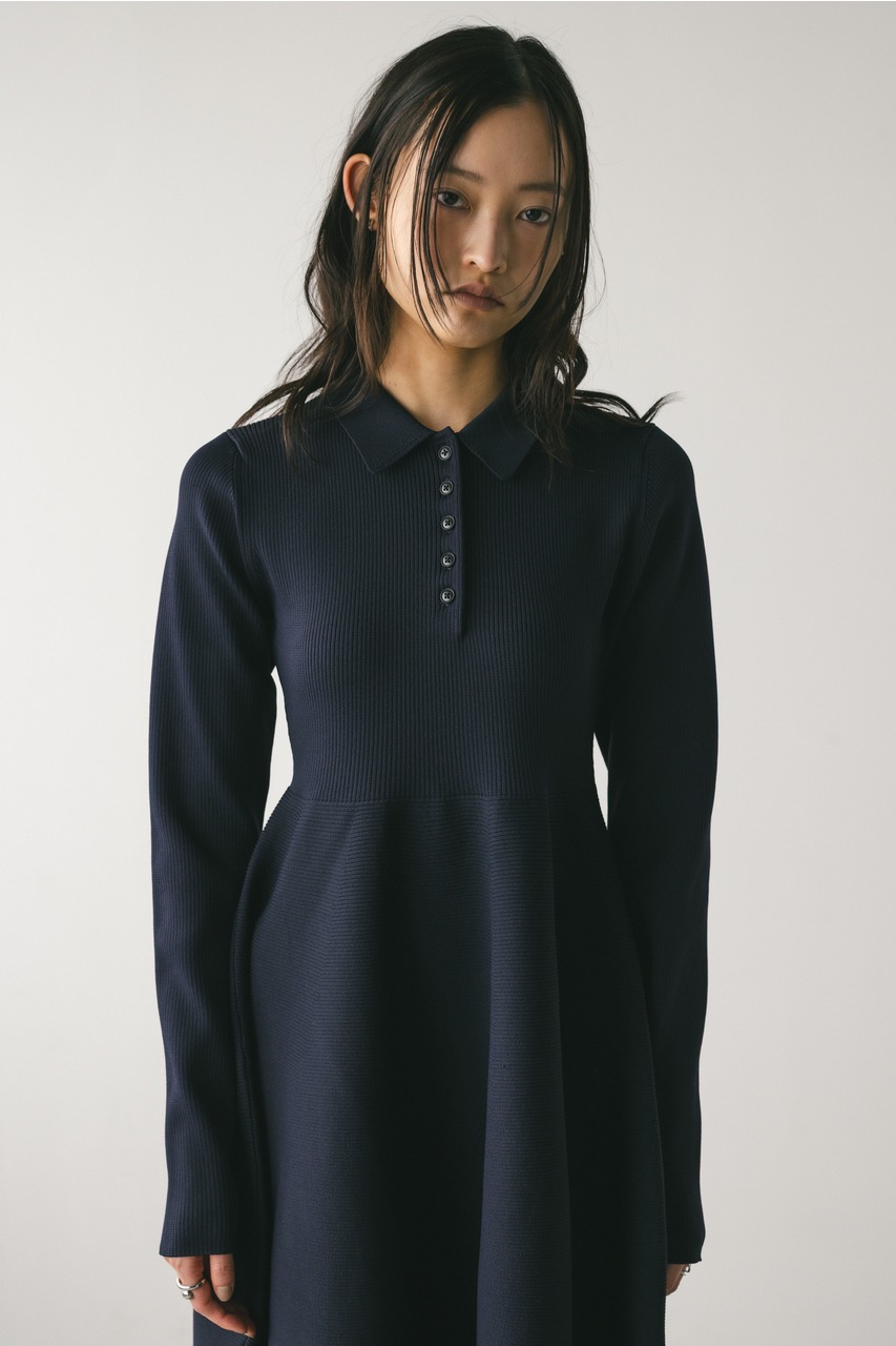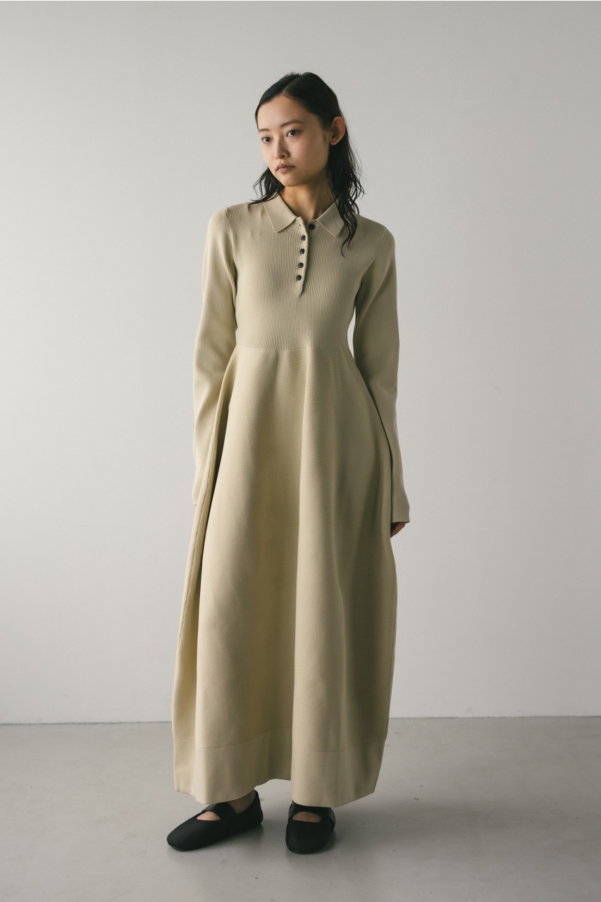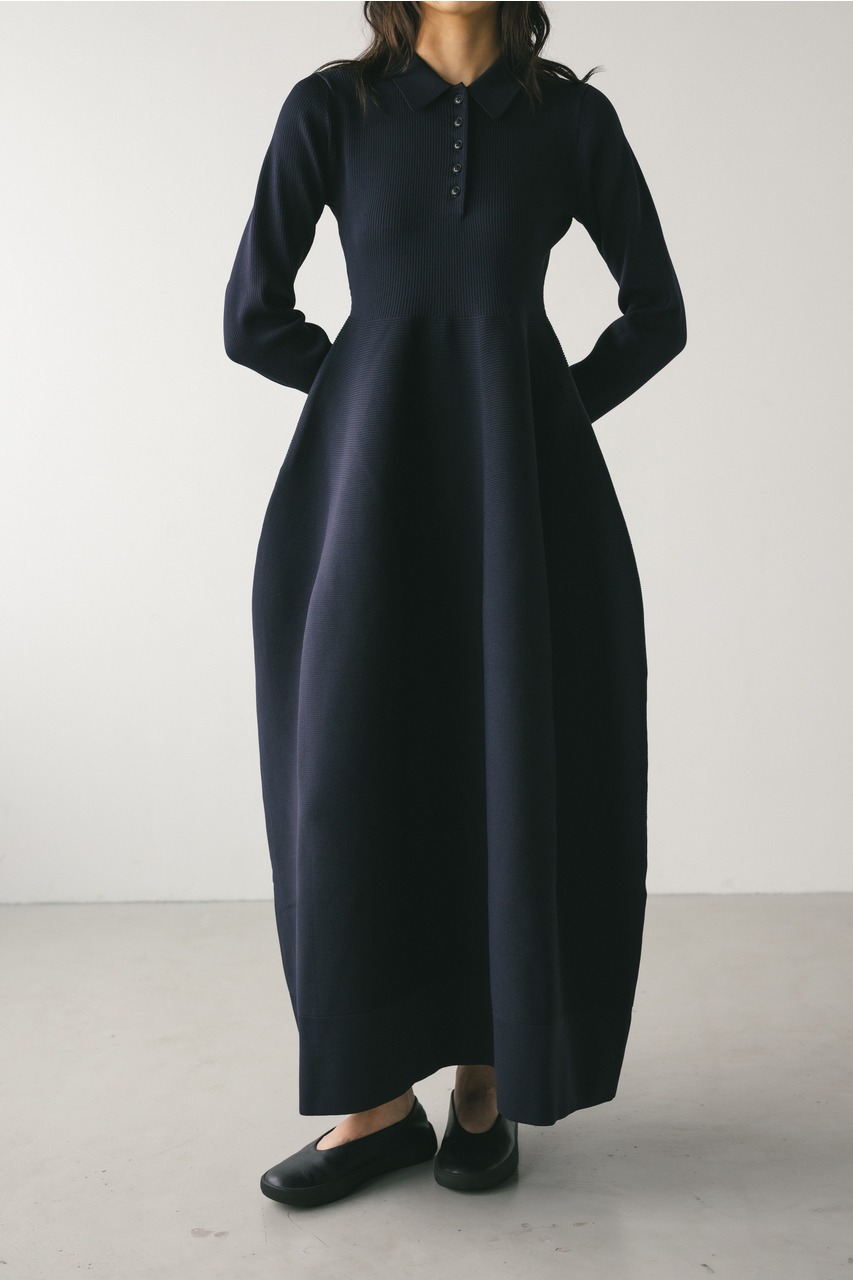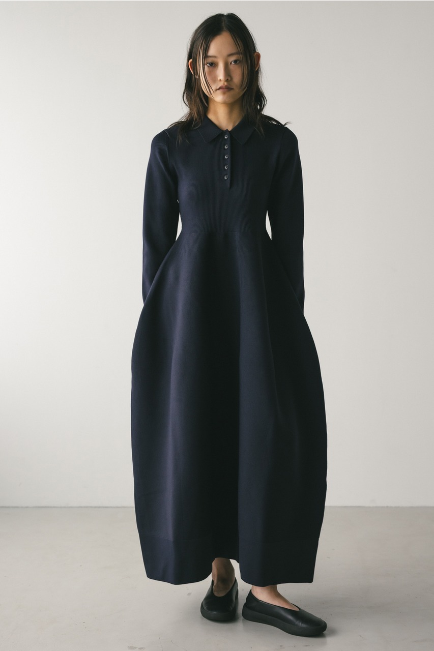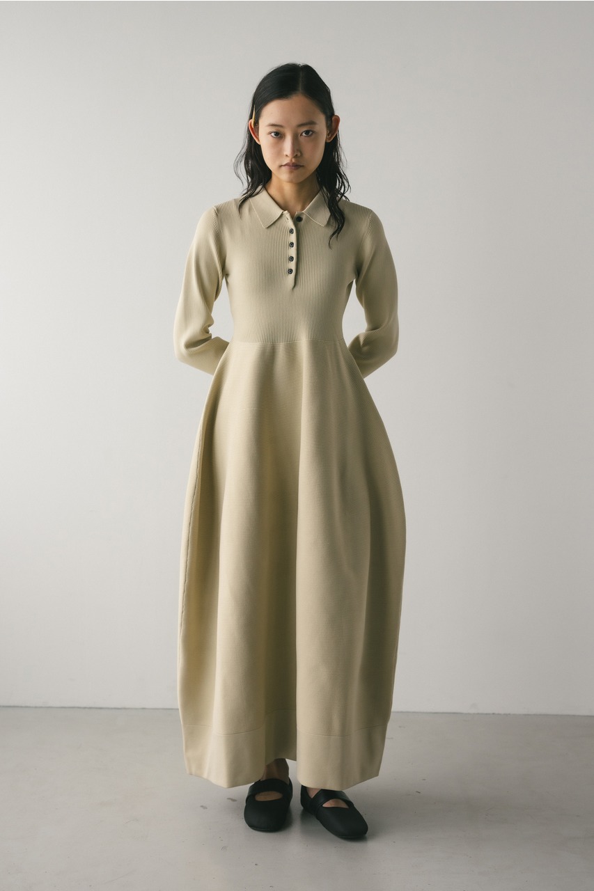モデル身長173cm(Mサイズ着用) 丸いフォルム感のあるシルエットと配色ボタンがポイントのポロニットワンピース。あえて長めにした袖と後ろパネルにしたショルダーデザインが肩回りをすっきりと見せてくれます。ストレッチの効いたしっかりとした厚みのある糸を使用しているので、シワになりにくく、毛玉にもなりにくいのがうれしいポイント。ストレッチあり、透け感なし。 【お手入れ方法】ドライクリーニング