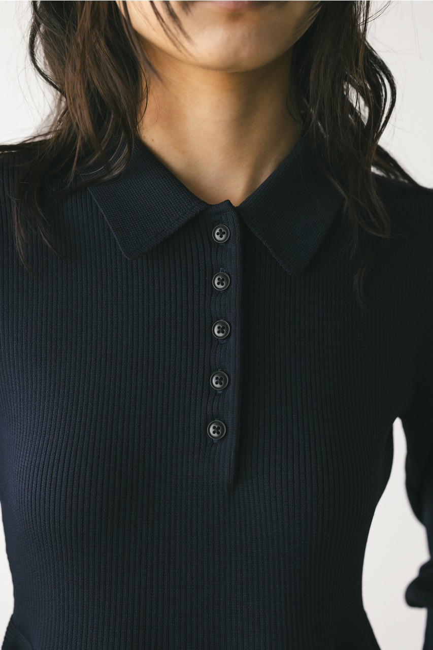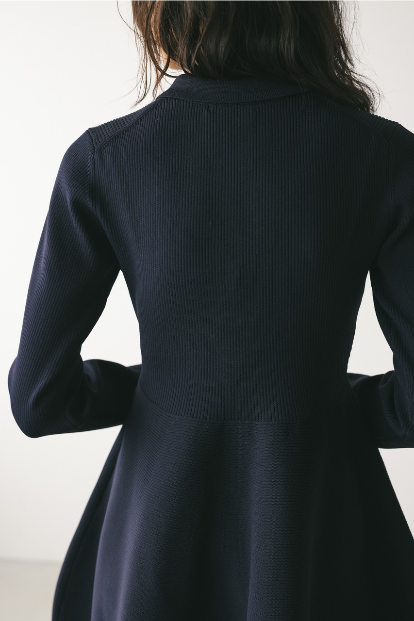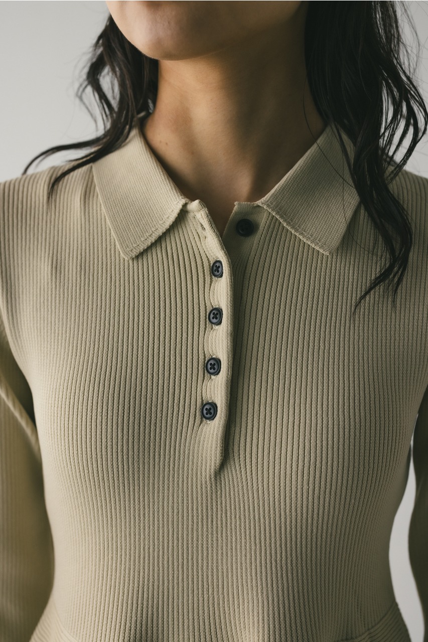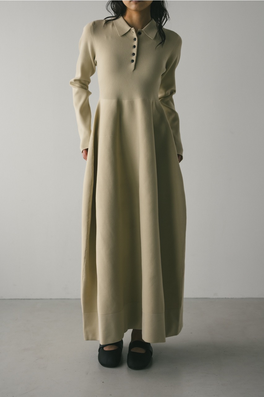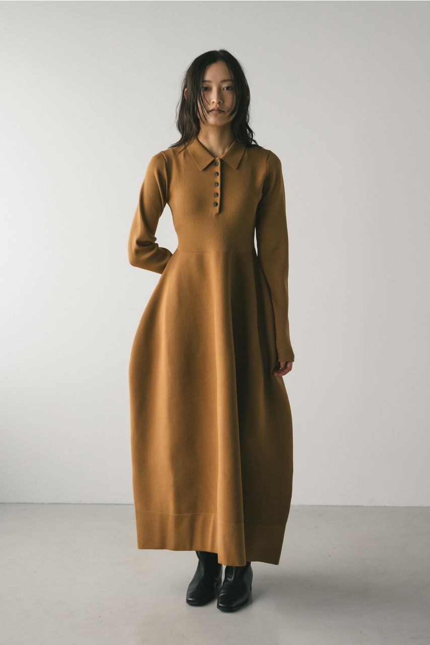 モデル身長173cm(Mサイズ着用) 丸いフォルム感のあるシルエットと配色ボタンがポイントのポロニットワンピース。あえて長めにした袖と後ろパネルにしたショルダーデザインが肩回りをすっきりと見せてくれます。ストレッチの効いたしっかりとした厚みのある糸を使用しているので、シワになりにくく、毛玉にもなりにくいのがうれしいポイント。ストレッチあり、透け感なし。 【お手入れ方法】ドライクリーニング