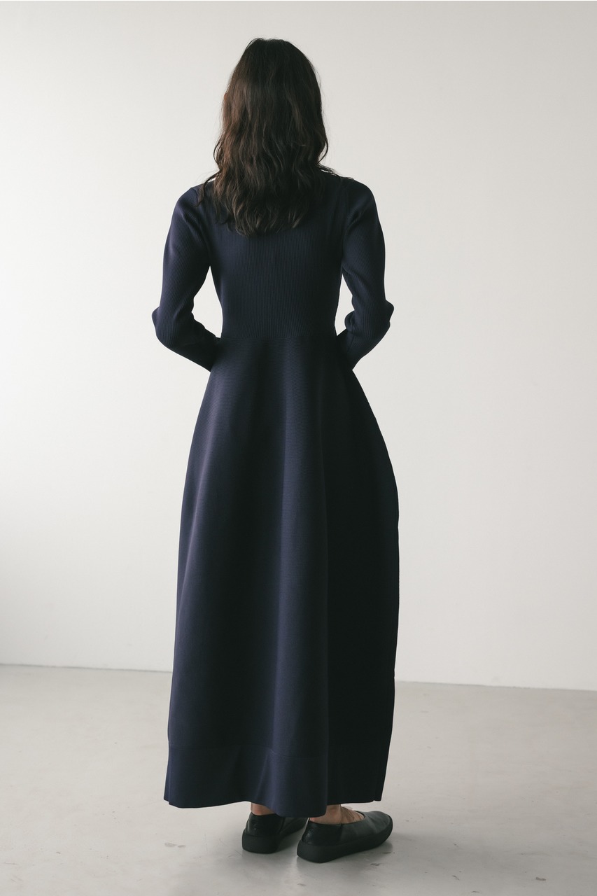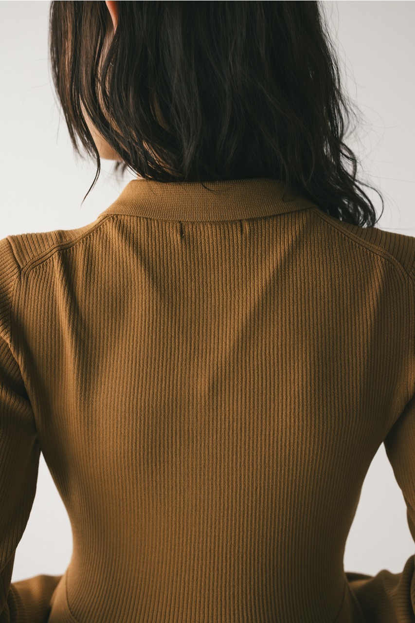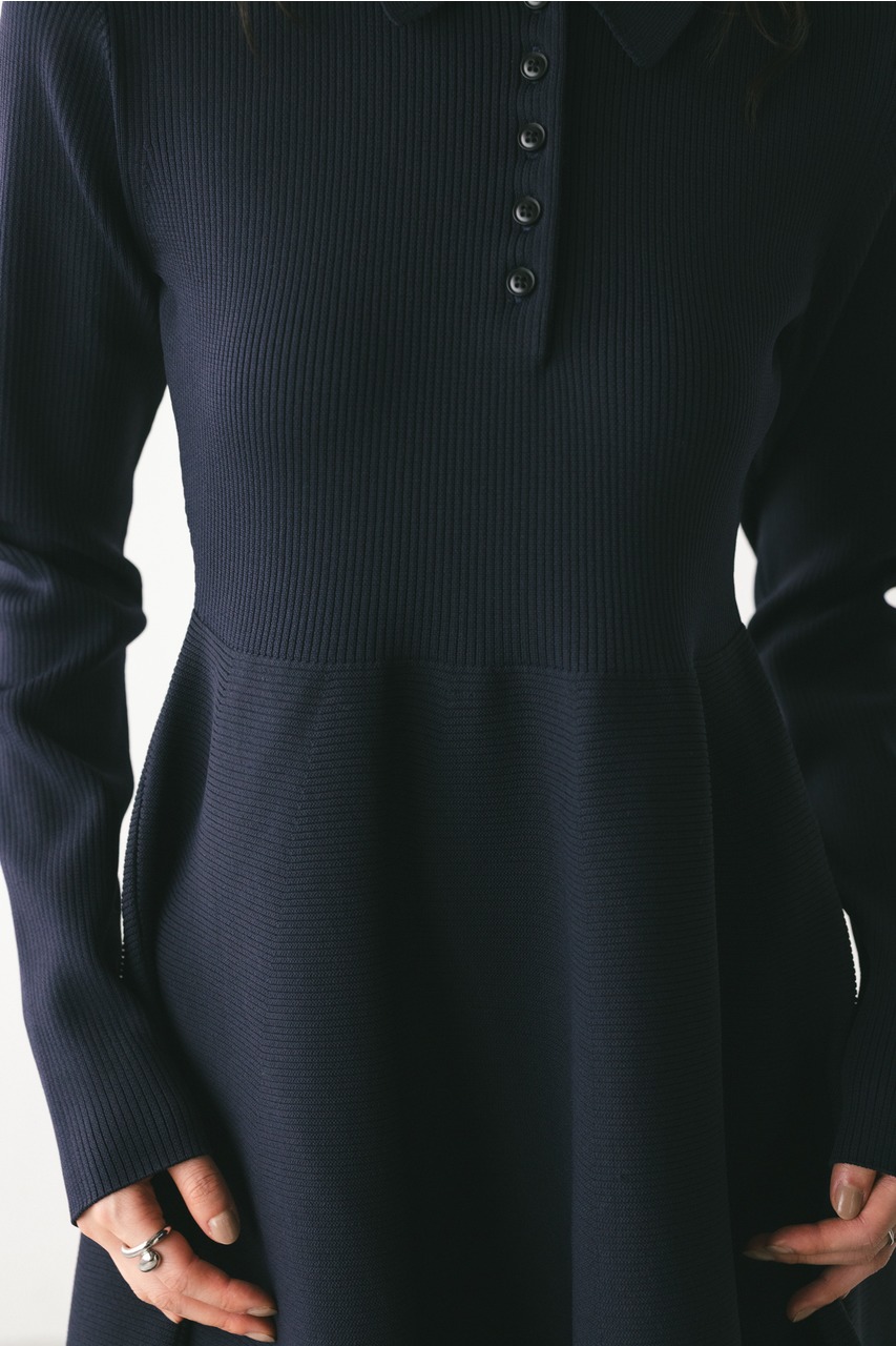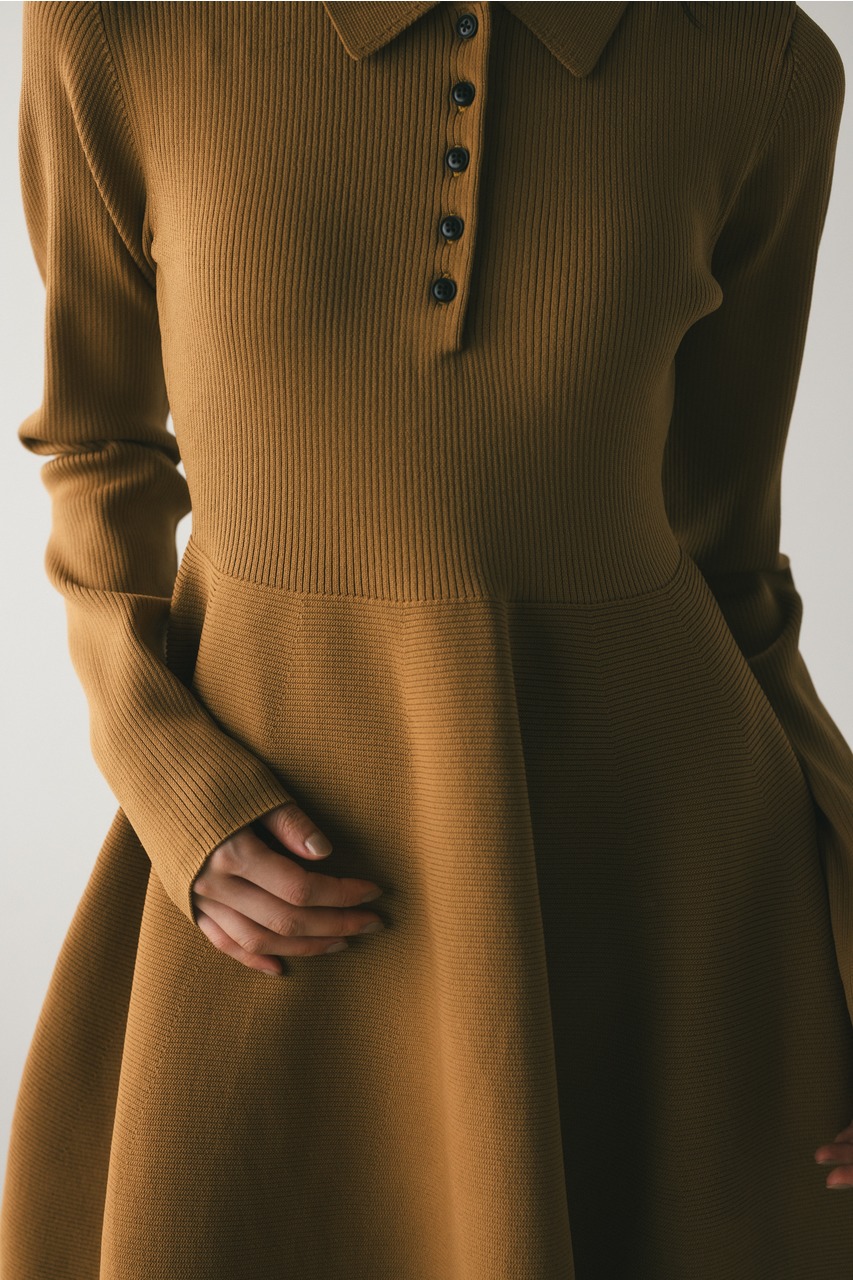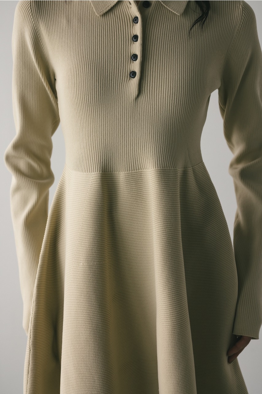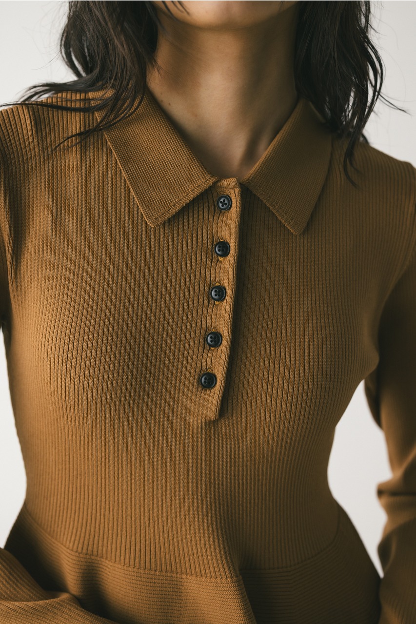 モデル身長173cm(Mサイズ着用) 丸いフォルム感のあるシルエットと配色ボタンがポイントのポロニットワンピース。あえて長めにした袖と後ろパネルにしたショルダーデザインが肩回りをすっきりと見せてくれます。ストレッチの効いたしっかりとした厚みのある糸を使用しているので、シワになりにくく、毛玉にもなりにくいのがうれしいポイント。ストレッチあり、透け感なし。 【お手入れ方法】ドライクリーニング