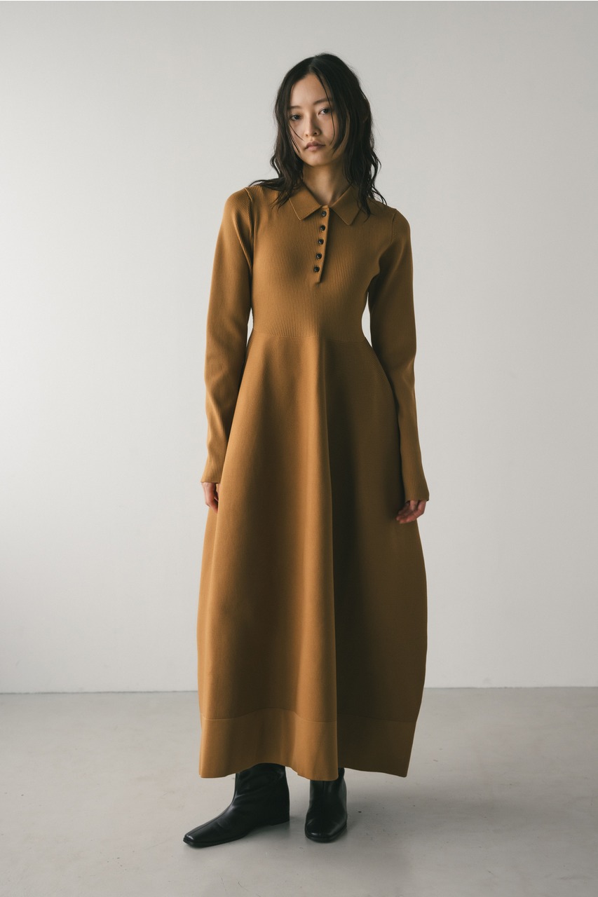 モデル身長173cm(Mサイズ着用) 丸いフォルム感のあるシルエットと配色ボタンがポイントのポロニットワンピース。あえて長めにした袖と後ろパネルにしたショルダーデザインが肩回りをすっきりと見せてくれます。ストレッチの効いたしっかりとした厚みのある糸を使用しているので、シワになりにくく、毛玉にもなりにくいのがうれしいポイント。ストレッチあり、透け感なし。 【お手入れ方法】ドライクリーニング