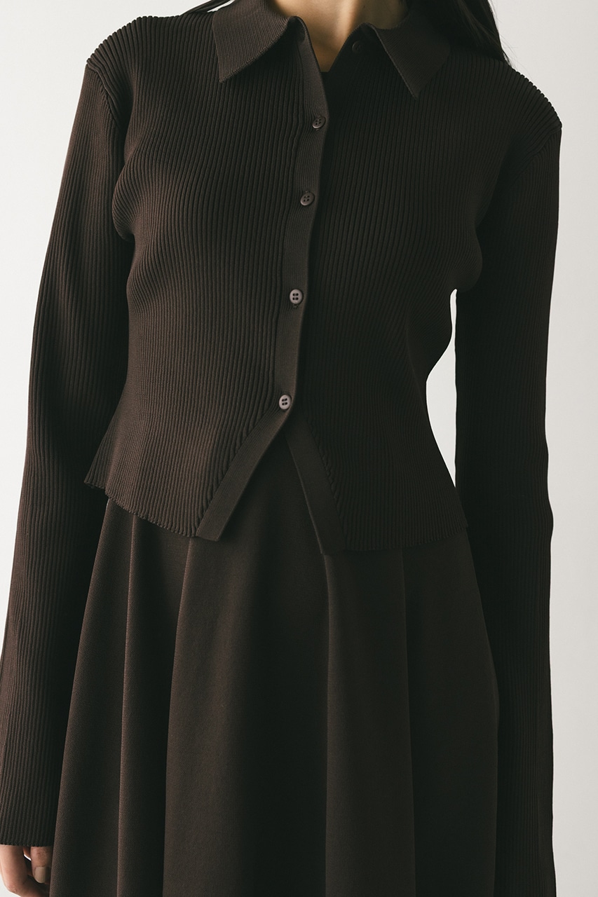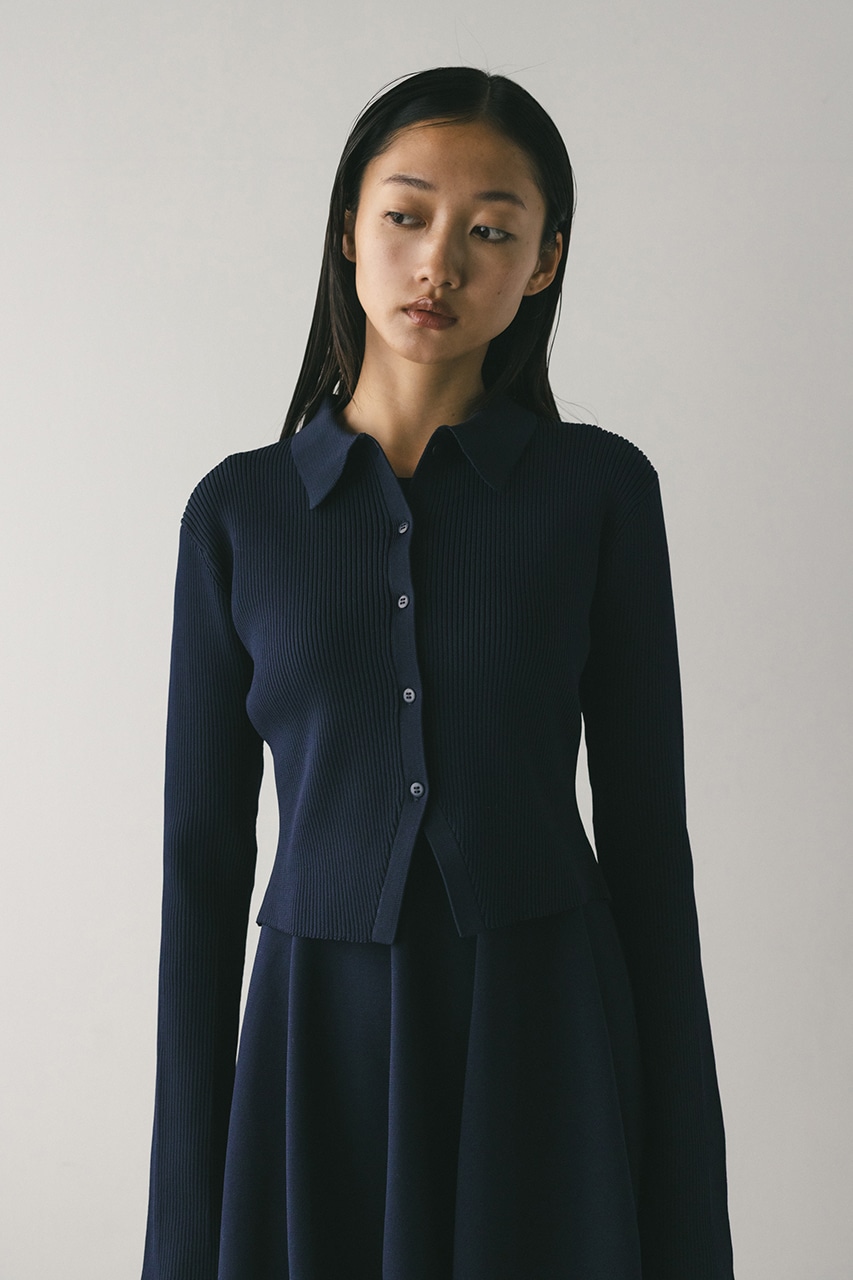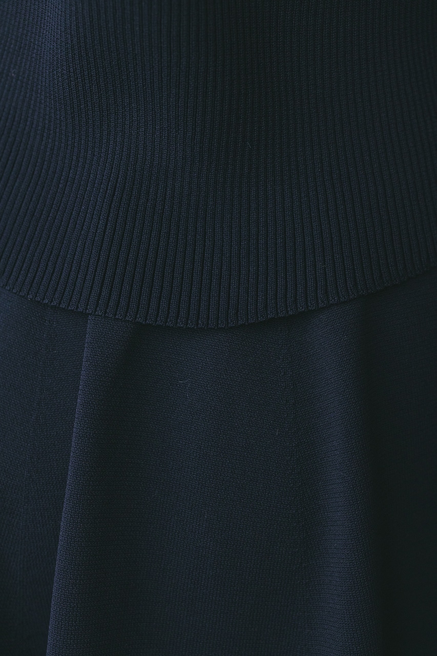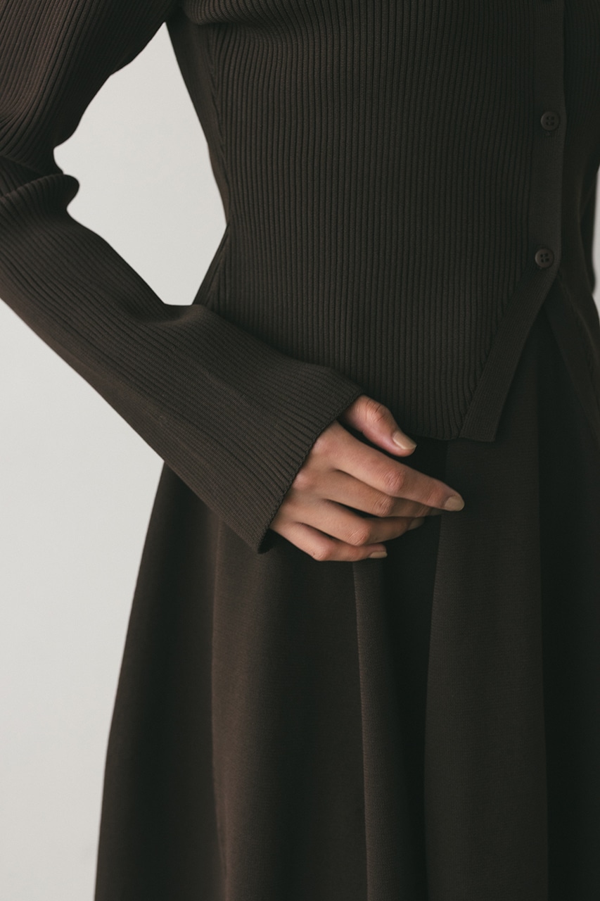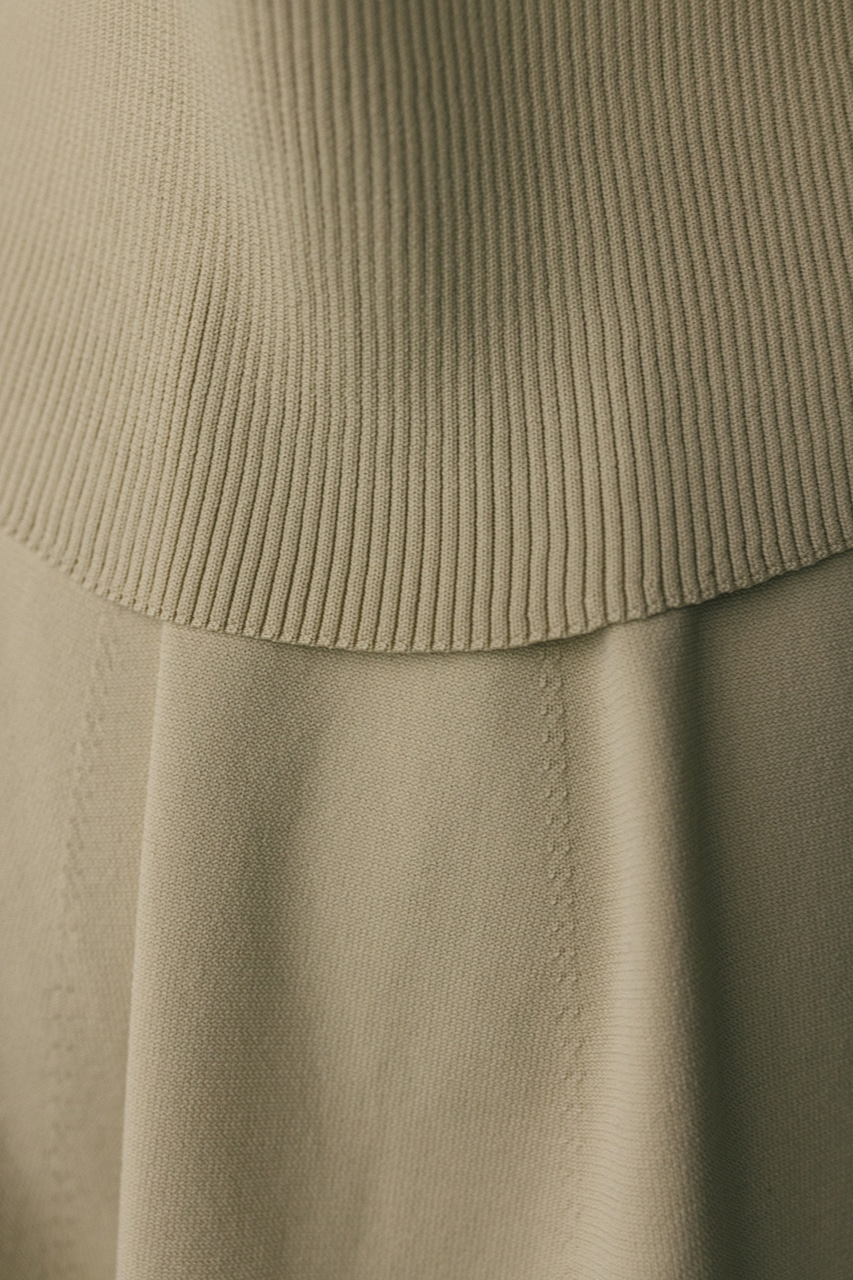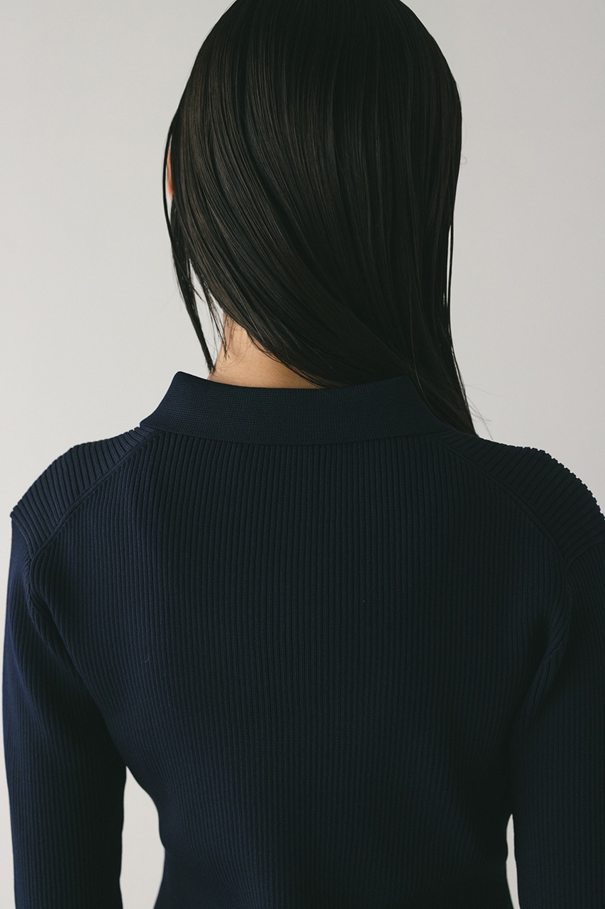 ポロニットとワンピースのセットアイテム。しっかりとリブ編みで仕上げたトップスは、袖口に向かってやや広がるスリーブがデザインポイント。