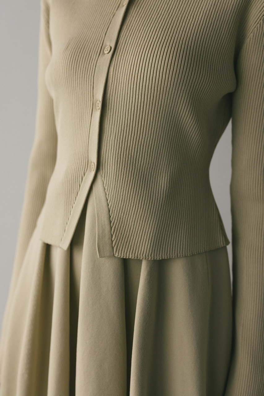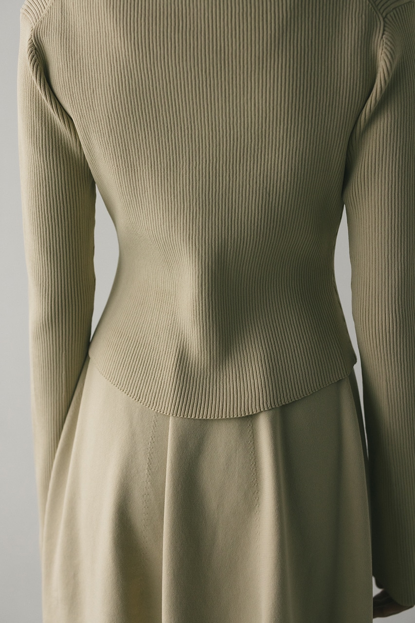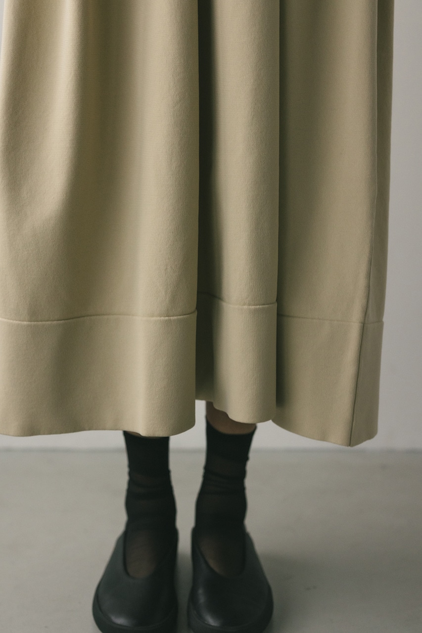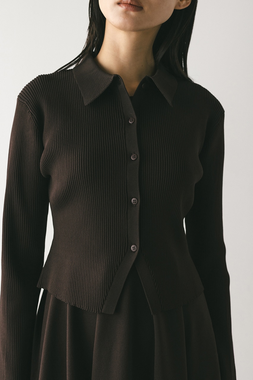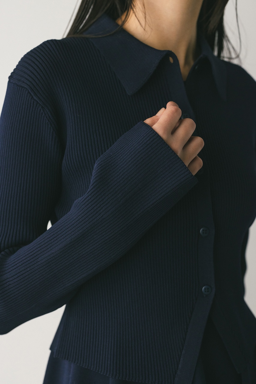 ポロニットとワンピースのセットアイテム。しっかりとリブ編みで仕上げたトップスは、袖口に向かってやや広がるスリーブがデザインポイント。