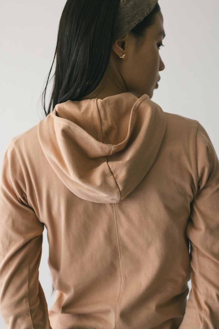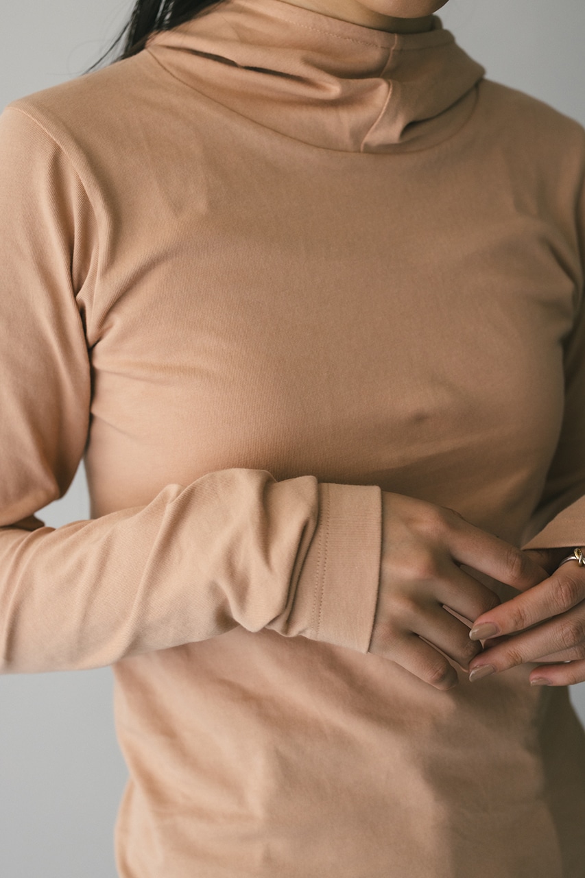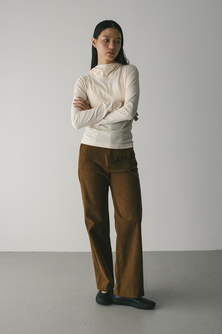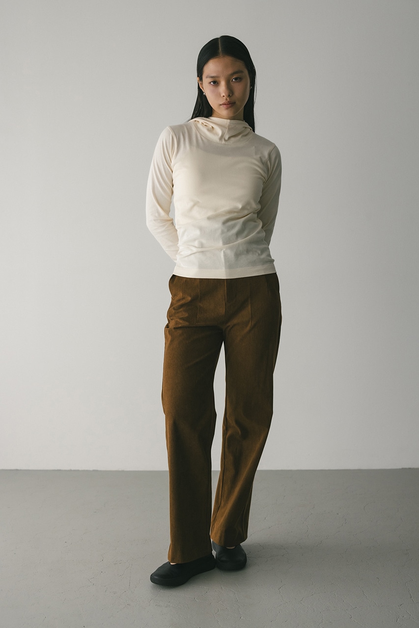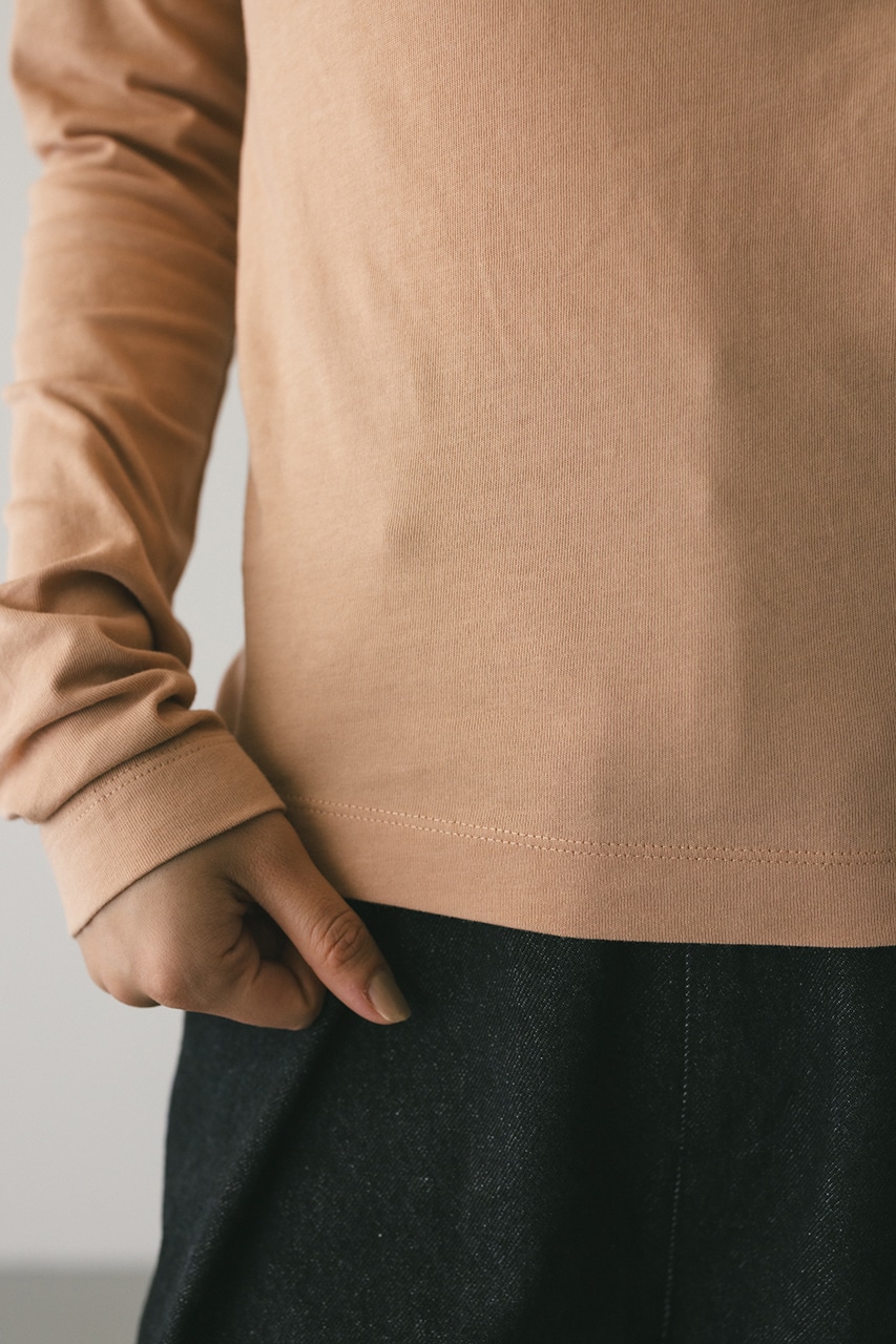 コンパクトなサイズ感のフーディーカットソー。コットン100%の生地ですが、微光沢で毛羽が少ない清涼感のある風合いがポイント。1枚ではもちろん、ジャケットやニットなどのインナーとしていつものコーデにプラスするだけでこなれ感の出るアイテムです。ストレッチなし、透け感ややあり(WHT)。こちらはWEBとThe SHEL’TTER TOKYO店、新宿ルミネエスト店、ららぽーとTOKYOBAY店限定の取り扱いです。
