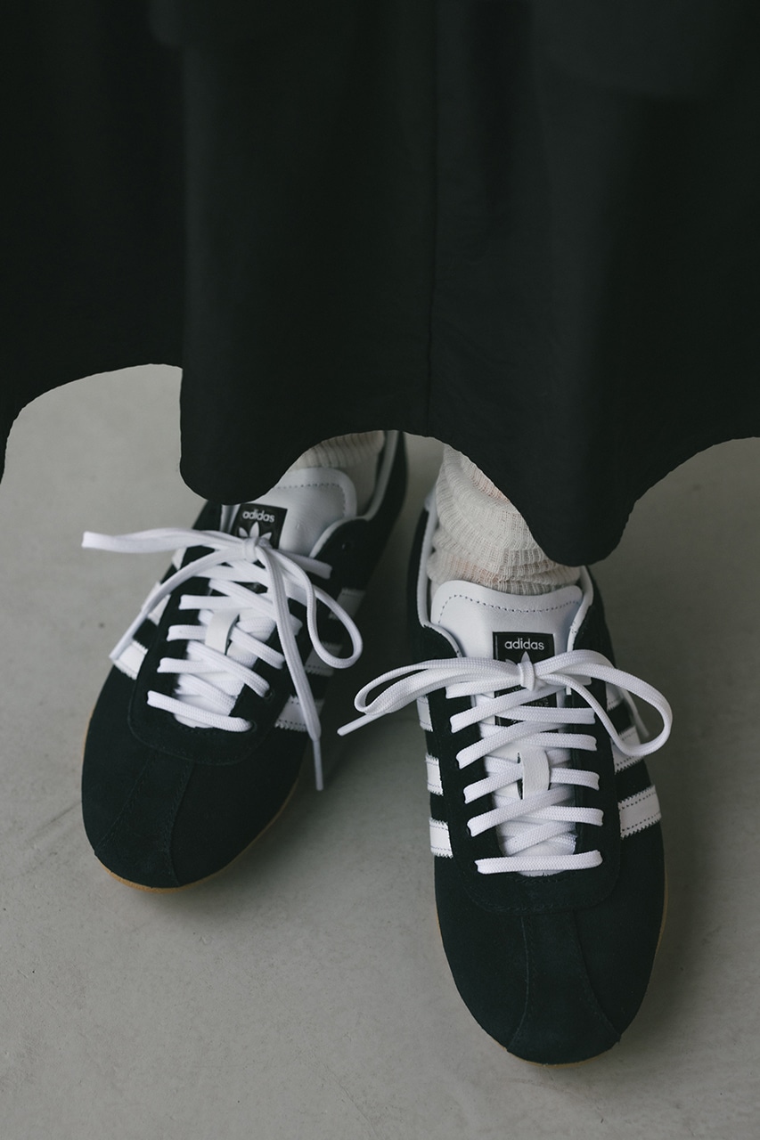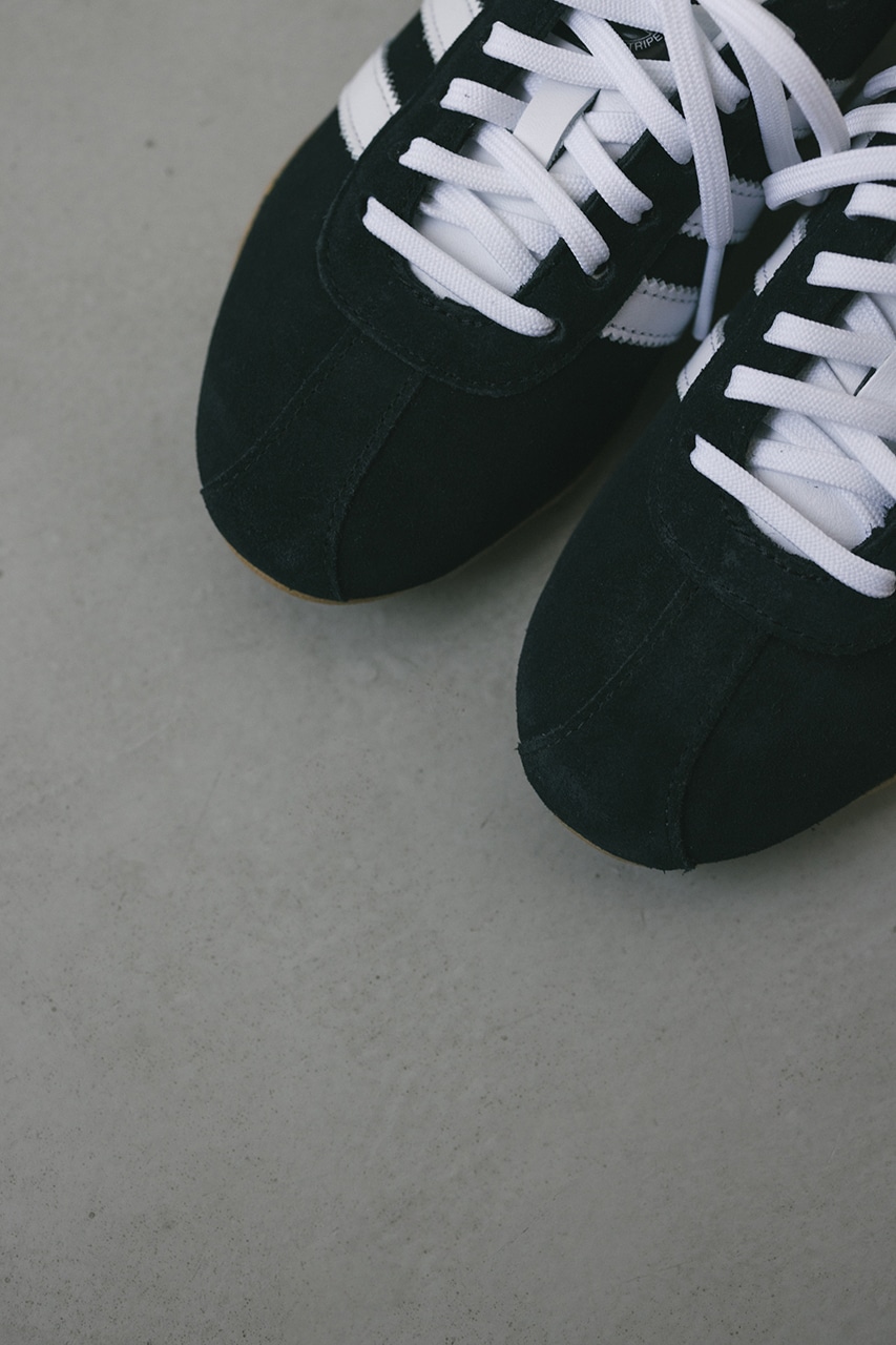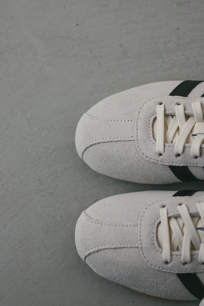 東京の名を冠したシューズを手に入れて、レトロな雰囲気を自分のモノに。これは、ビンテージ感がありながら、モダンにも見える、ソフトなスエードアッパーのスリムなロープロシューズ。ソールには、アスファルトやコンクリートの通りを堂々と歩くのに必要な、滑りにくいラバーアウトソールを合わせている。平日から週末まで、カジュアルなオケージョンすべてにシームレスに活躍するシューズ。