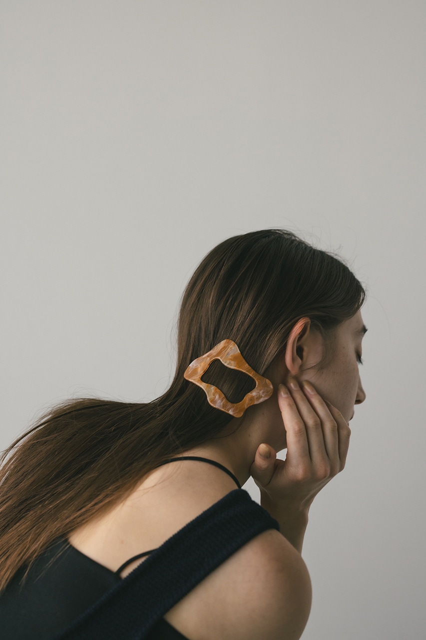 ランダムにウェーブしたマーブルバレッタ。存在感のあるフォルムでいつものヘアアレンジをこなれた雰囲気に導きます。