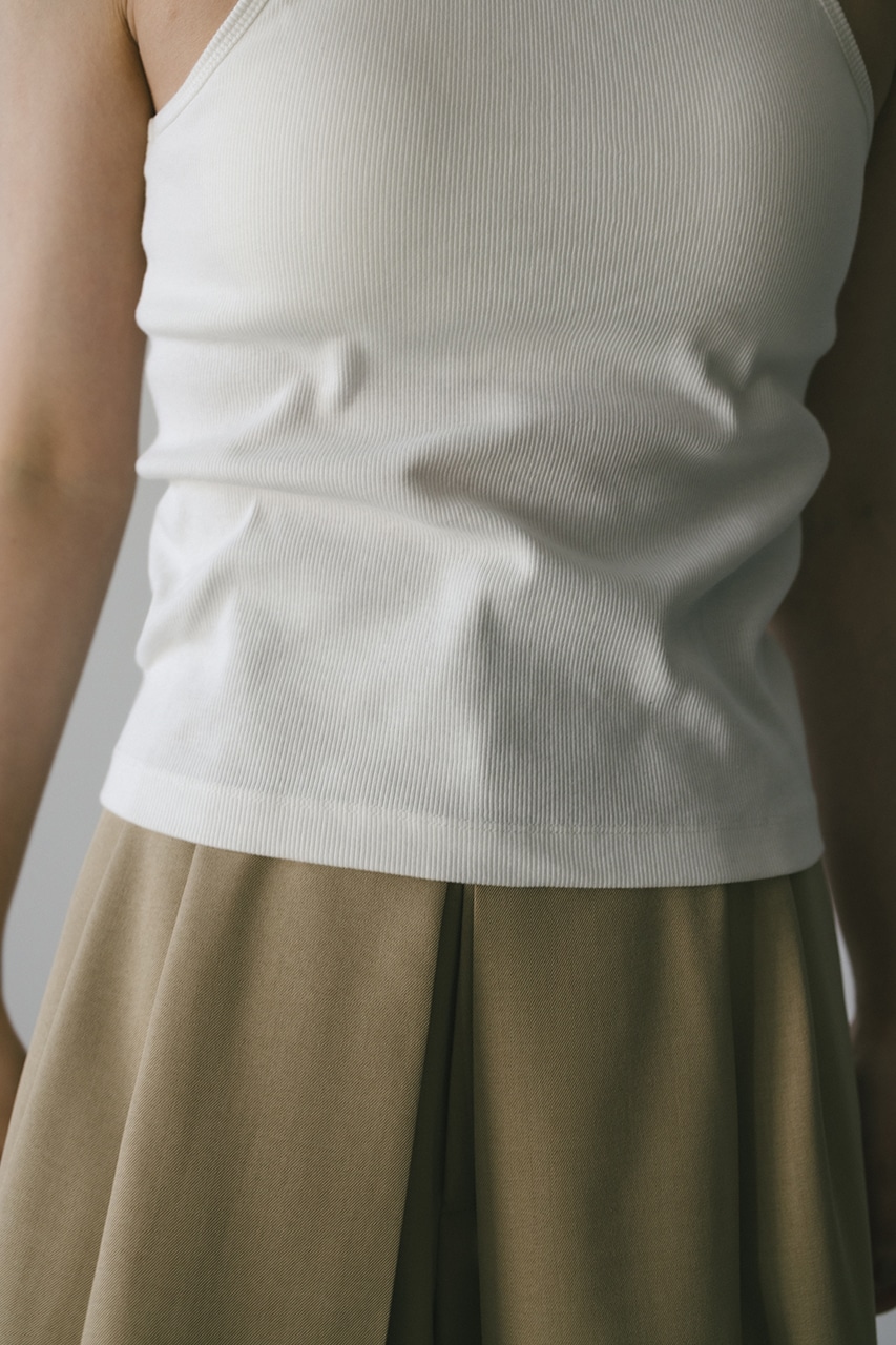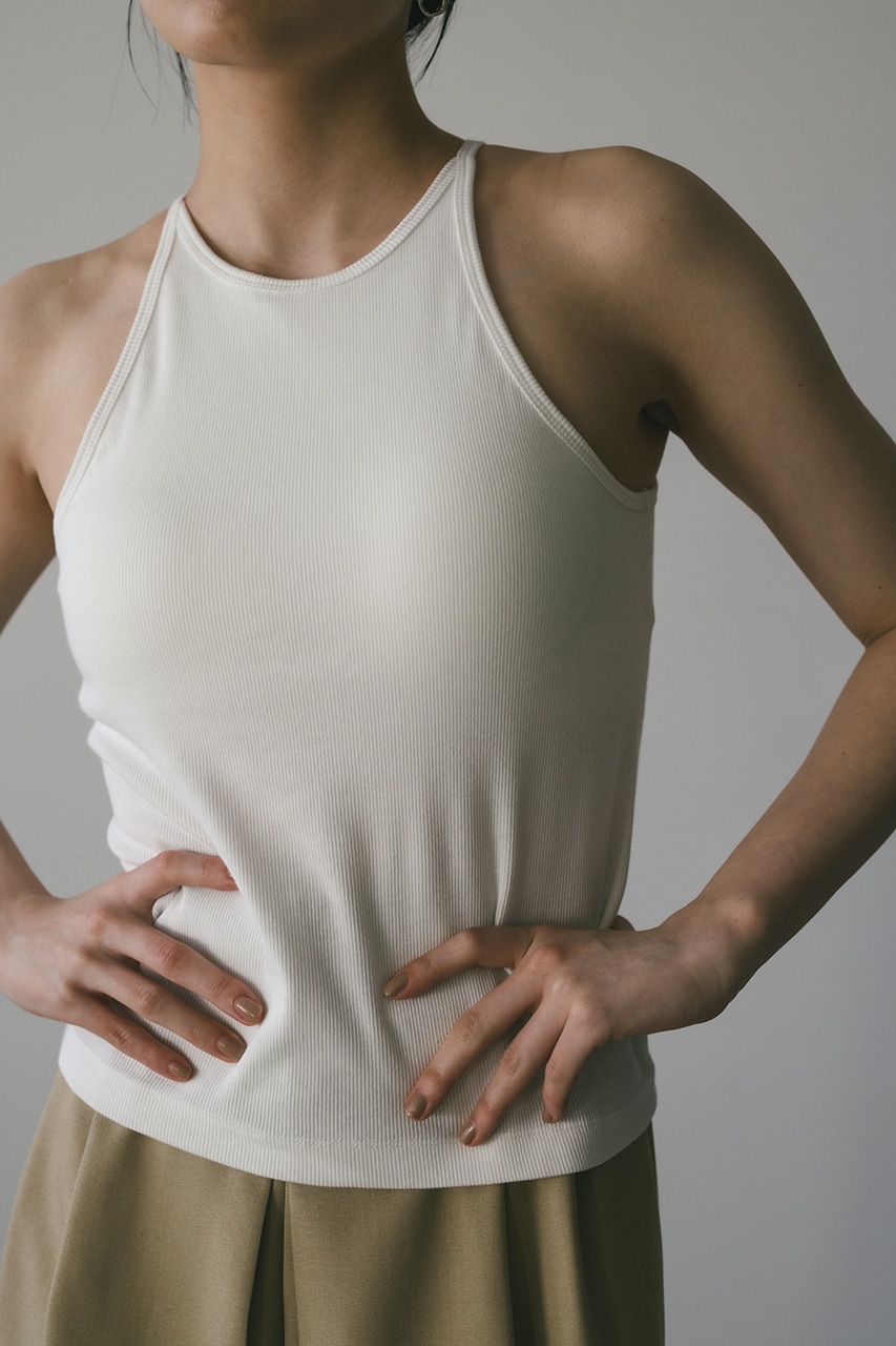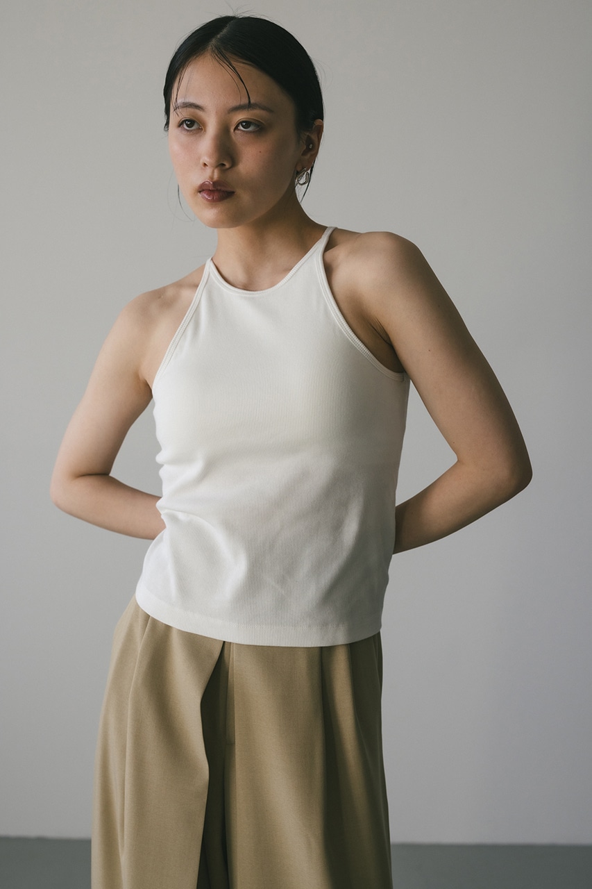 スタミキ大人気のカップ付きアメスリタンクトップ。ストレッチ性のあるテレコ生地を使用し、肌触りにこだわった一枚。華奢なストラップデザインにすっきりとしたシルエットなのでインナーレイヤードとしても使いやすいアイテムです。透け感ホワイトややあり、ストレッチあり。