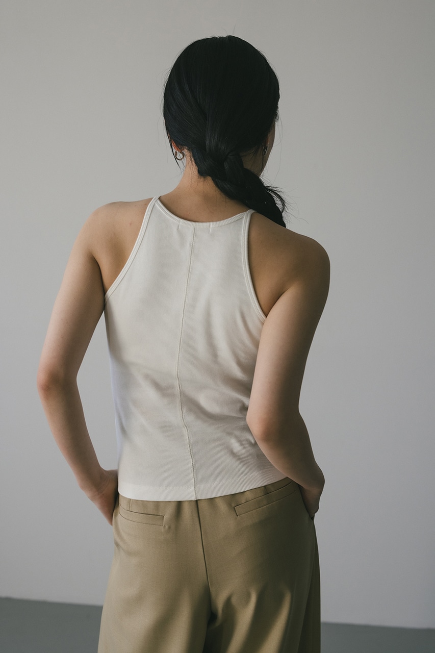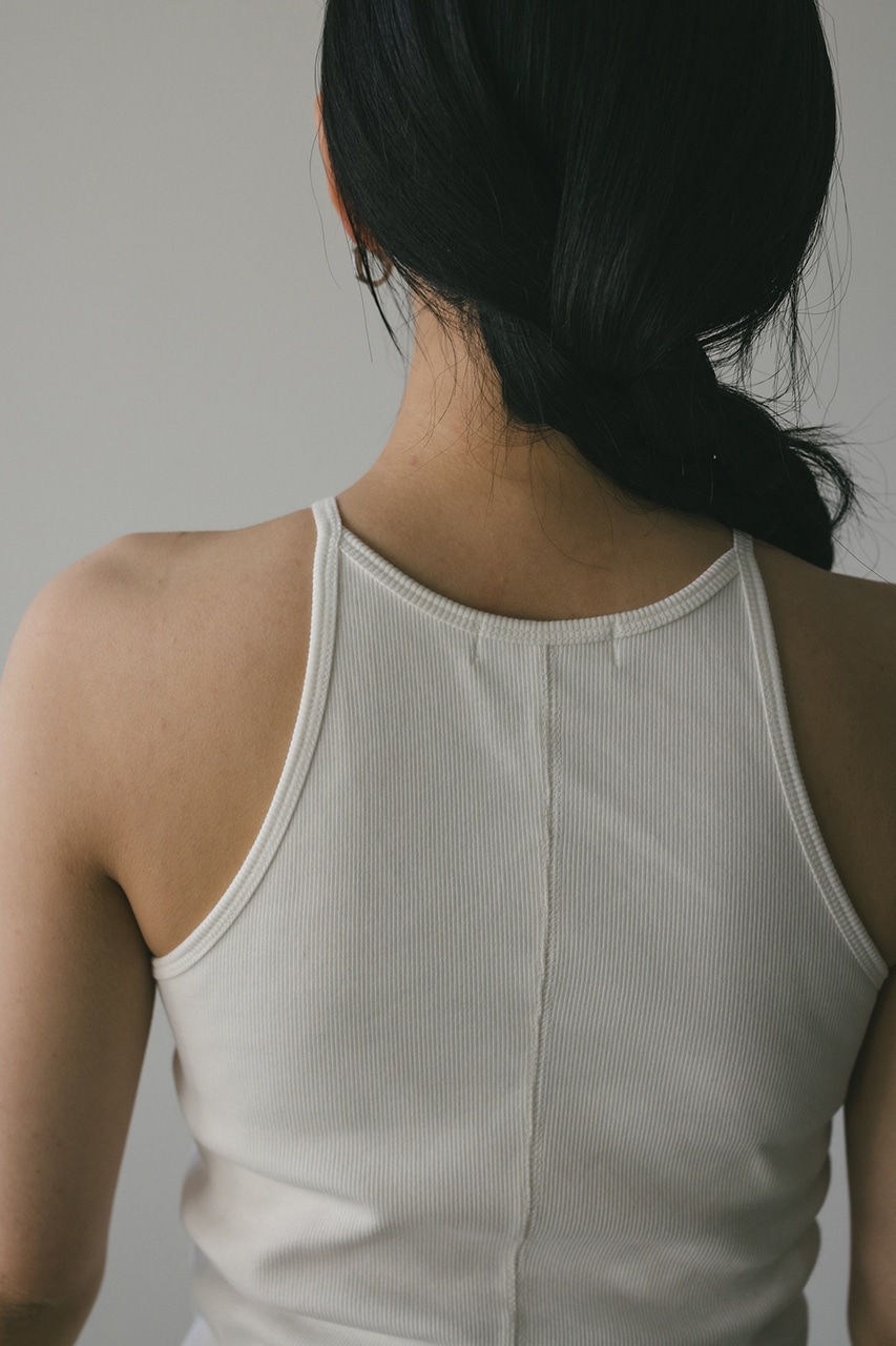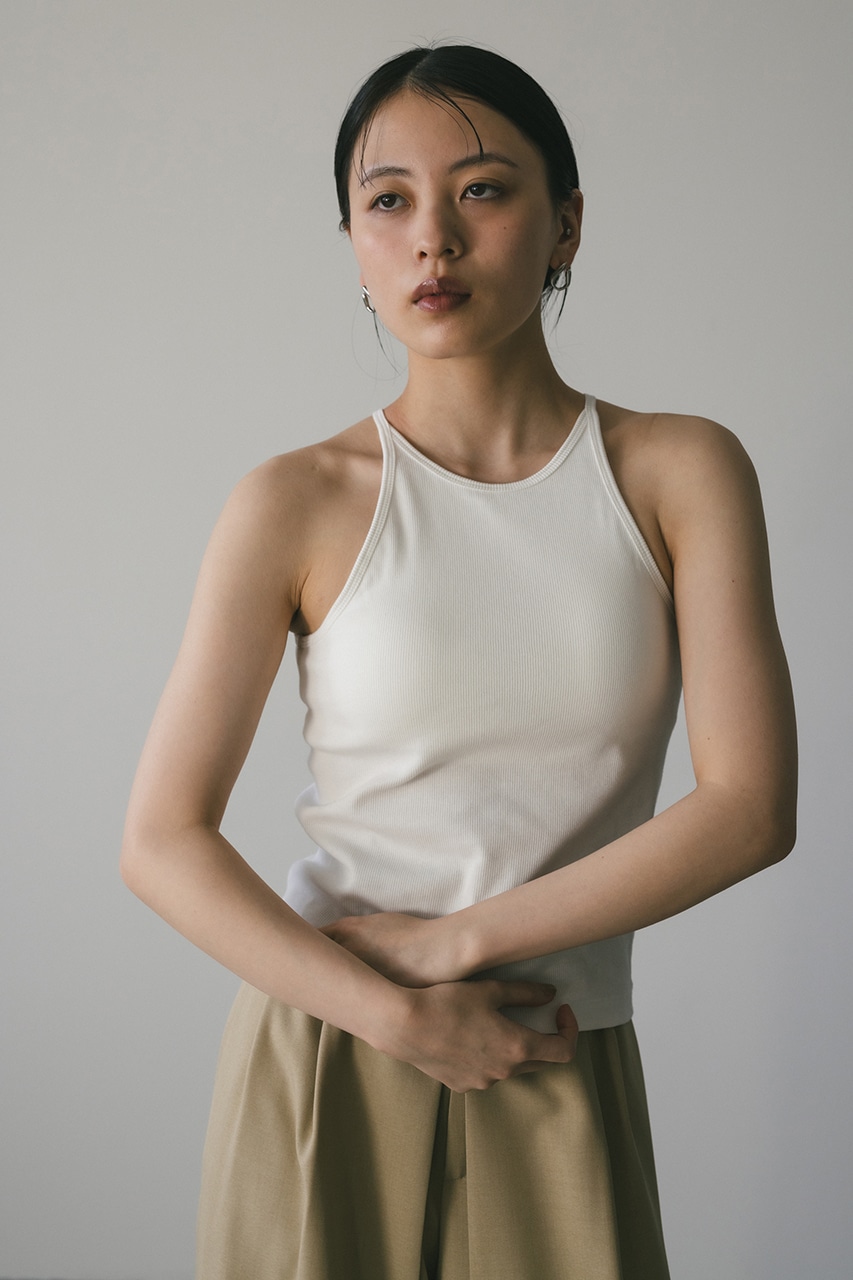 スタミキ大人気のカップ付きアメスリタンクトップ。ストレッチ性のあるテレコ生地を使用し、肌触りにこだわった一枚。華奢なストラップデザインにすっきりとしたシルエットなのでインナーレイヤードとしても使いやすいアイテムです。透け感ホワイトややあり、ストレッチあり。