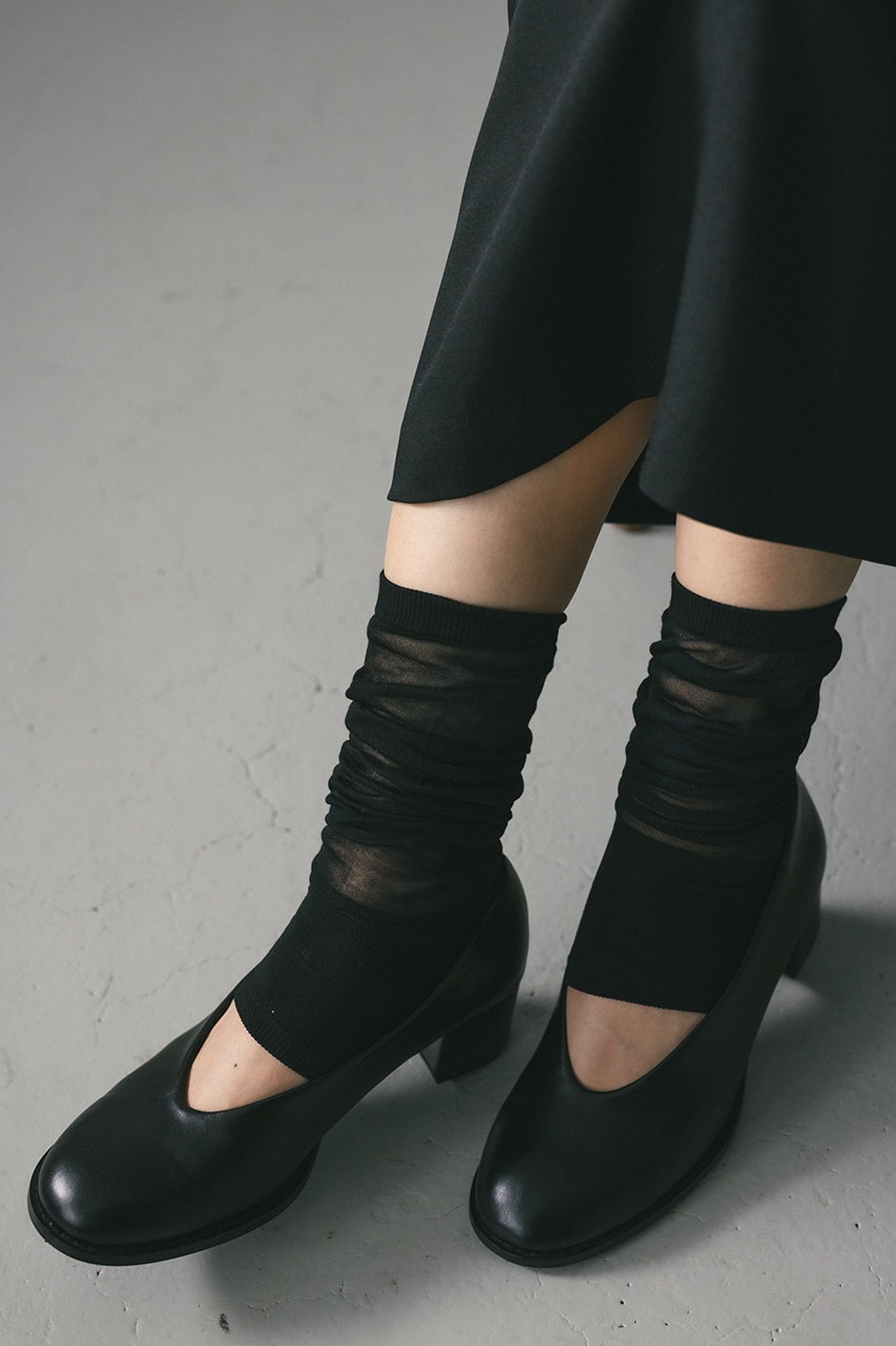 透け感のあるシアートレンカソックス。パンプスや、サンダルとのスタイリングにおすすめです。透け感あり、ストレッチあり。