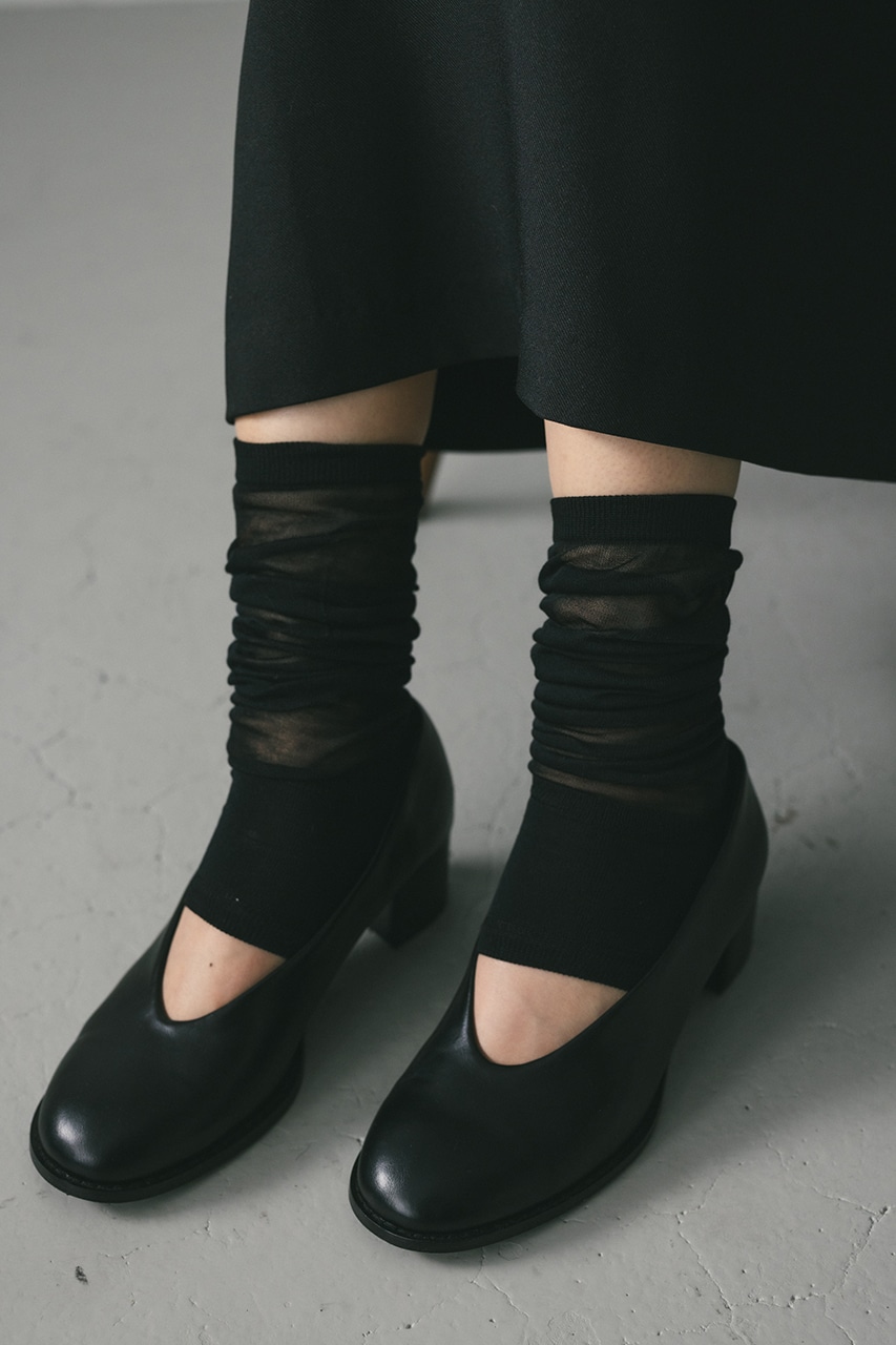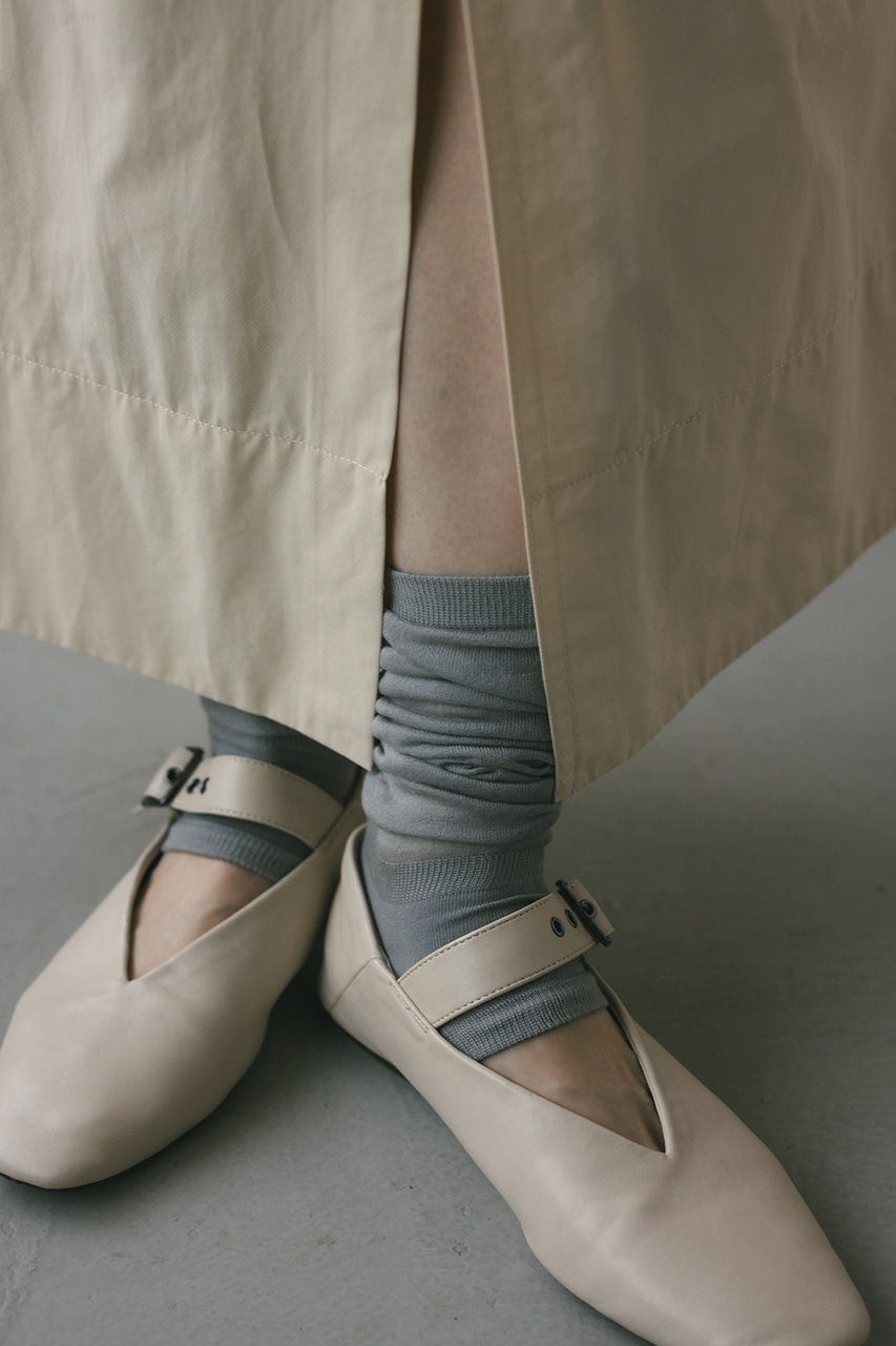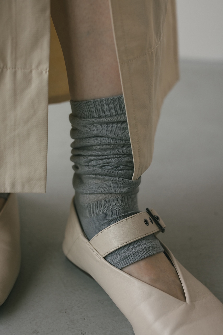 透け感のあるシアートレンカソックス。パンプスや、サンダルとのスタイリングにおすすめです。透け感あり、ストレッチあり。