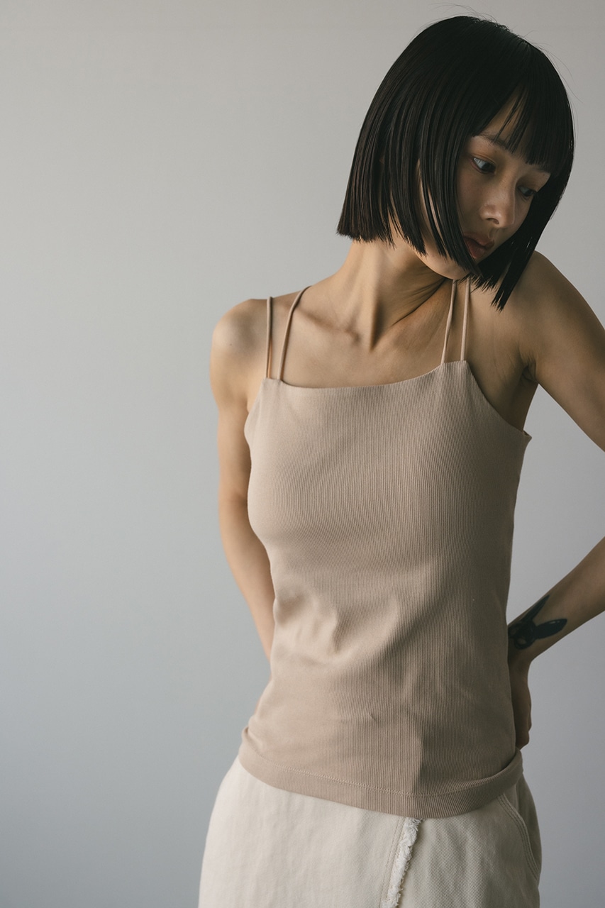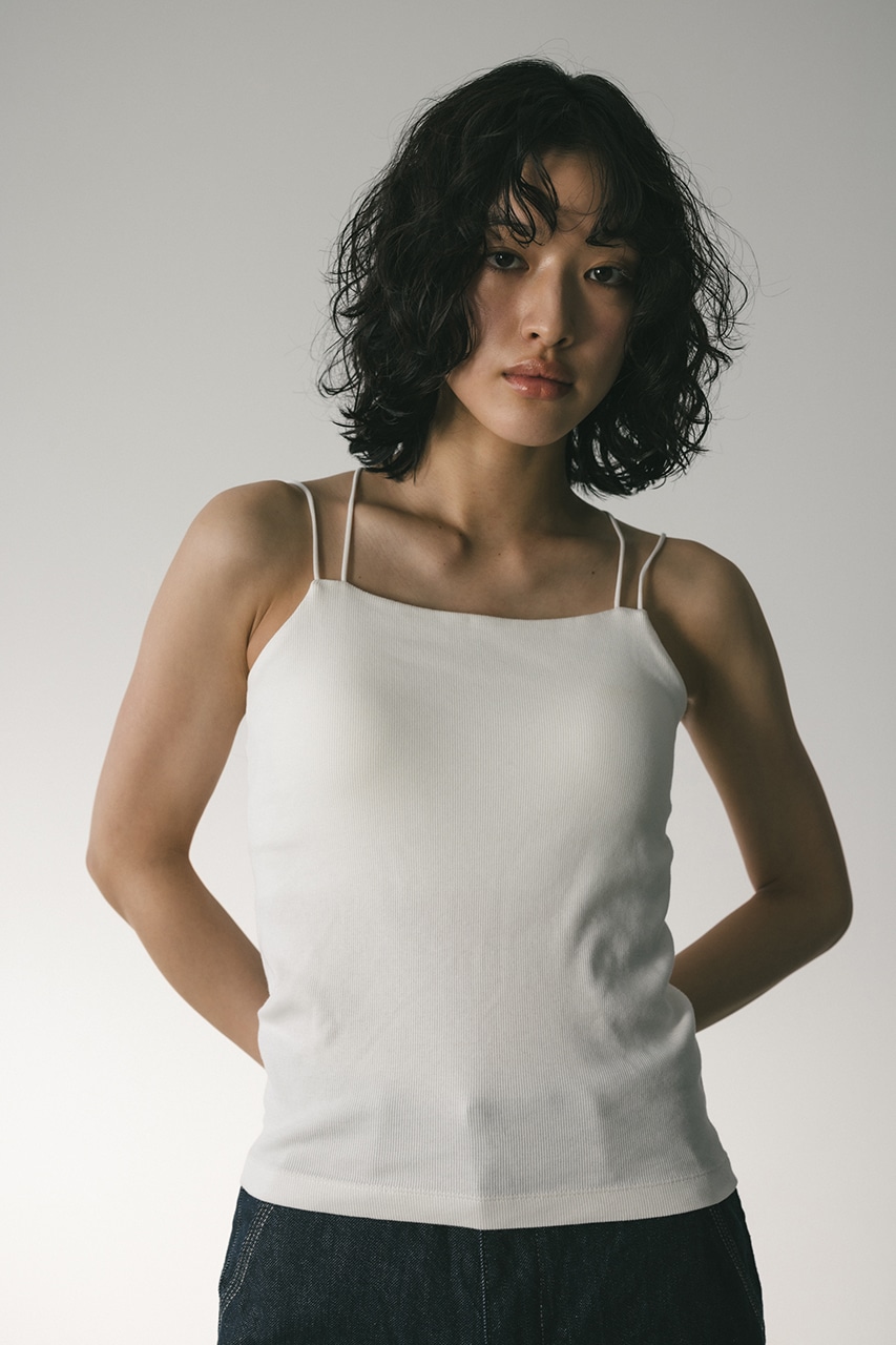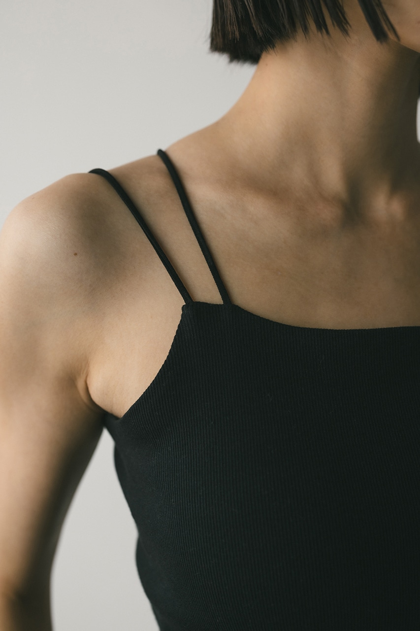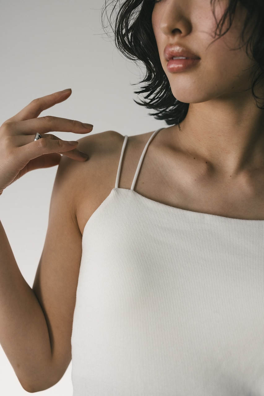 なめらかでドライタッチが特徴的な強撚リブカップ付きキャミソール。安定した形と細ストラップがデザインポイント。身体馴染みが良く、楽に着用していただけます。肩紐ストレッチあり。取り外し可能カップ付き。透け感なし、ストレッチあり。