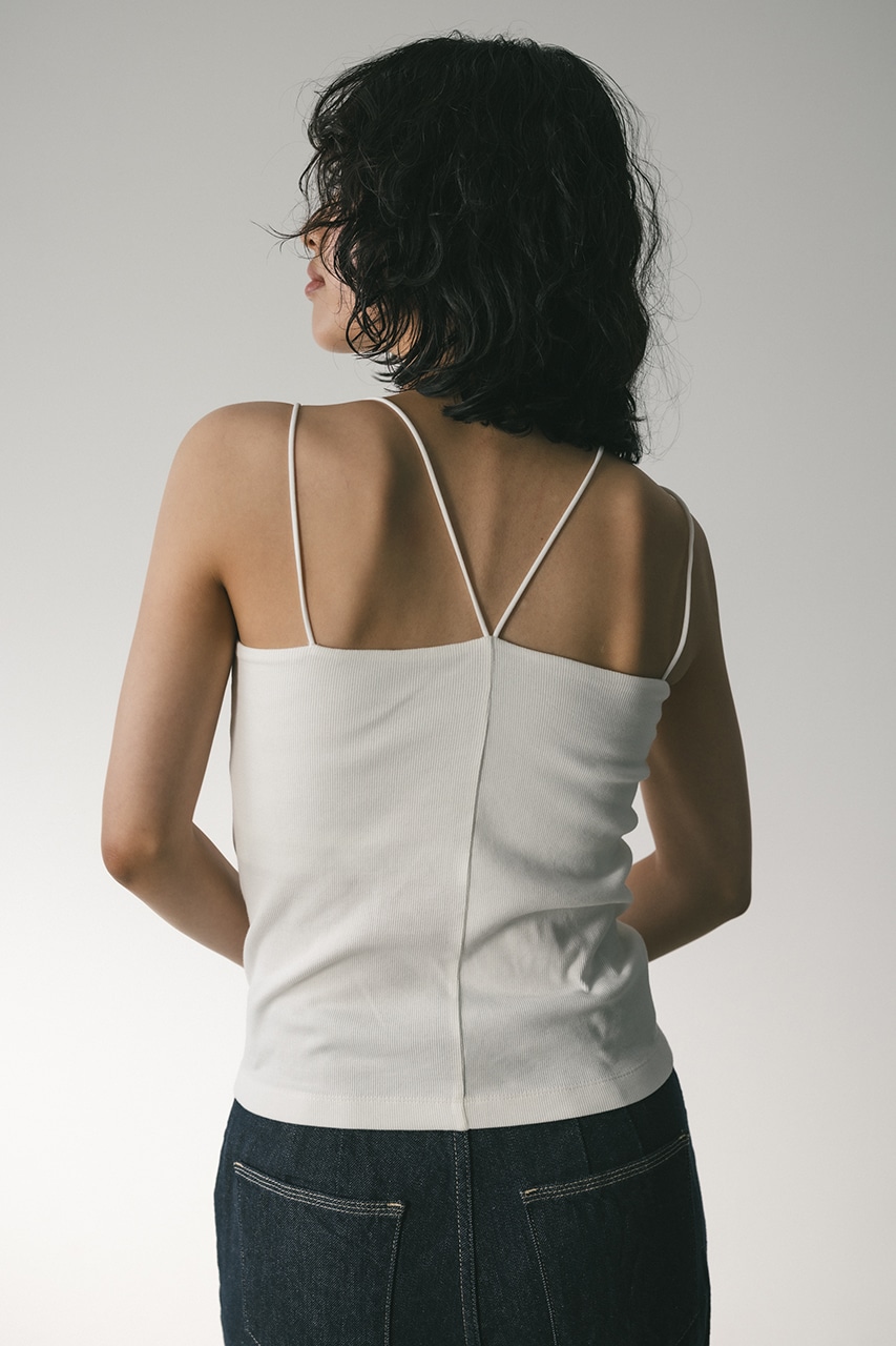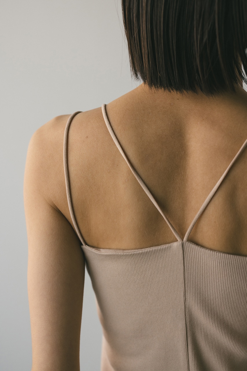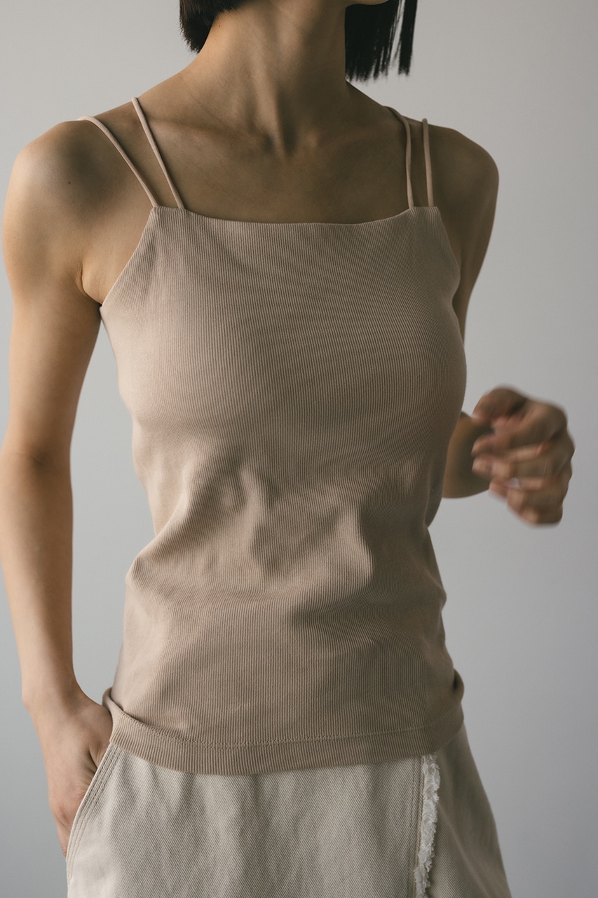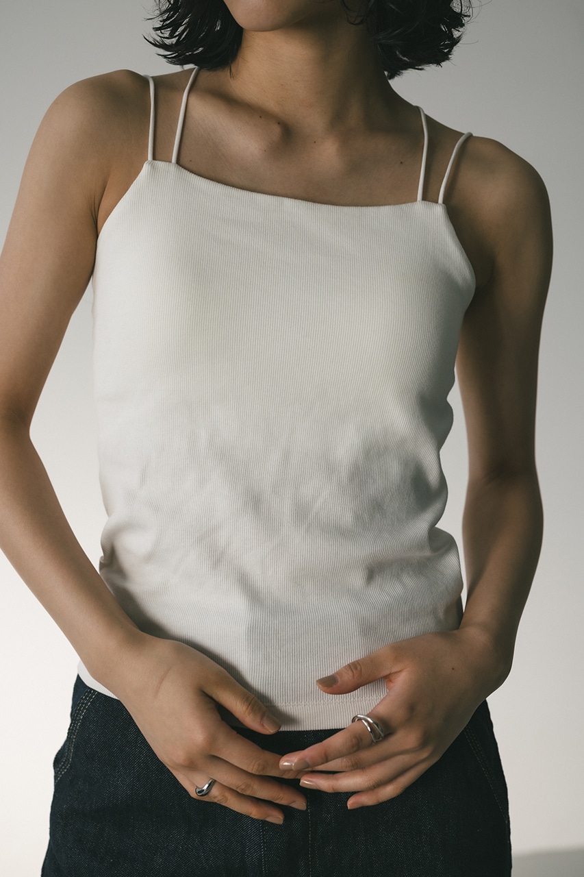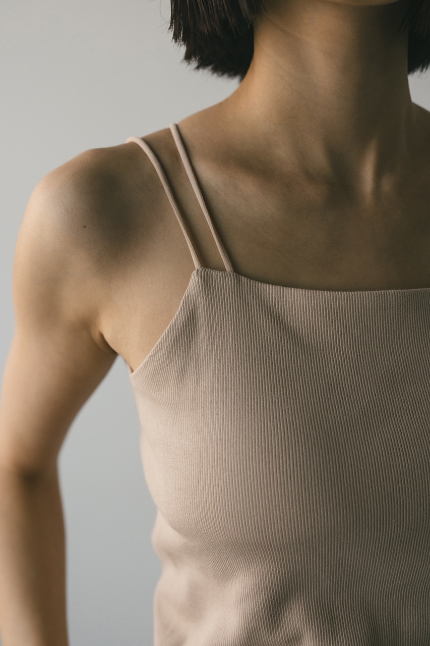 なめらかでドライタッチが特徴的な強撚リブカップ付きキャミソール。安定した形と細ストラップがデザインポイント。身体馴染みが良く、楽に着用していただけます。肩紐ストレッチあり。取り外し可能カップ付き。透け感なし、ストレッチあり。
