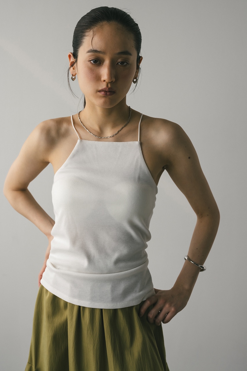 バストの形を丸く立体的に整えてきれいに見せてくれるモールドカップ付きのアメスリキャミ。着心地も良く、洗濯しても形崩れしないのがポイント。アメスリシルエットでインナー使いもしやすい一枚です。ストレッチあり、透け感WHTややあり。