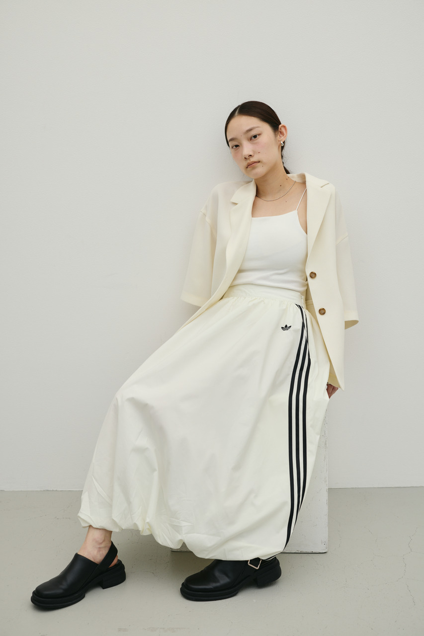 トレフォイルと両サイドのスリーストライプスが特徴のこのスカートは、人の視線を捉え、多目的なスタイリングが可能。オーバーサイズTシャツと合わせても、身体をにぴったりフィットするトップスでバルーンシェイプを強調させてもよし。どこに行っても、何をしても、見逃されることのない汎用アイテム。