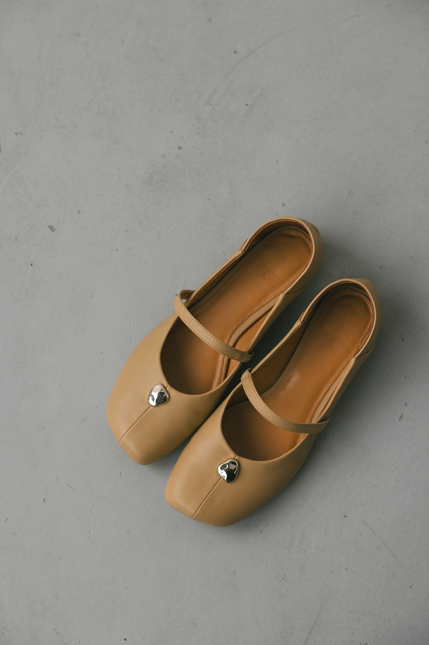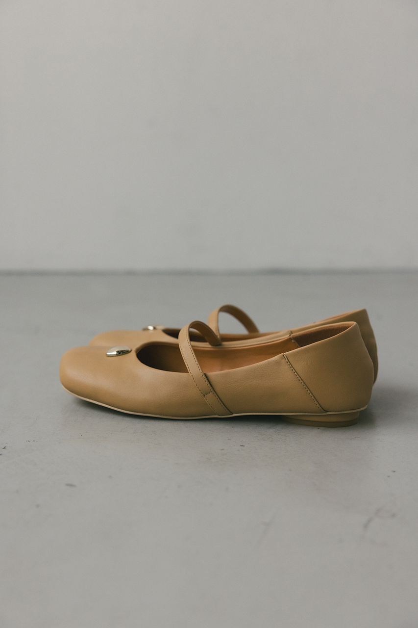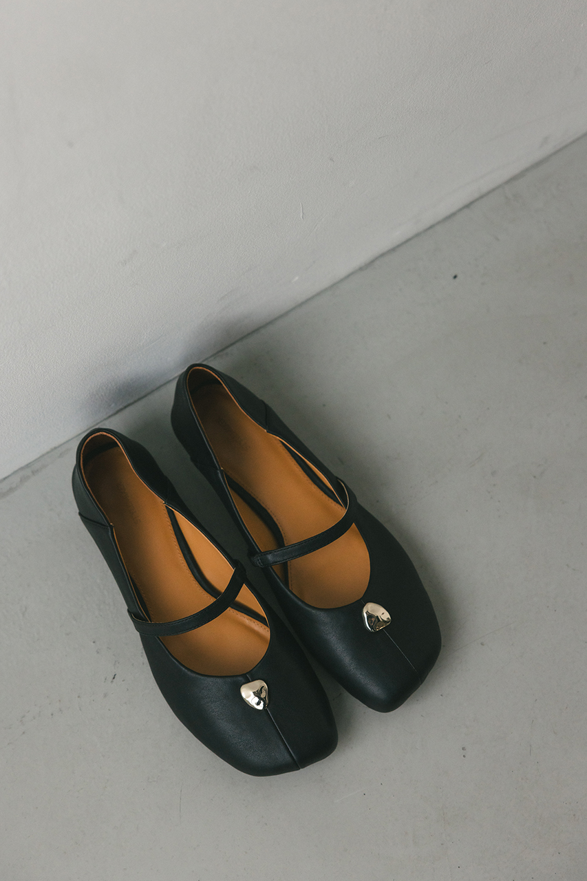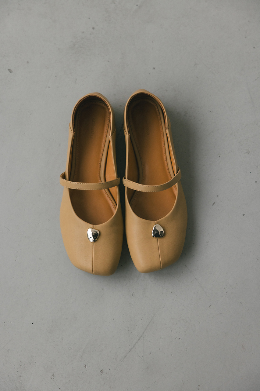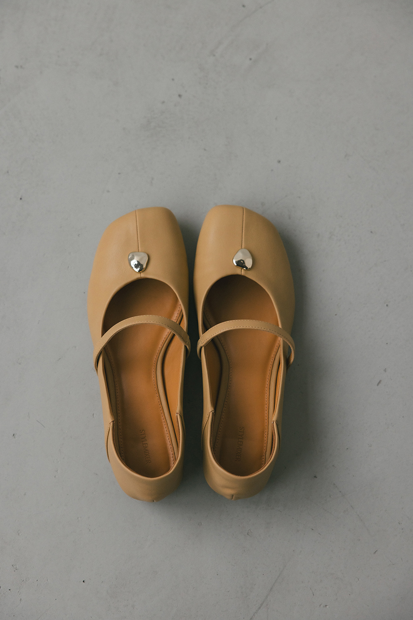 つま先のメタルパーツがコーデにアクセントを効かせるパンプス。かかとは柔らかく踏めるバブーシュ使用しているので踏んでの着用も可能です。