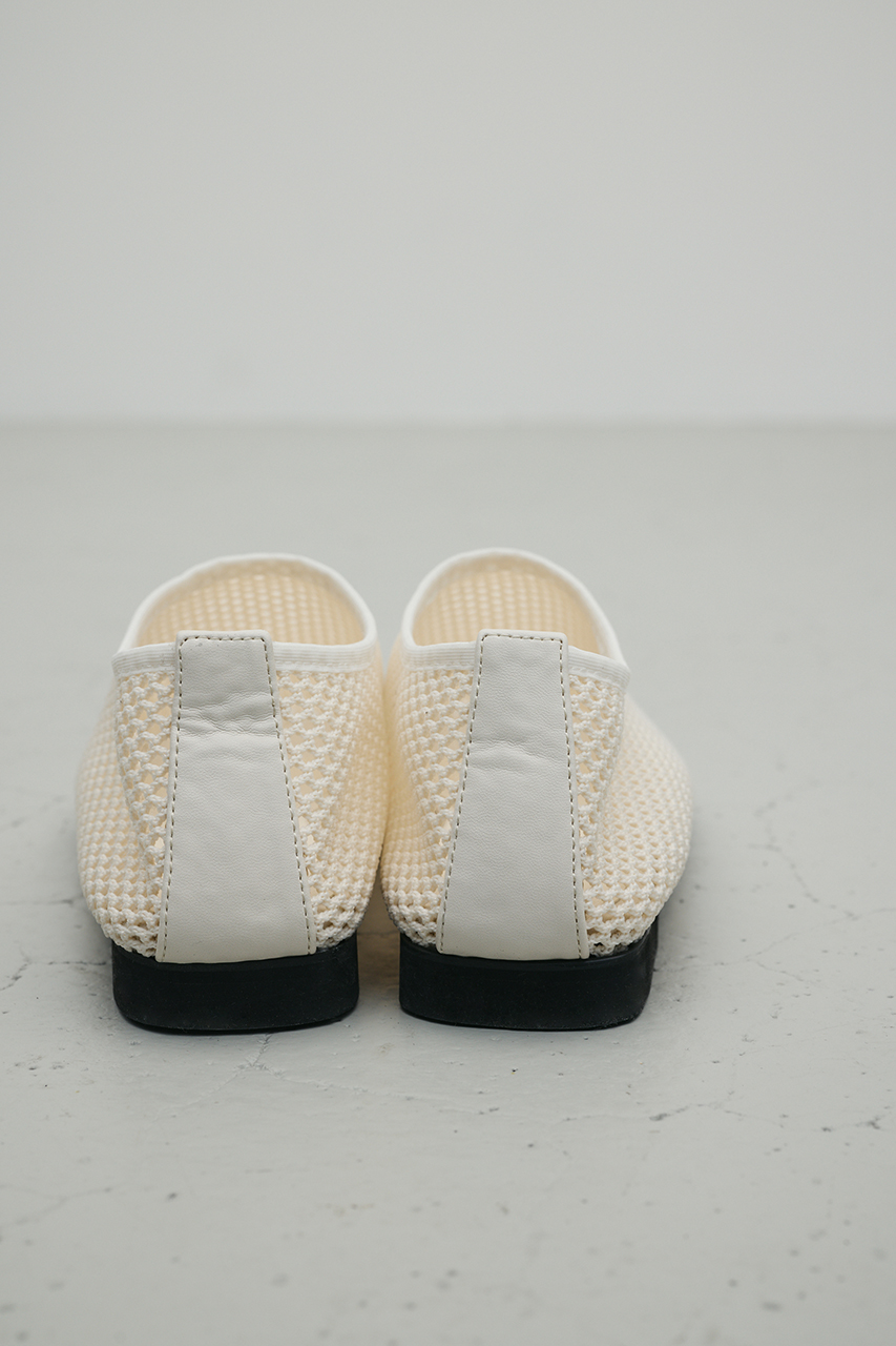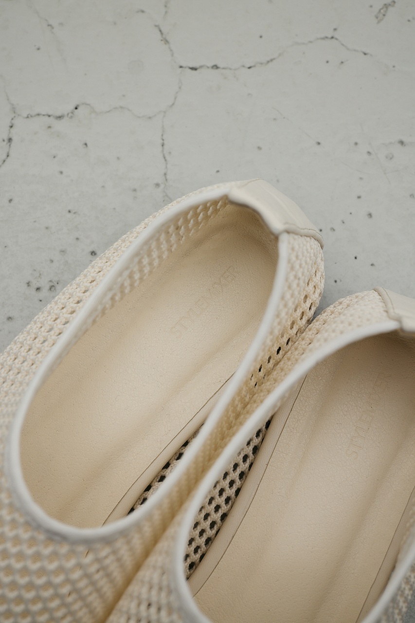 メッシュ素材を使用した快適に履けるフラットパンプス。トレンド感のあるスクエアトゥが足元に抜け感をプラス。フラット仕様で歩きやすく、デイリー使いにぴったりな一足です。