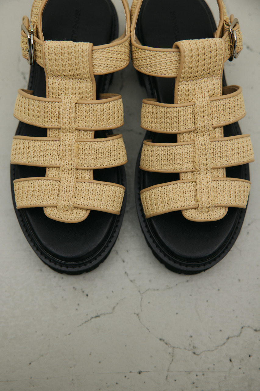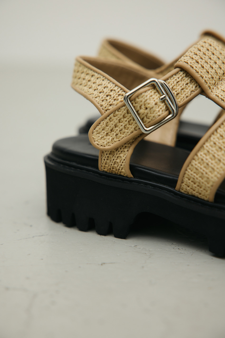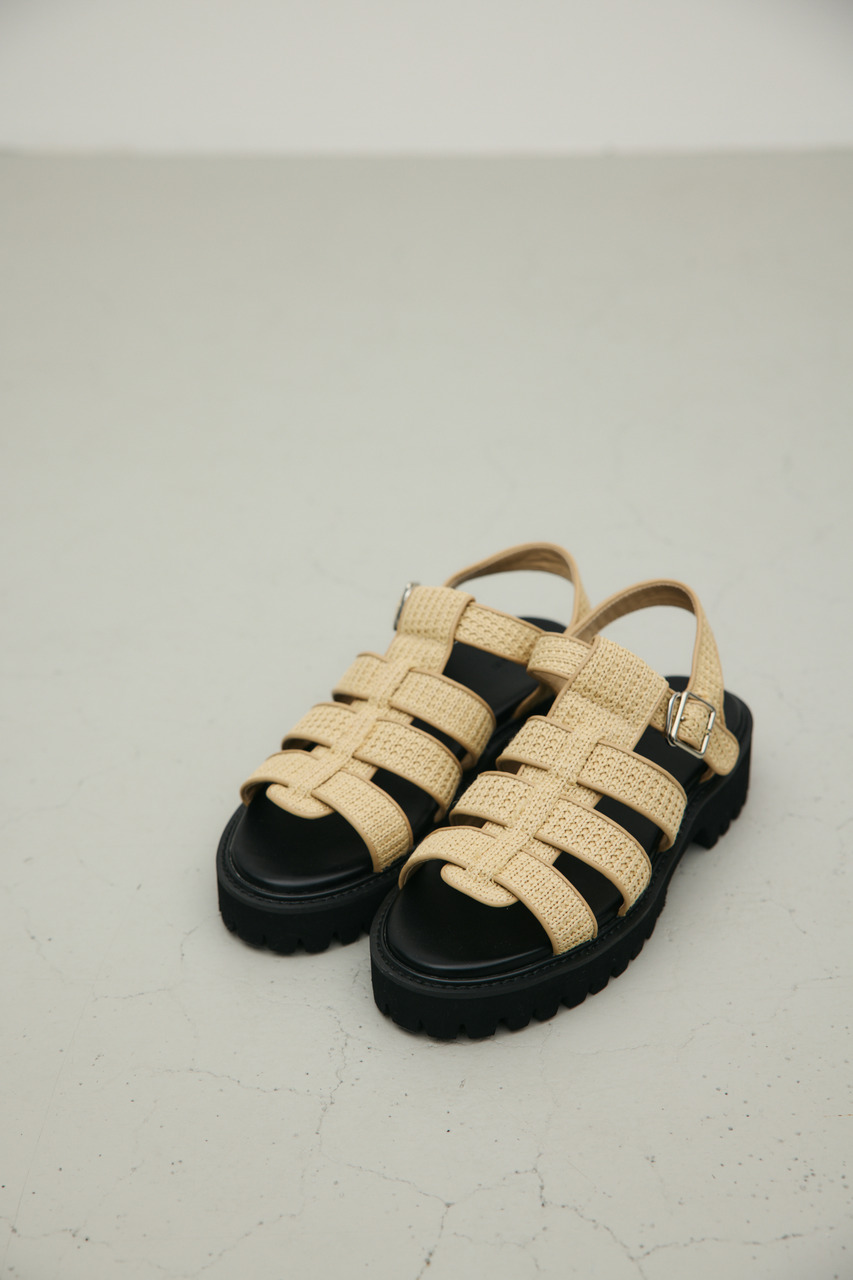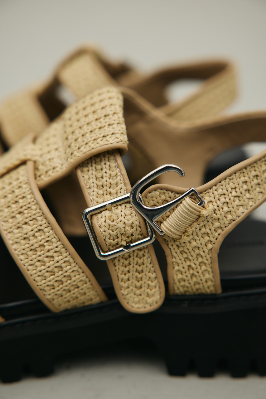 雑材見えする素材がシーズンムードを高めるクロシェデザインのサンダル。安定感のあるチャンキーヒールで歩きやすく、スタイルアップも叶えます。サイズ調整可能なバックル付き。